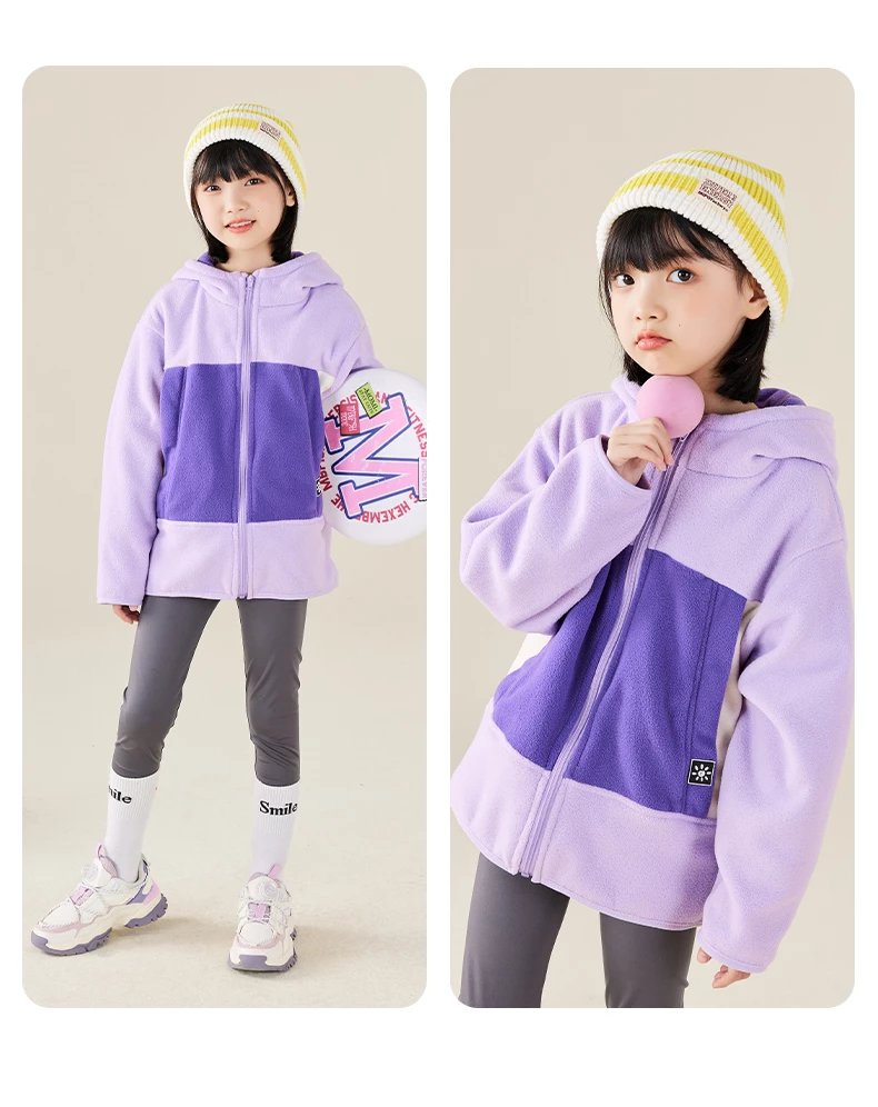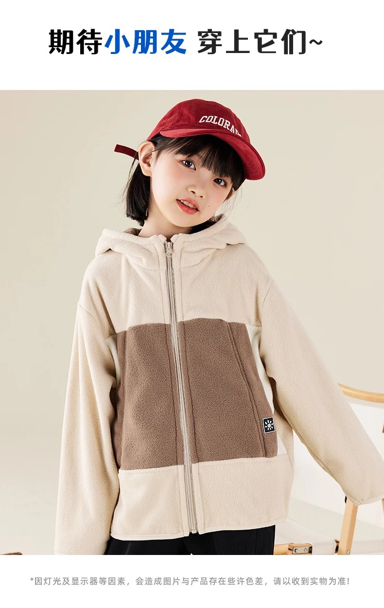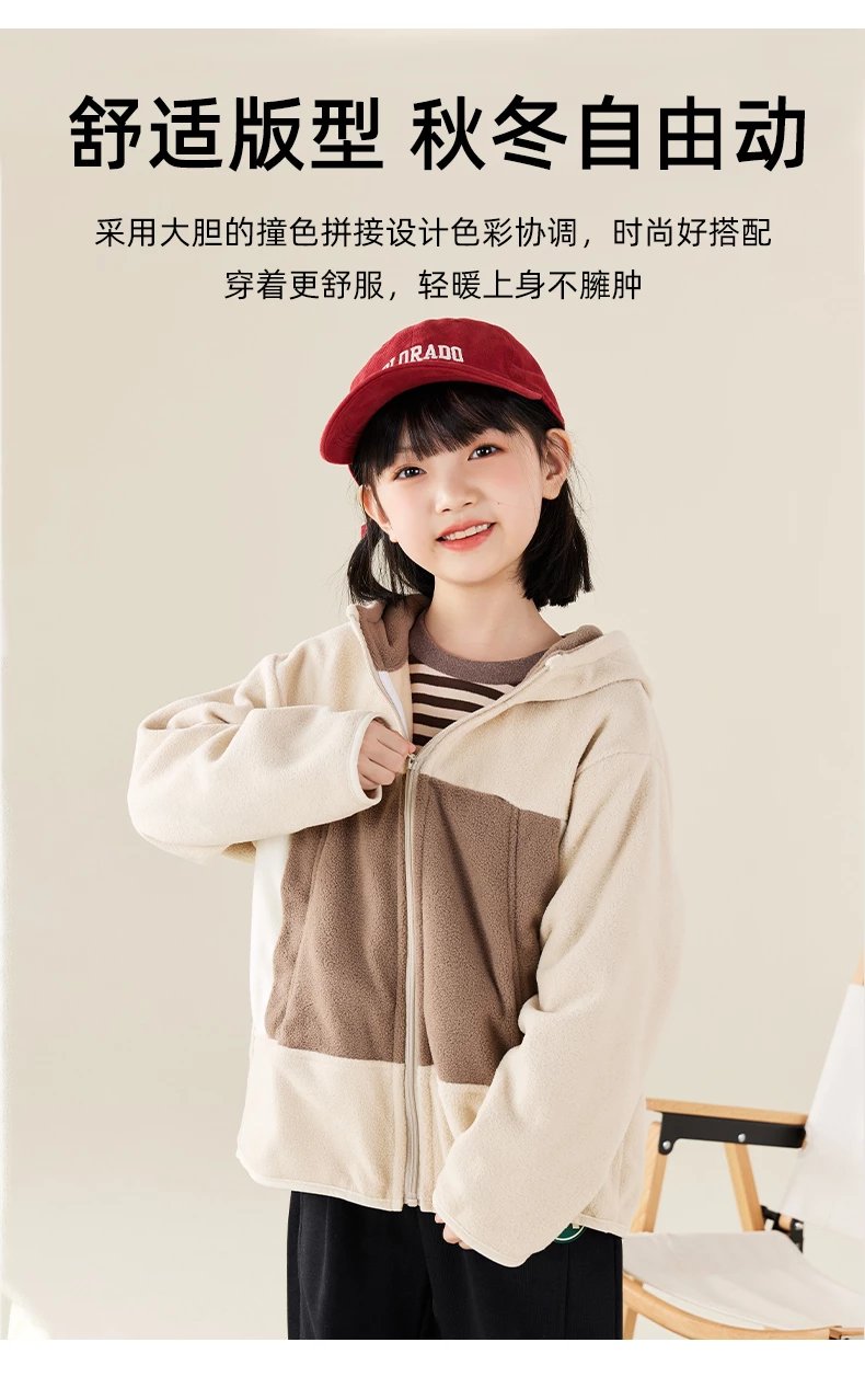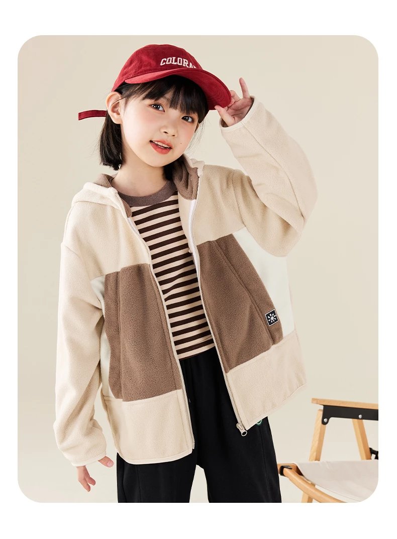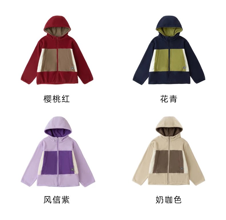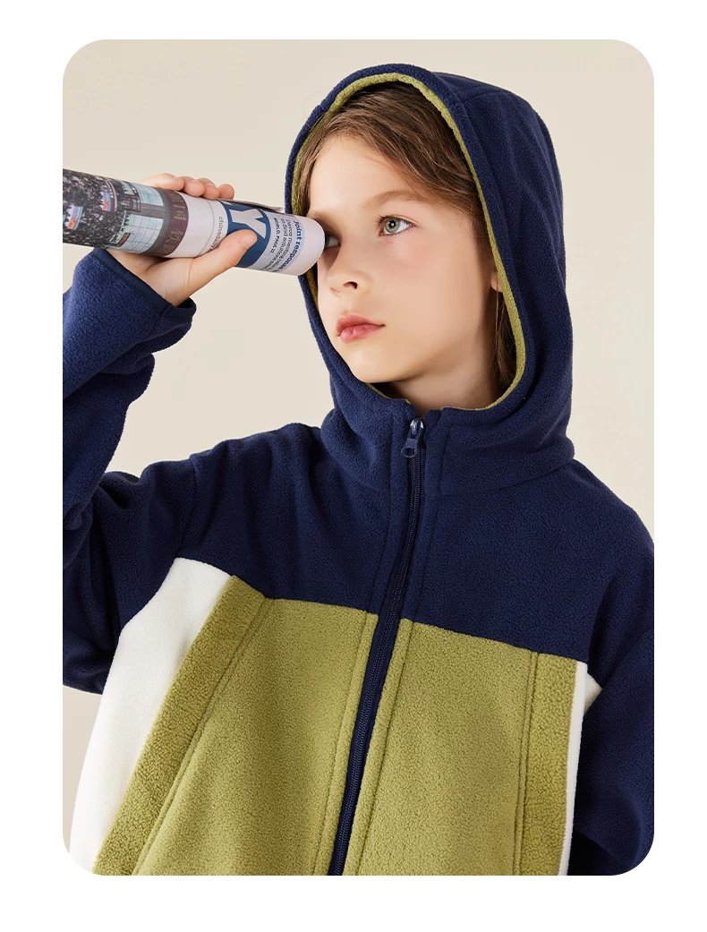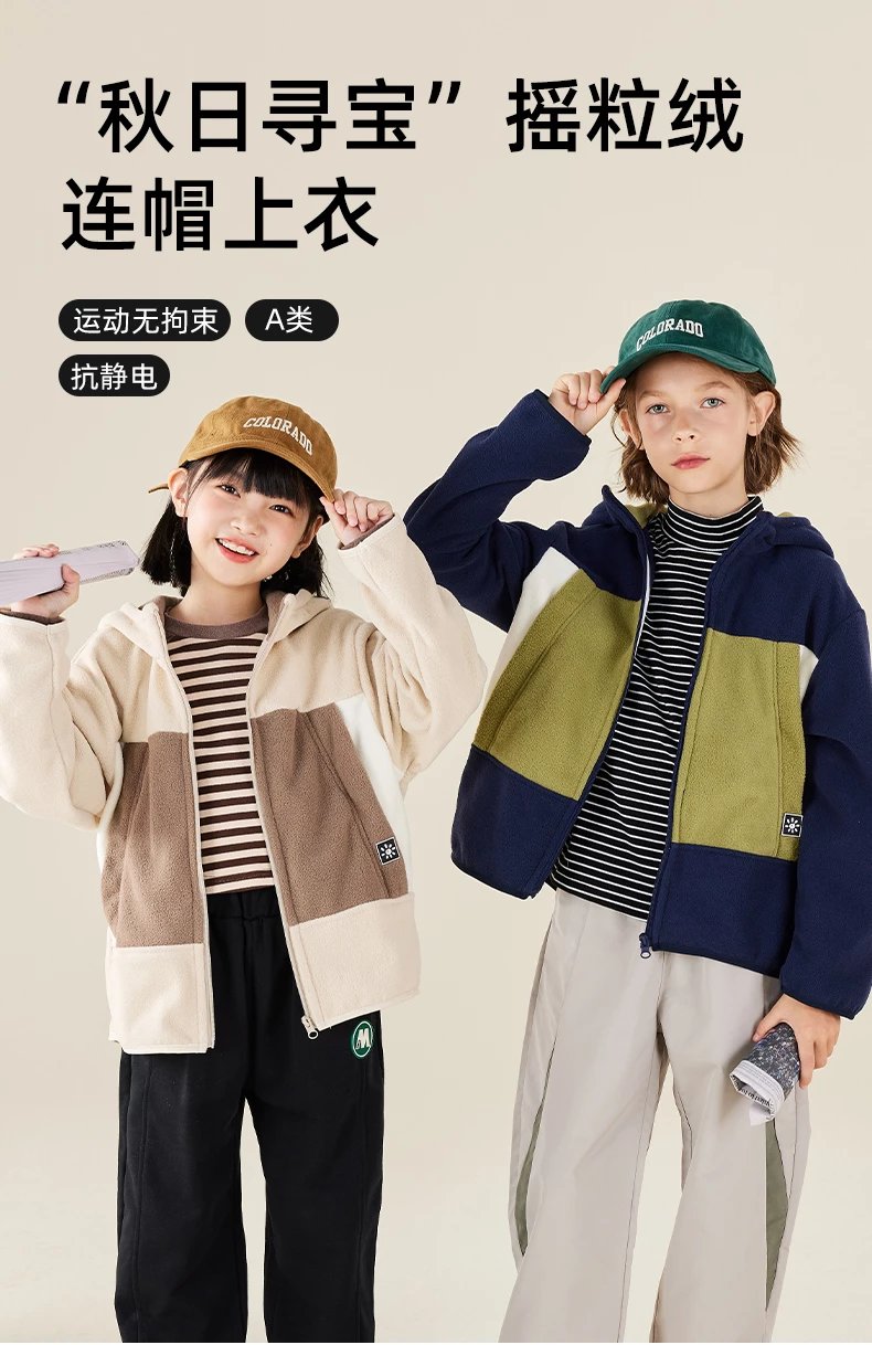 【2025反季抄底清仓】 龙之涵 “秋日寻宝”摇粒绒连帽上衣 中大童保暖外套 抗静电 婴幼儿A类标准 4色可选 100-175码