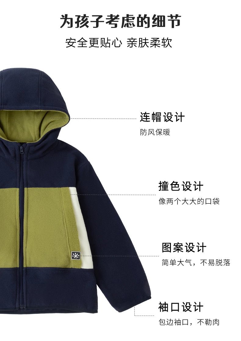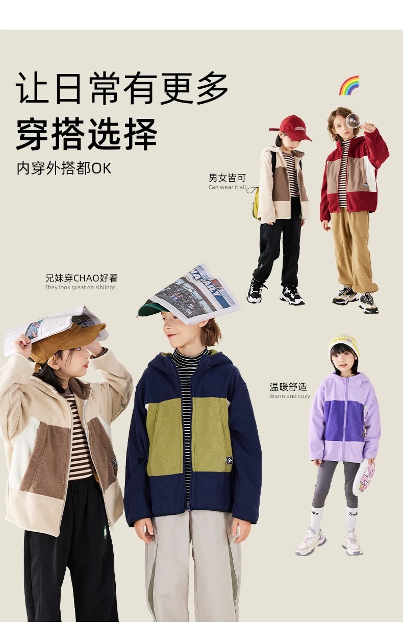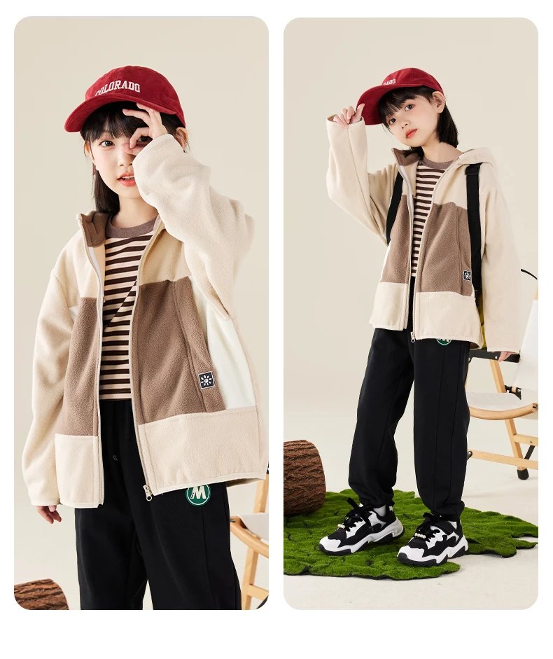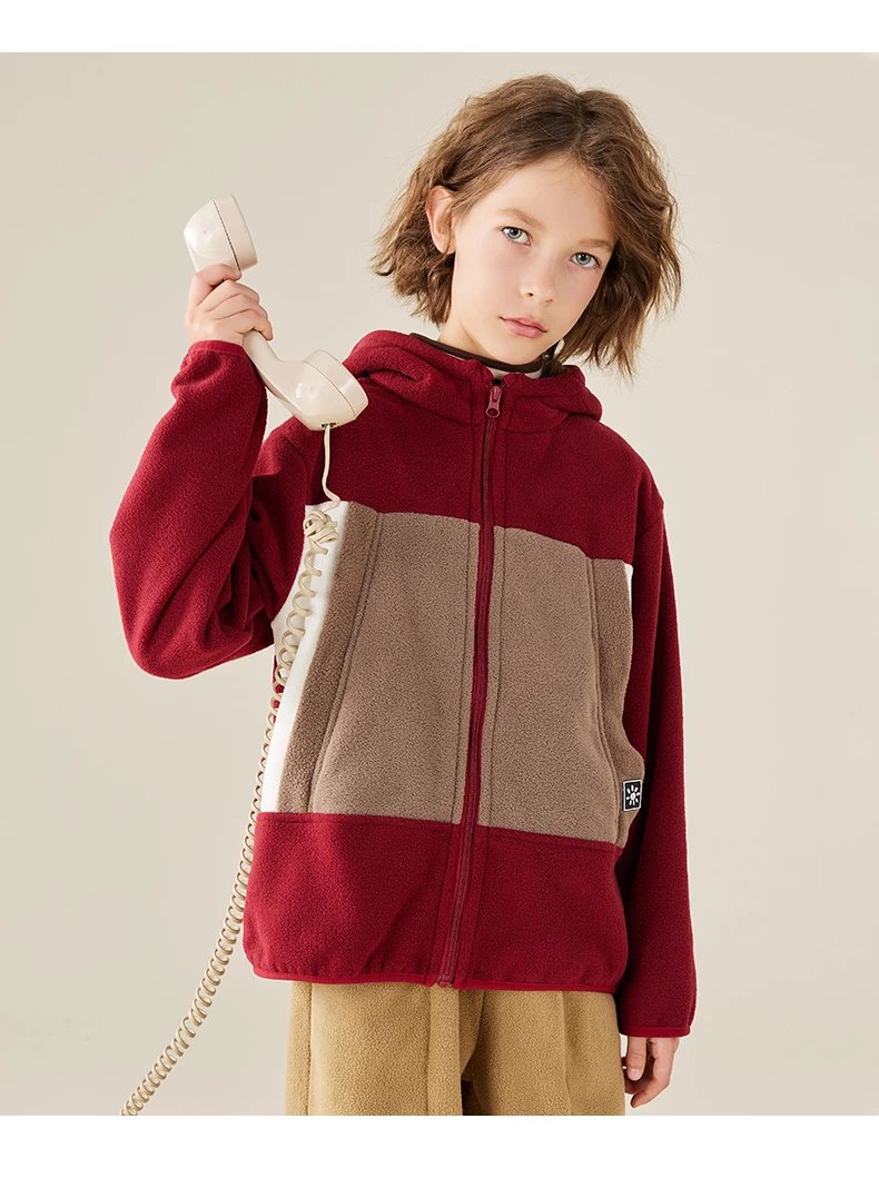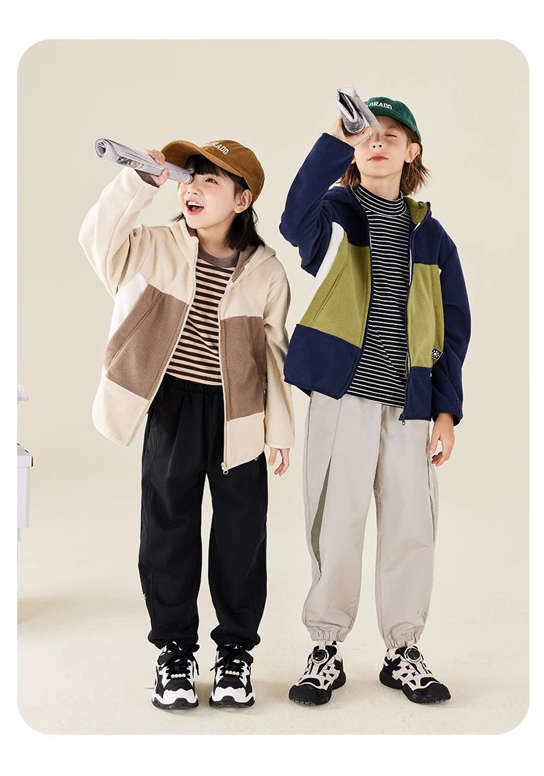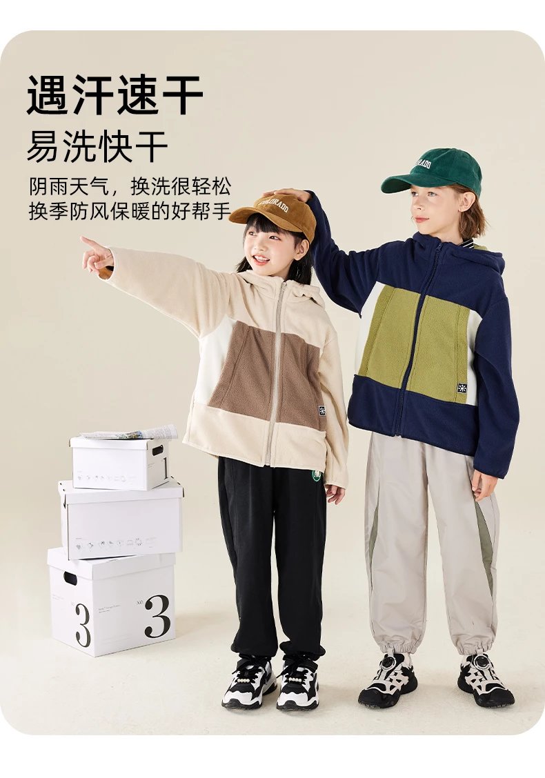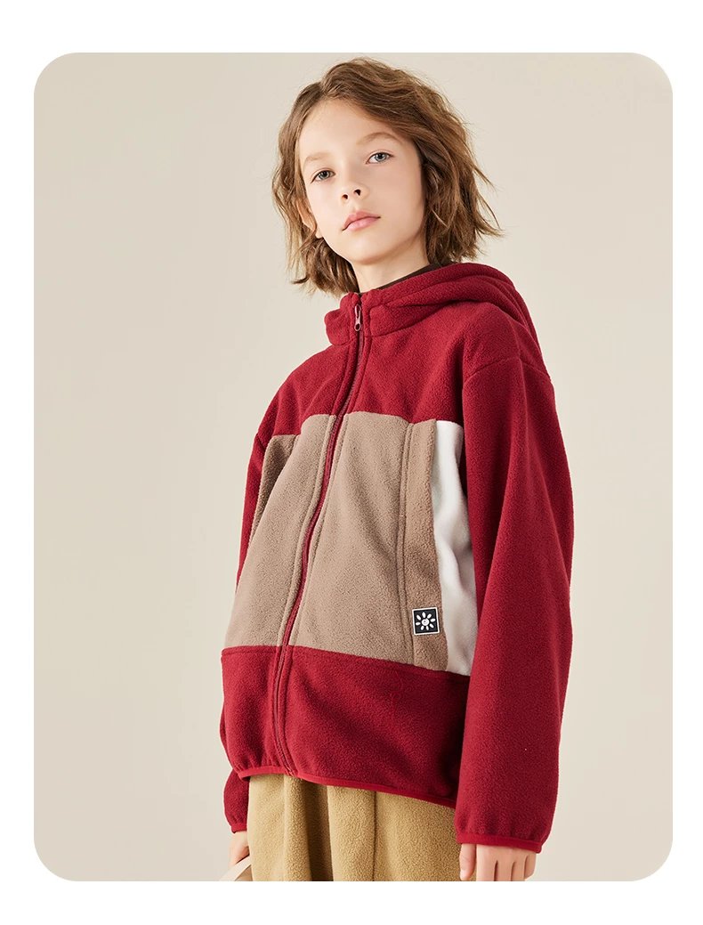 【2025反季抄底清仓】 龙之涵 “秋日寻宝”摇粒绒连帽上衣 中大童保暖外套 抗静电 婴幼儿A类标准 4色可选 100-175码