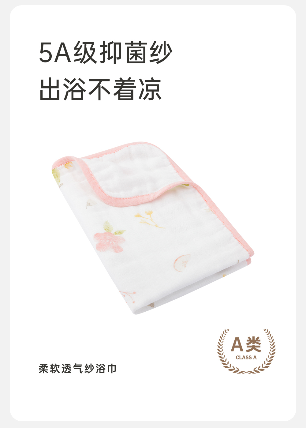 【商场同款】英氏5A级抑菌宝宝洗浴巾纯棉吸水小浴巾50*30CM