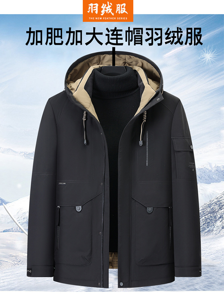 【DGD】大依优型大码男装冬季连帽羽绒服加厚时尚休闲商务防钻绒抗寒保暖加肥加大330斤