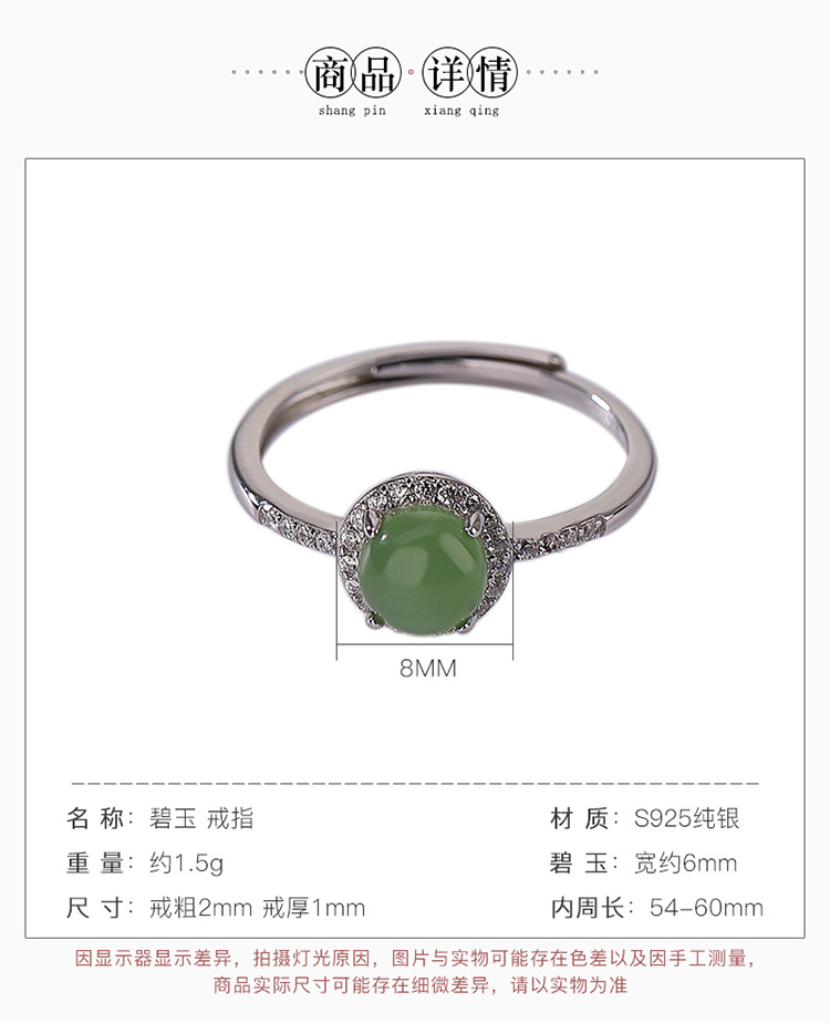 S925纯银和田玉碧玉圆珠简约气质戒指CW
