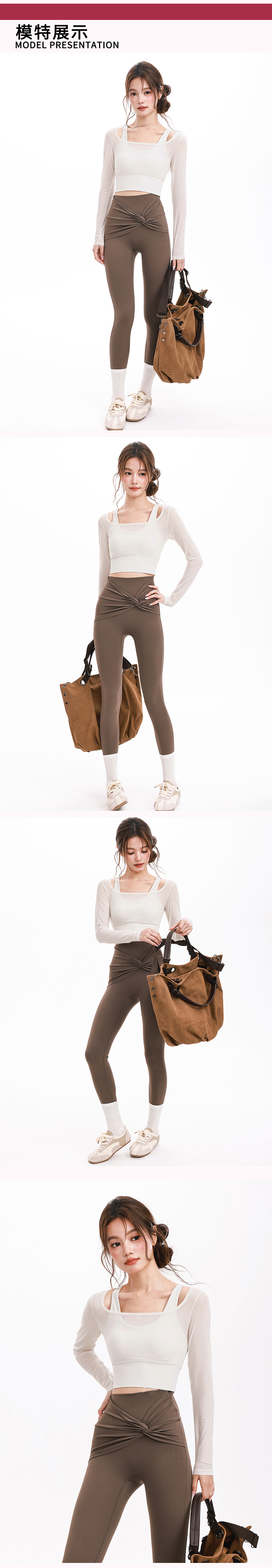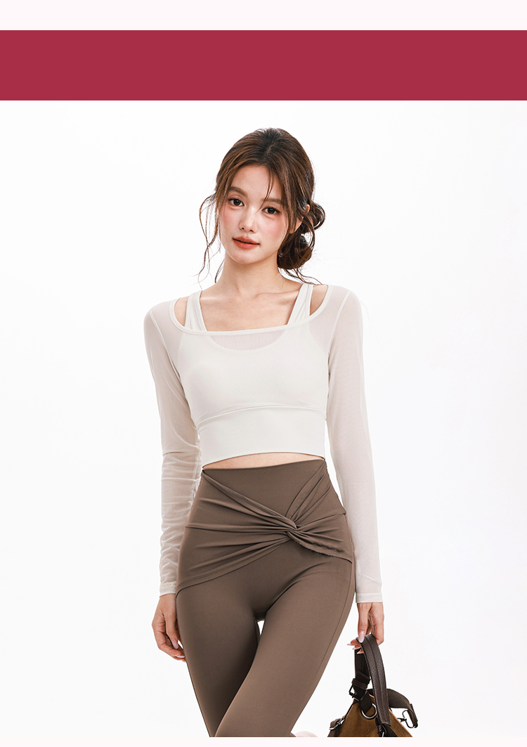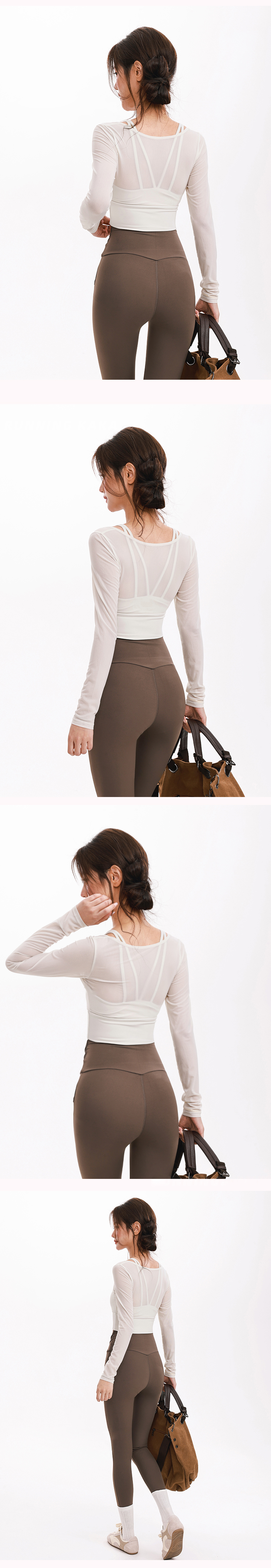 【3~5天发货】跃牌【美度空间】系列 带胸垫固定杯瑜伽长袖网纱拼接假两件瑜伽服上衣ADCXB53009