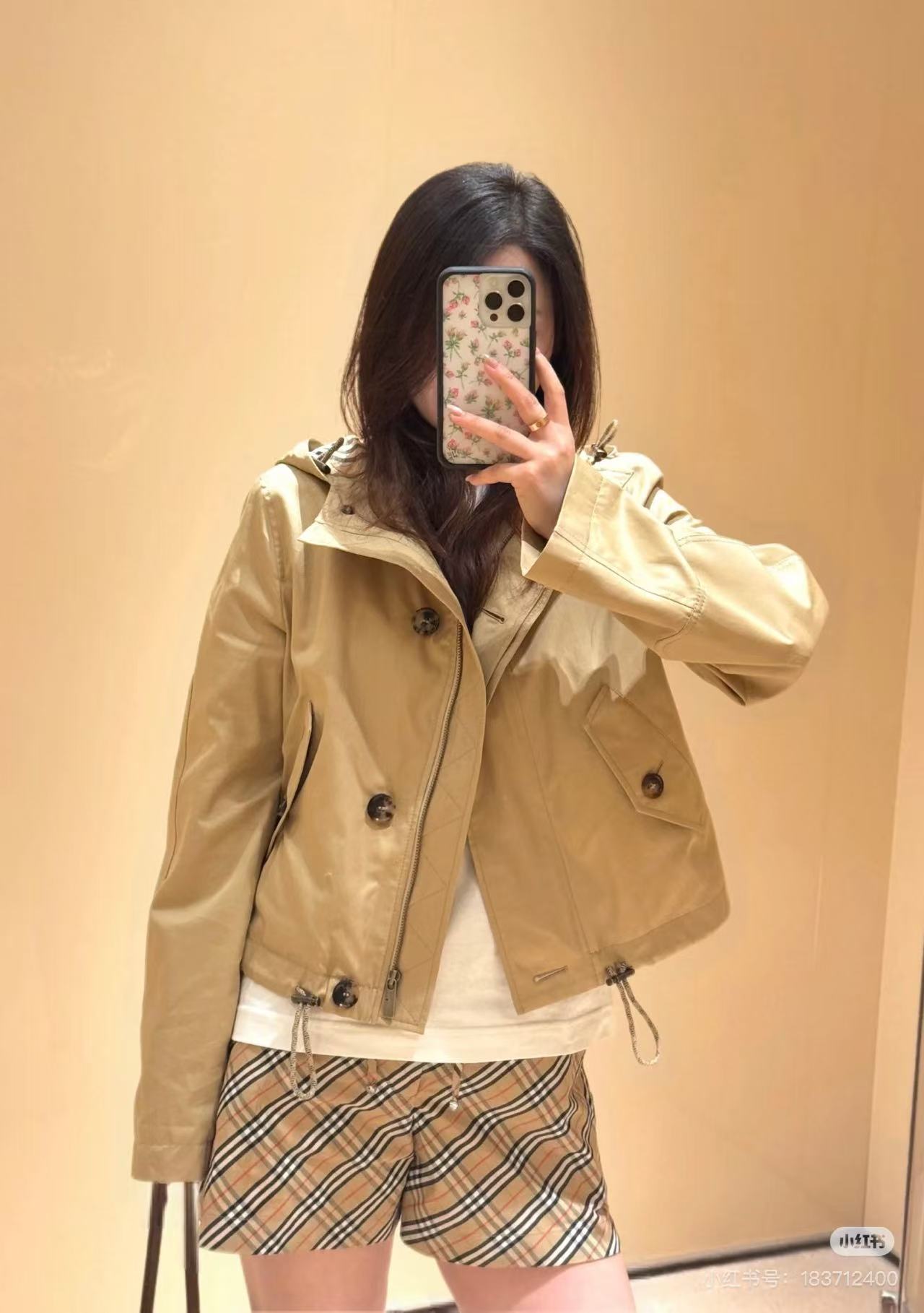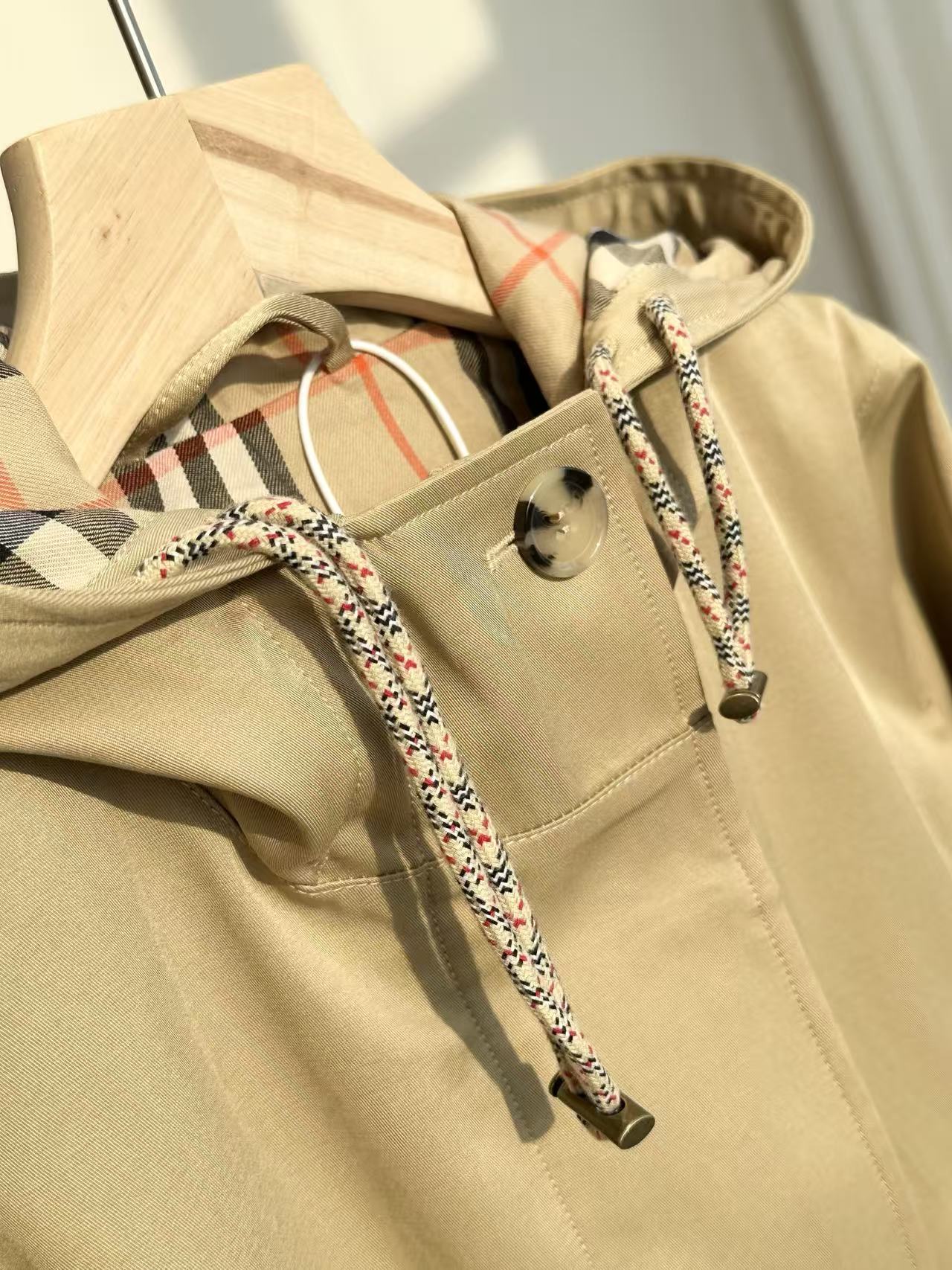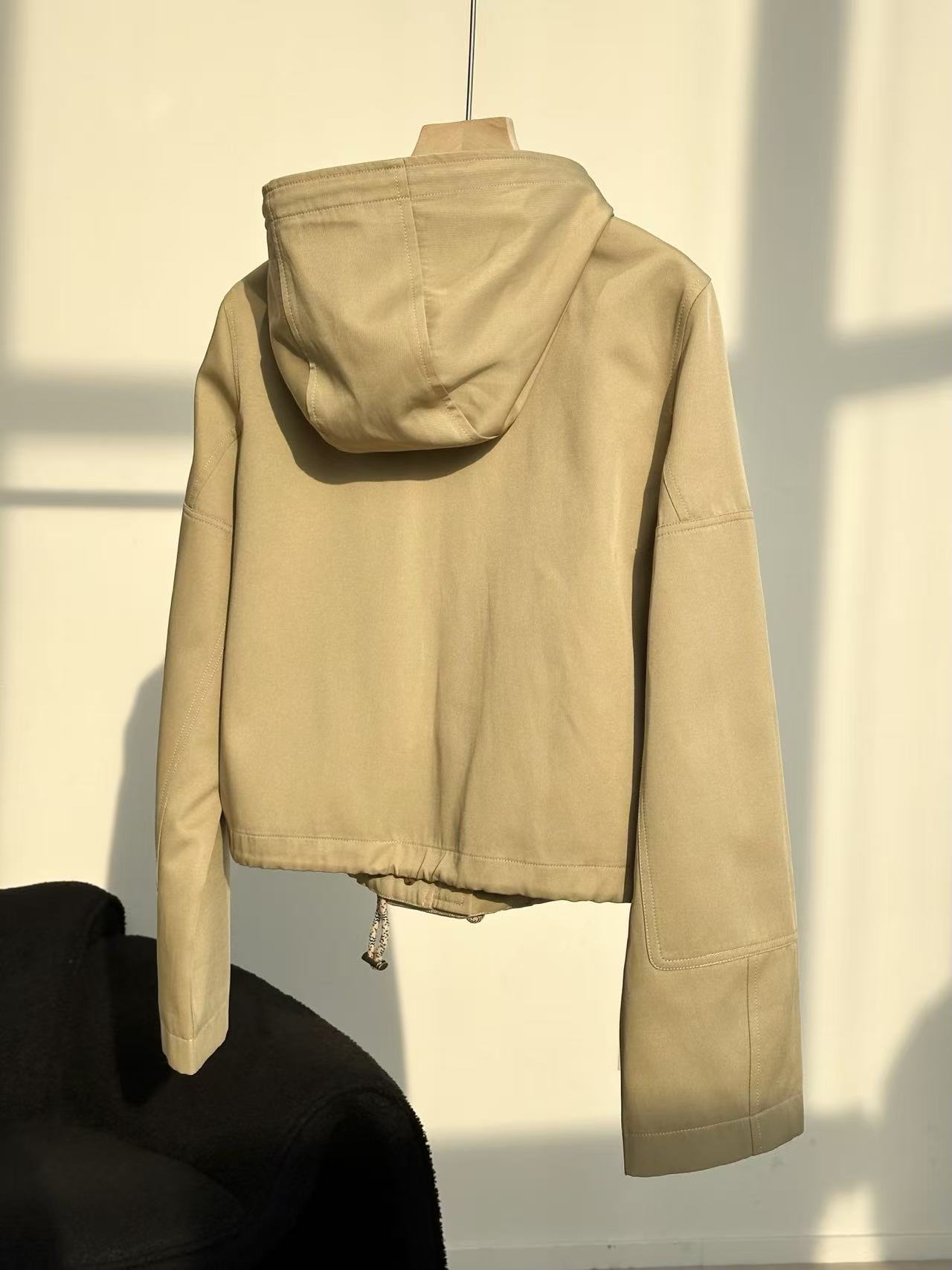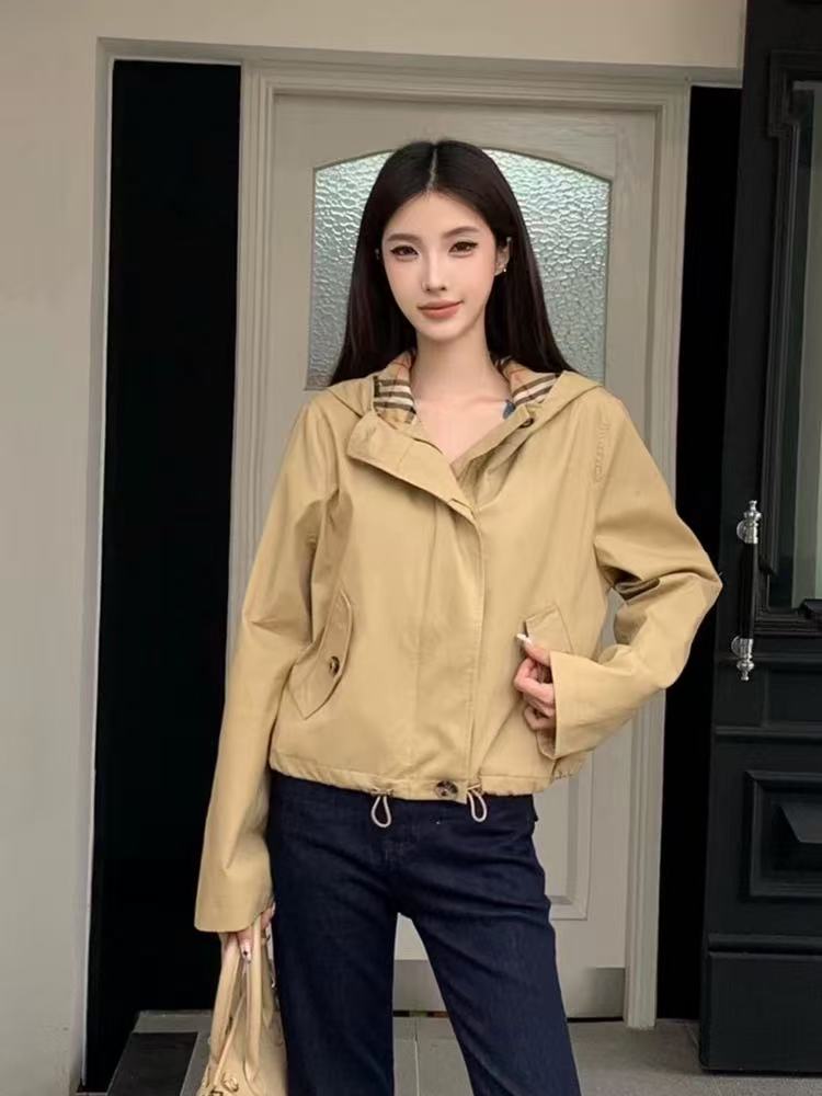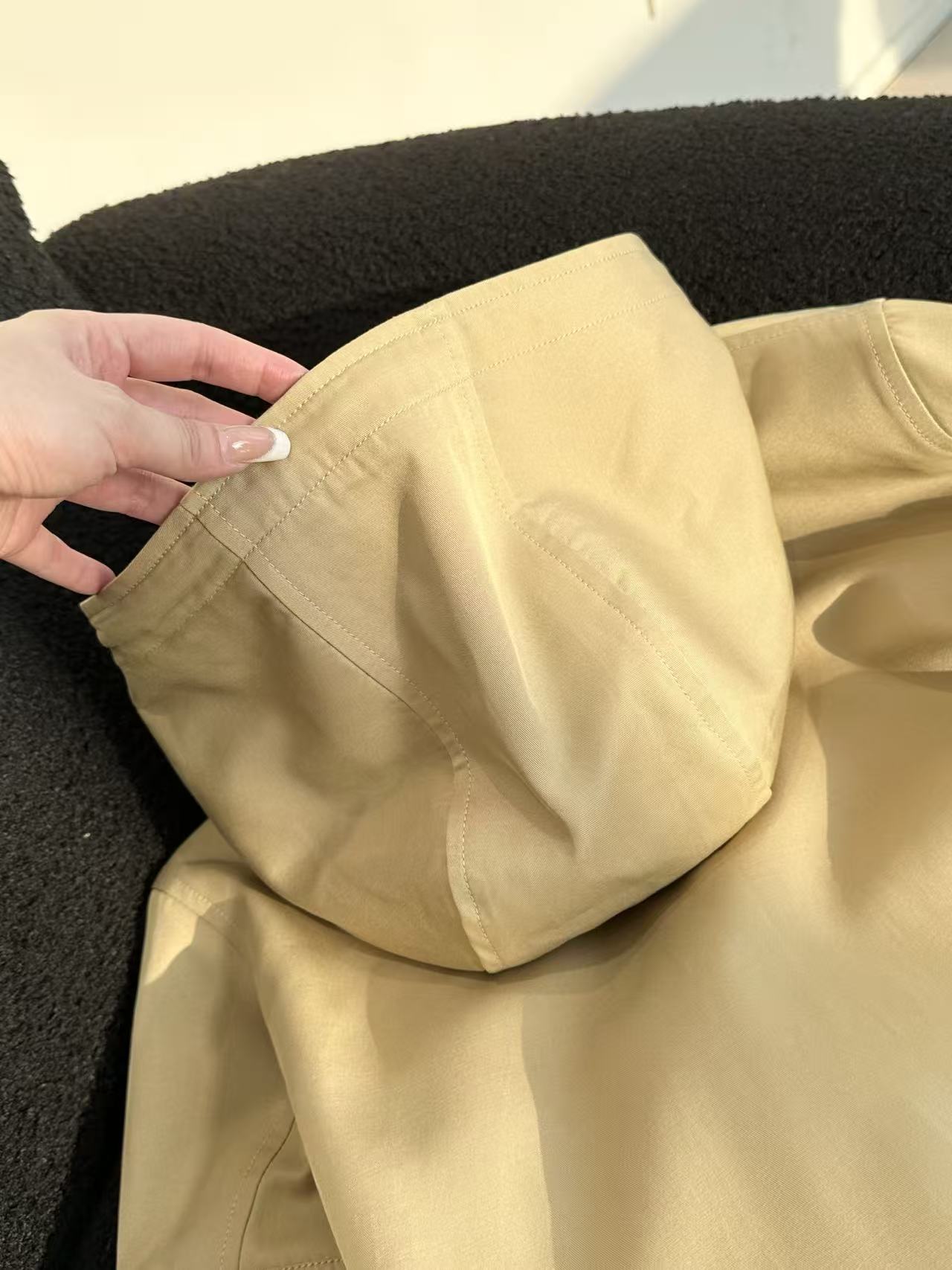 BBR*宽松短款抽绳夹克卡其色连帽风衣外套,卡其色一整个温柔住!!