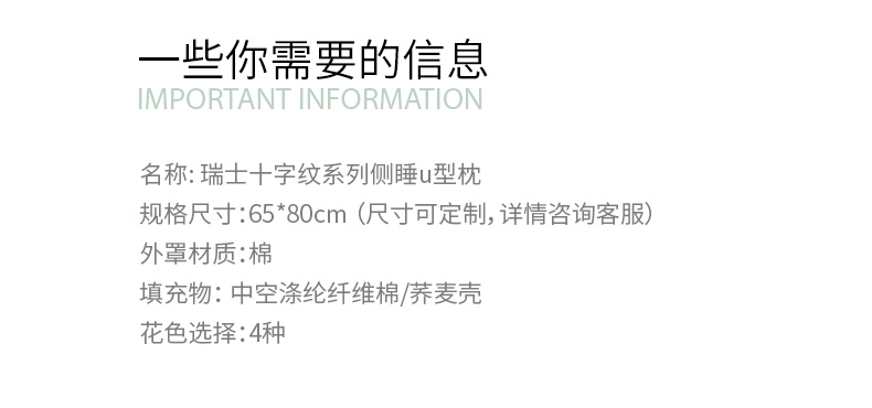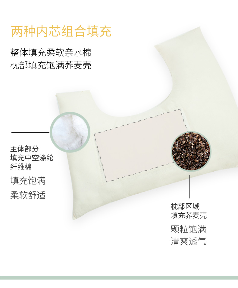 瑞士十字纹系列侧睡U型枕护颈椎助睡眠荞麦壳皮成人睡觉家用U型抱枕可拆洗
