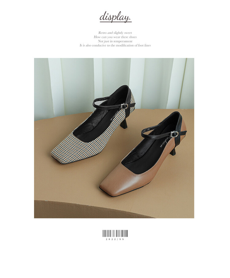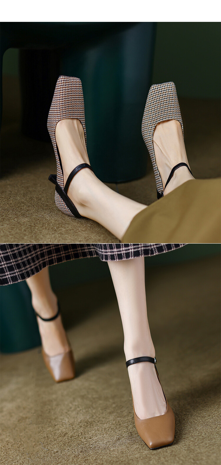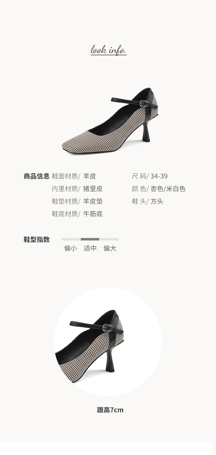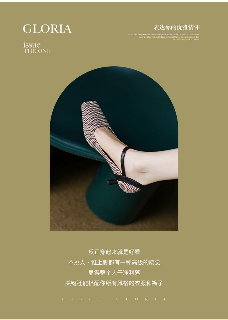 气质方头羊皮鞋,细跟浅口舒适高跟鞋 YS-3933