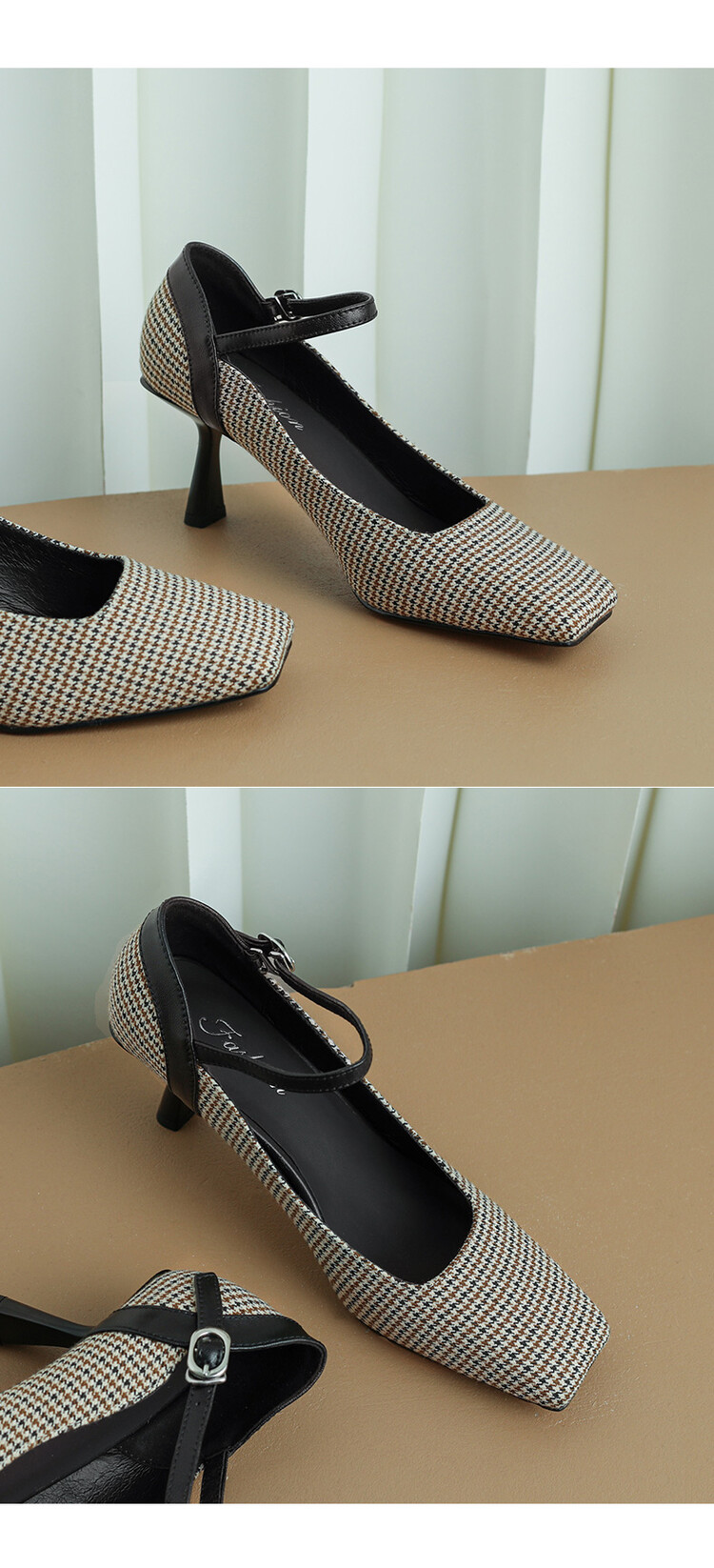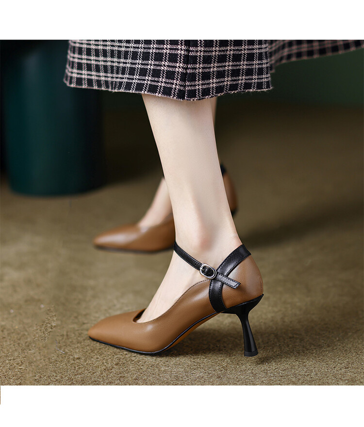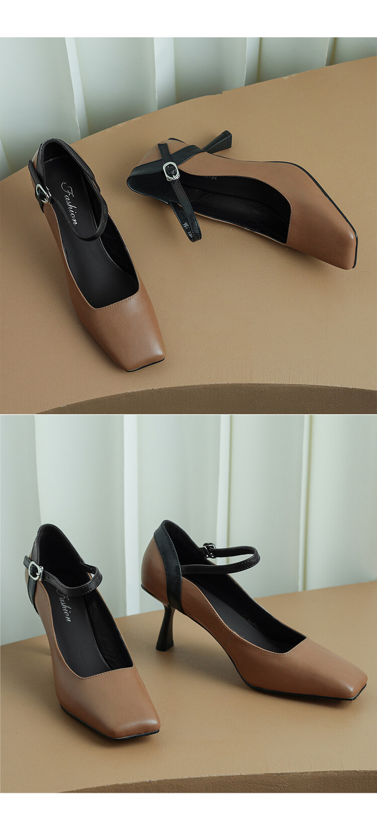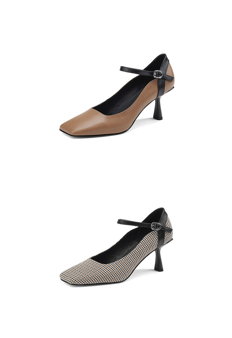 气质方头羊皮鞋,细跟浅口舒适高跟鞋 YS-3933