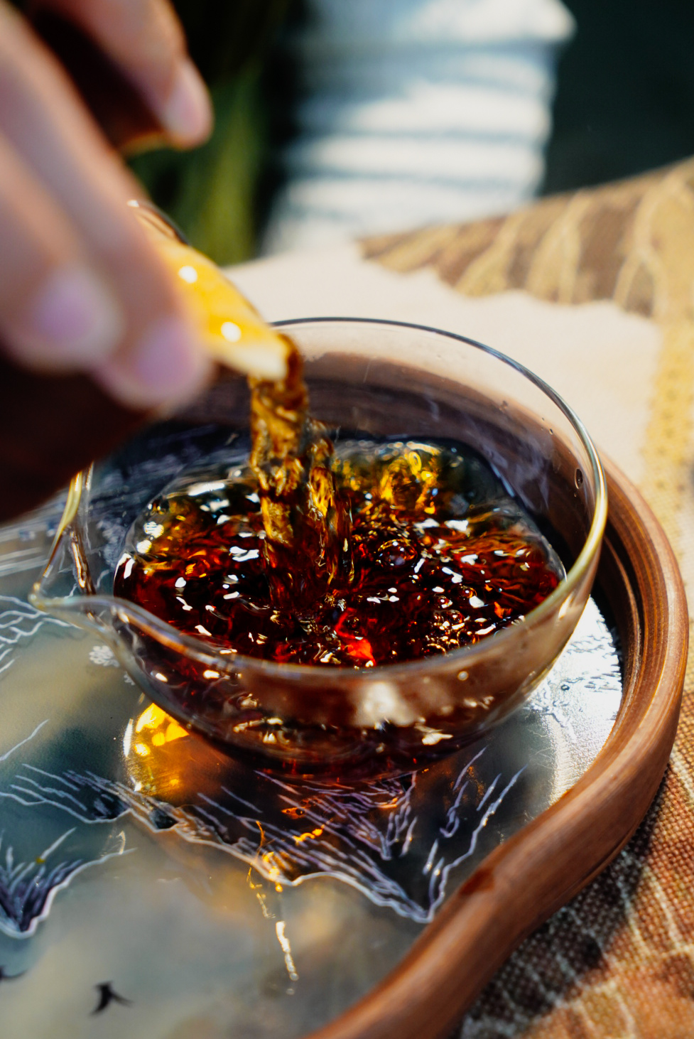 汤色红浓透亮,无杂质或沉淀物渣,口感醇和、甘甜顺滑糯、少苦涩。