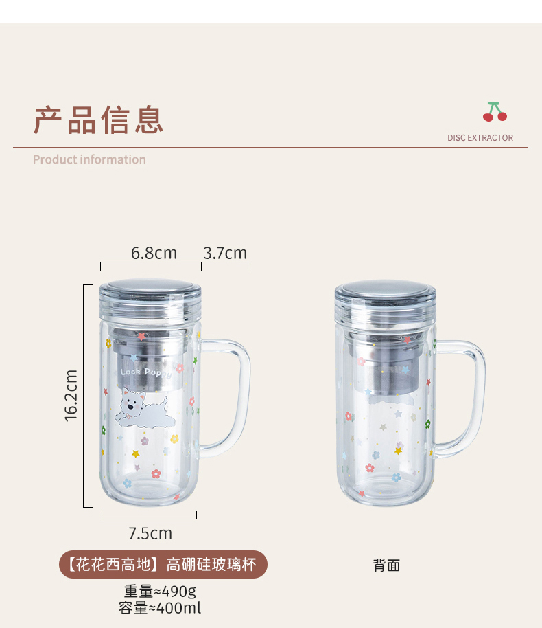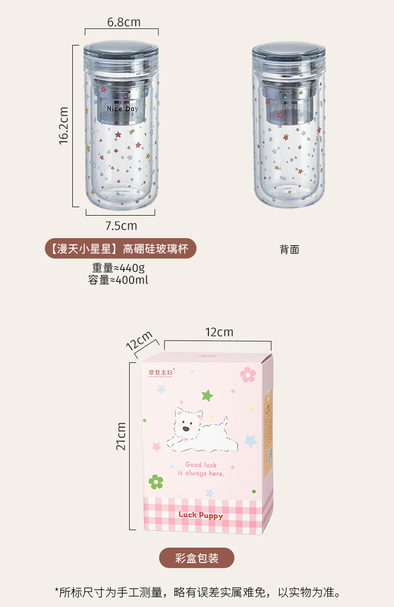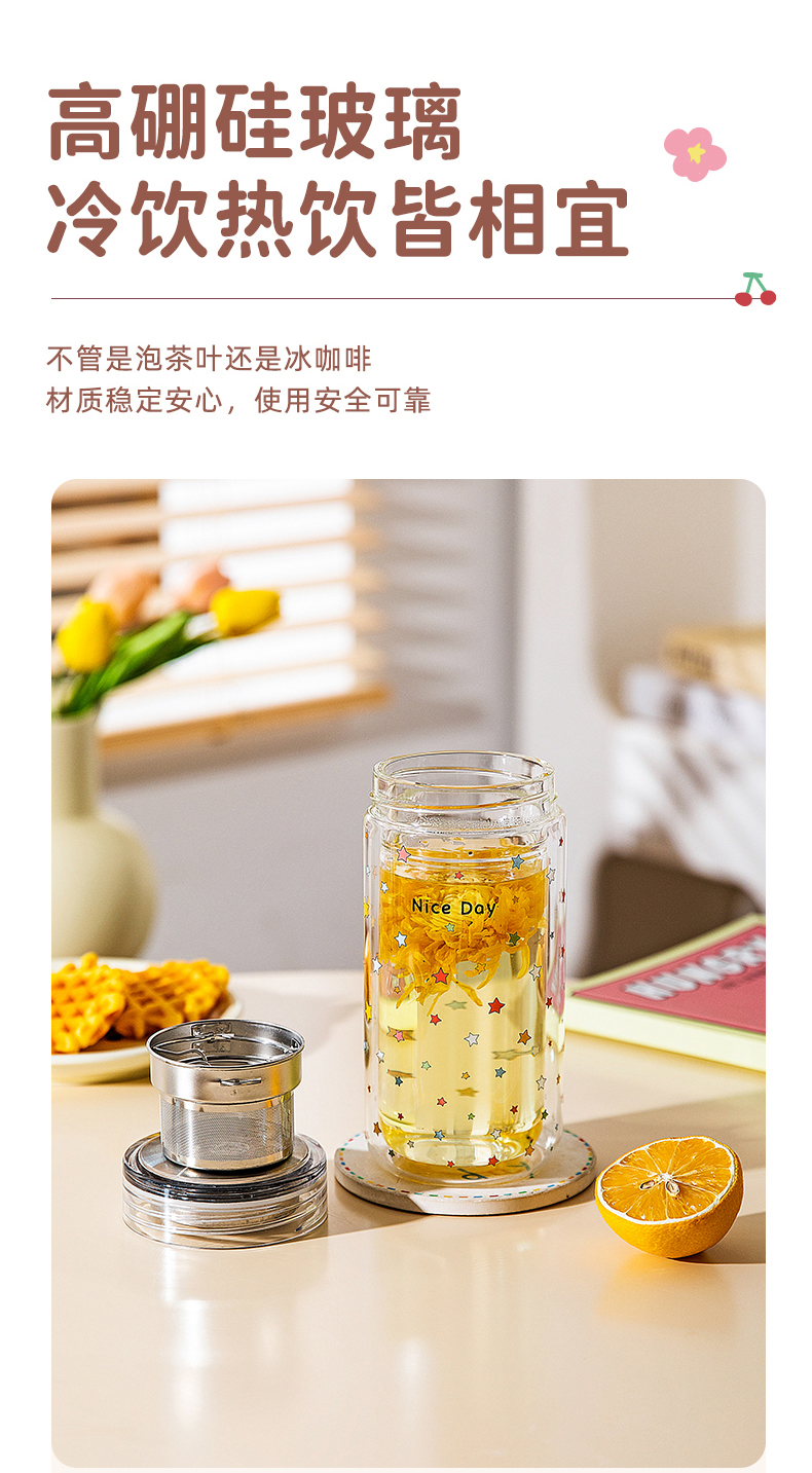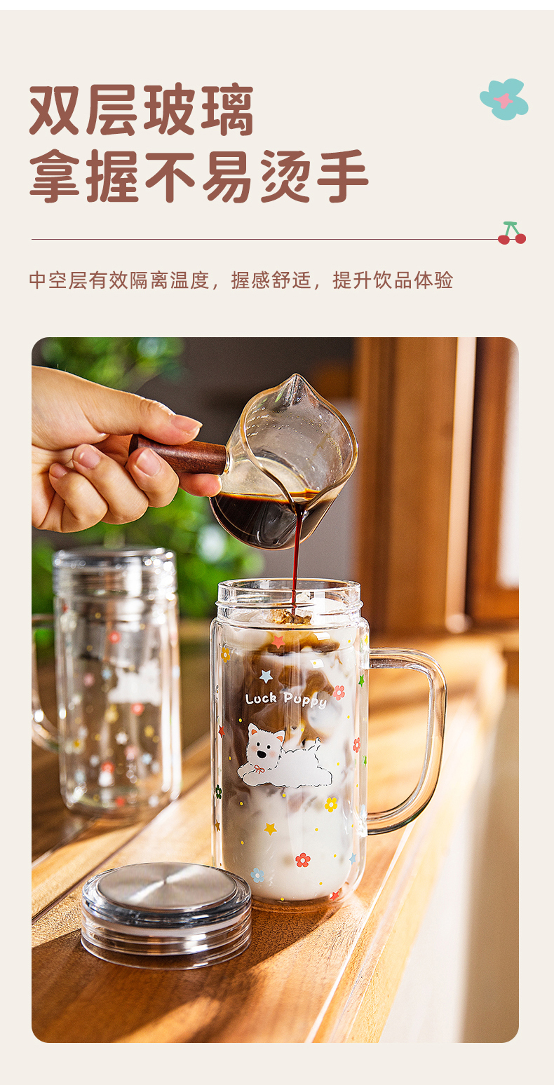 摩登主妇双层玻璃杯带盖咖啡杯子办公室水杯耐高温茶水分离泡茶杯