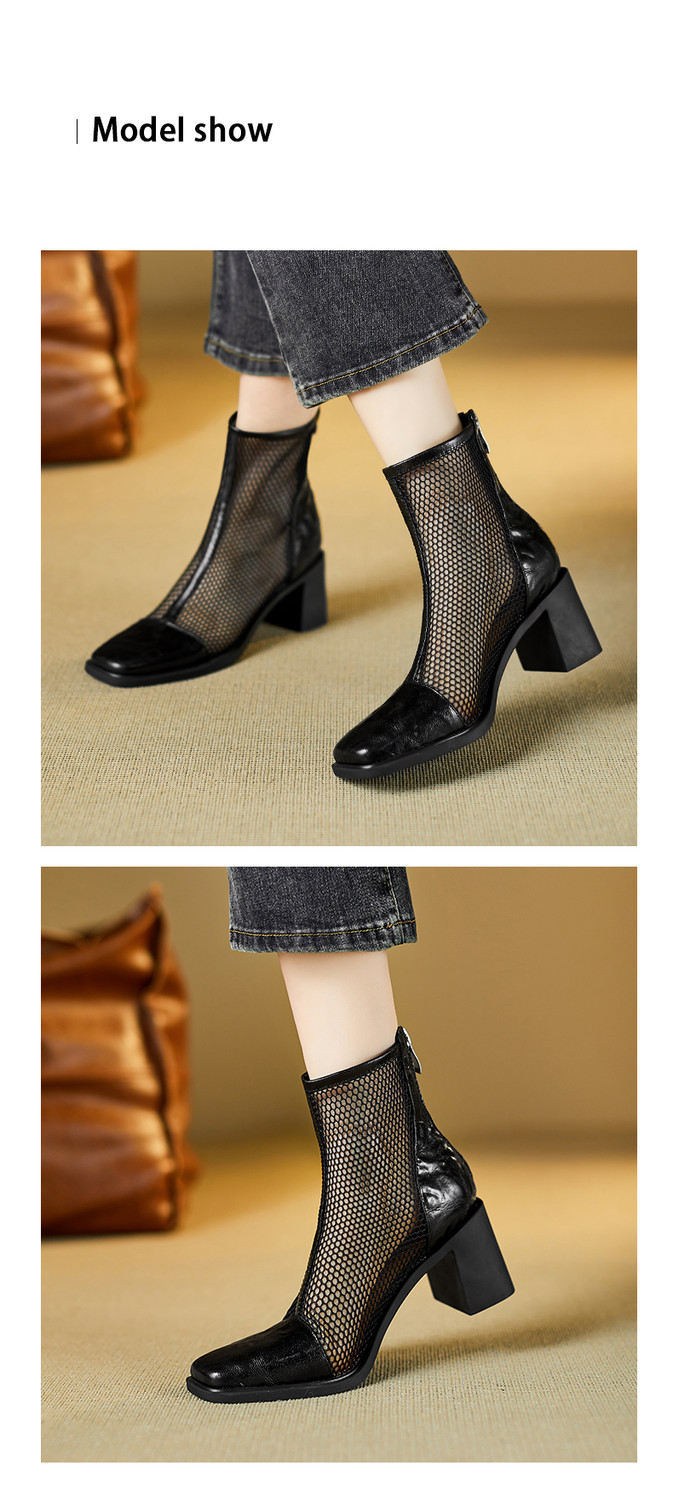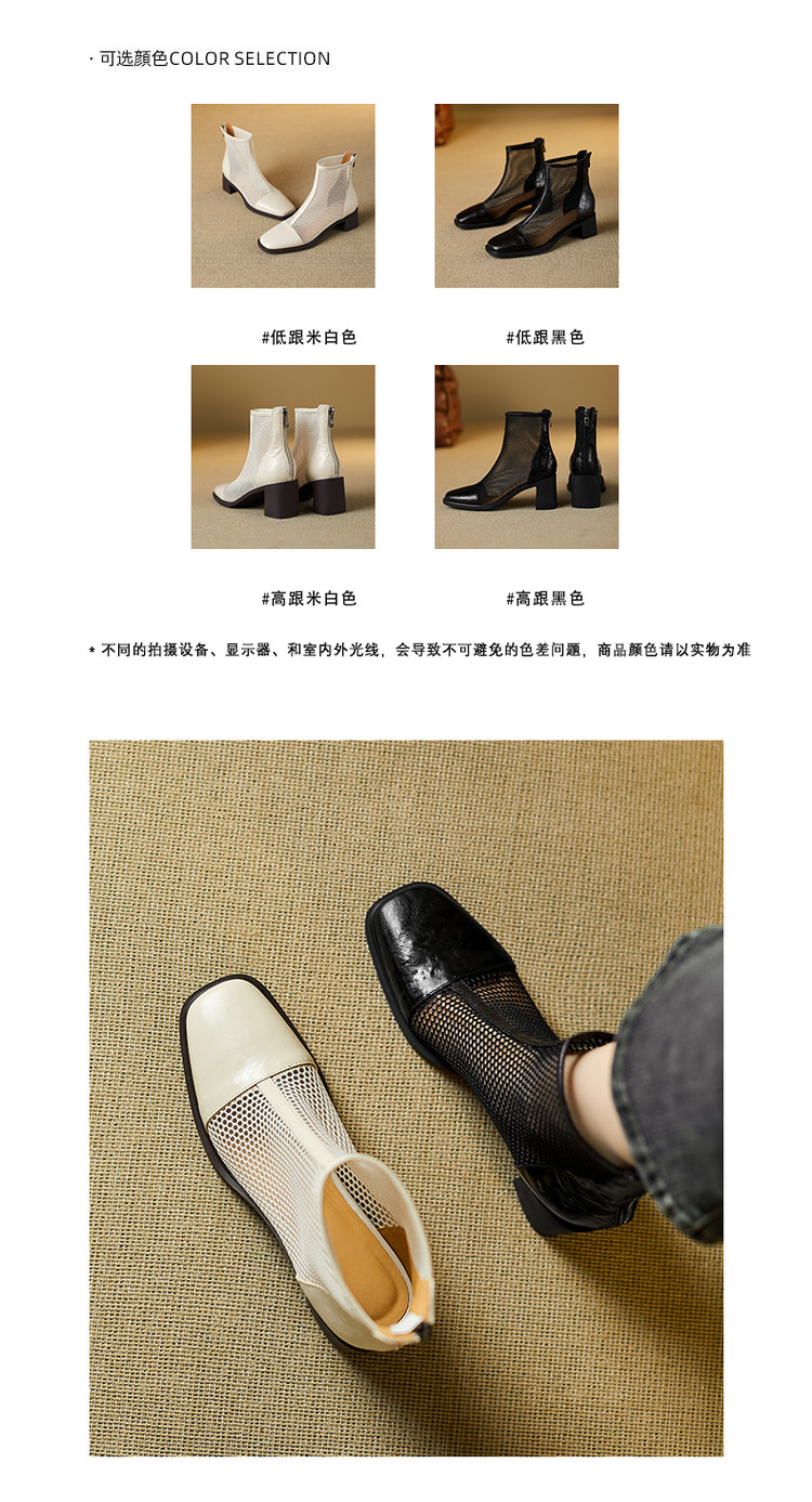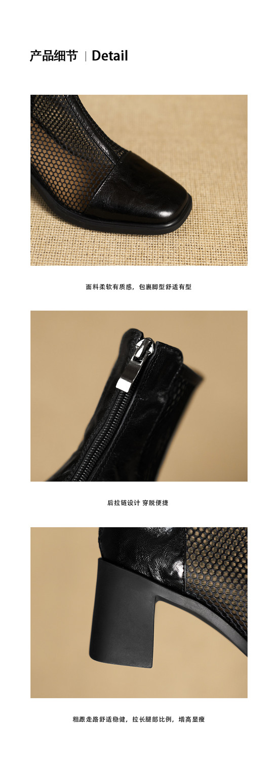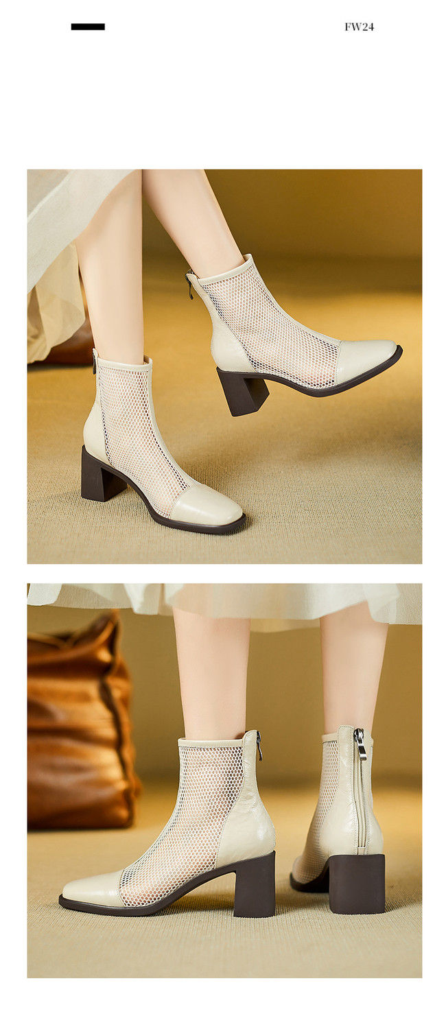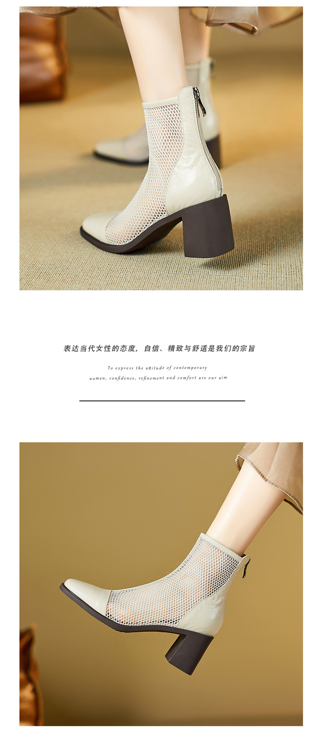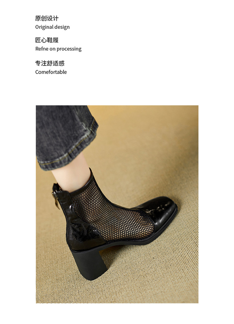 【预售5天】真皮网纱凉靴女夏季新款粗跟高跟短靴百搭显瘦透气镂空凉鞋CZ&C-2045