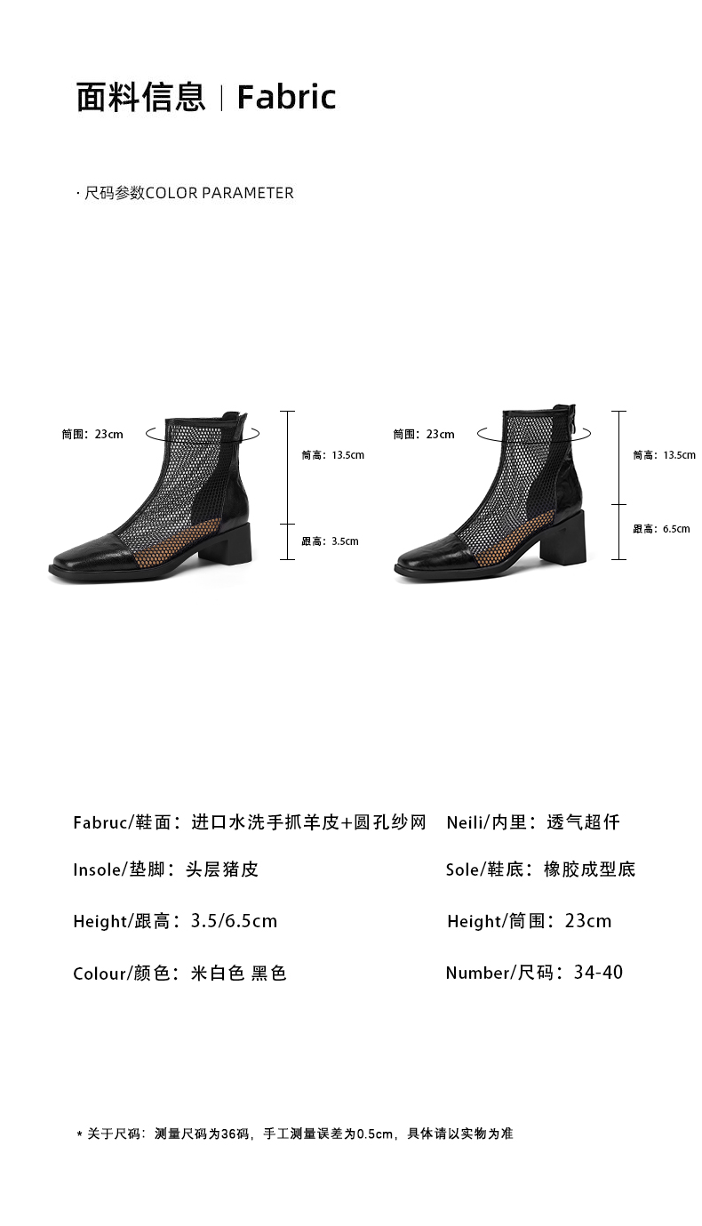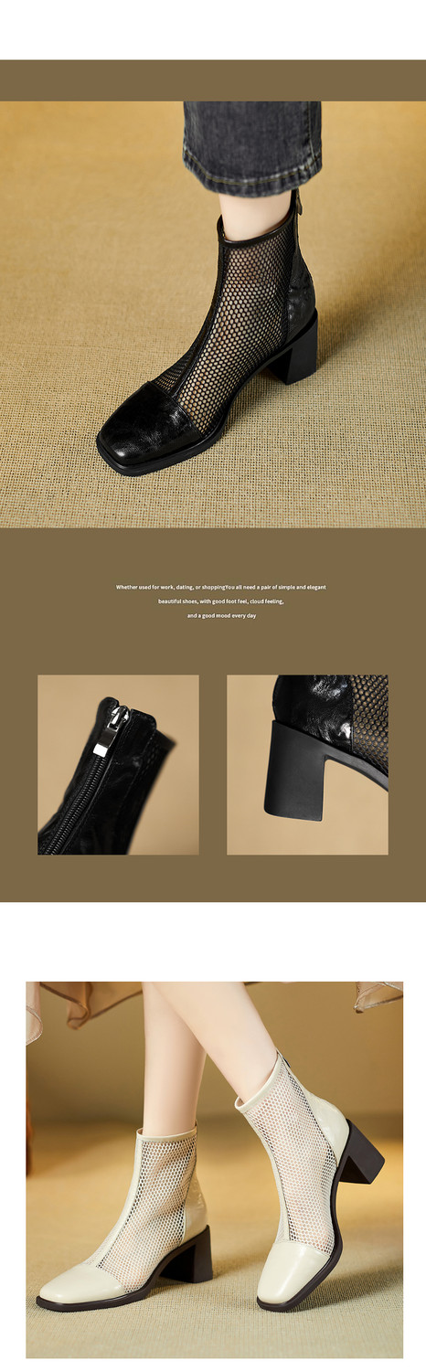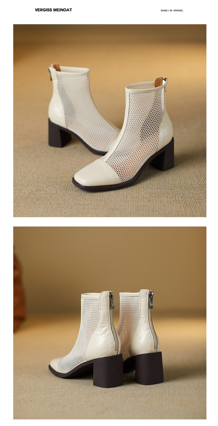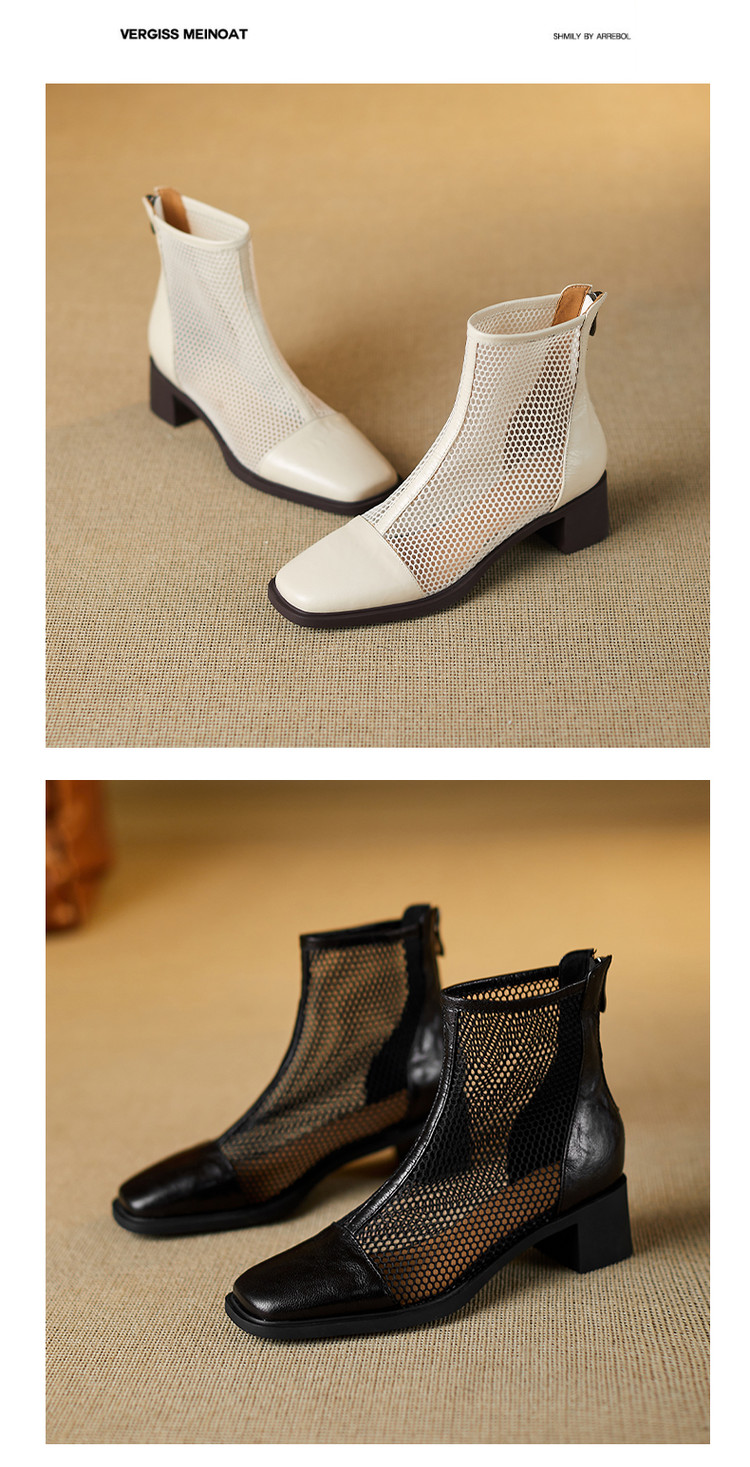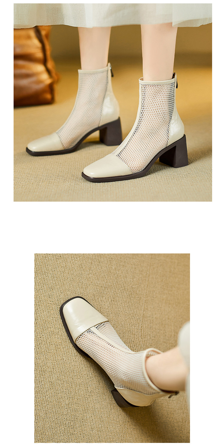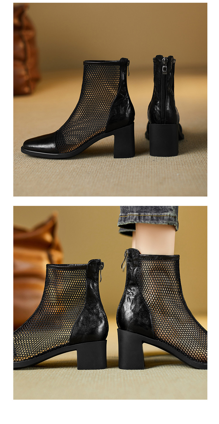 【预售5天】真皮网纱凉靴女夏季新款粗跟高跟短靴百搭显瘦透气镂空凉鞋CZ&C-2045