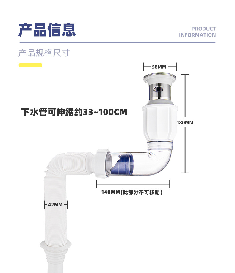 洗手脸池盆下水管面盆排水管道密封防臭台盆防返臭神器墙排下水器