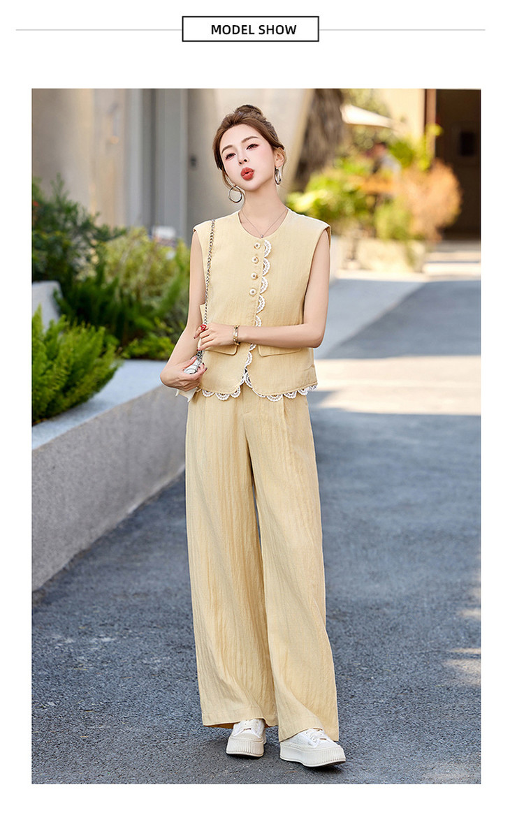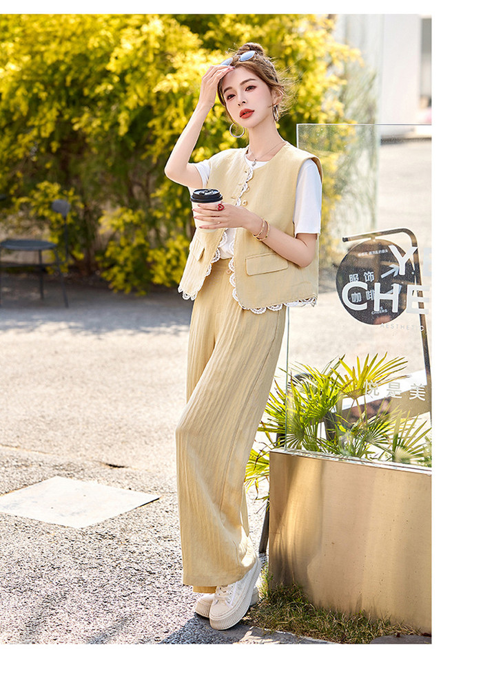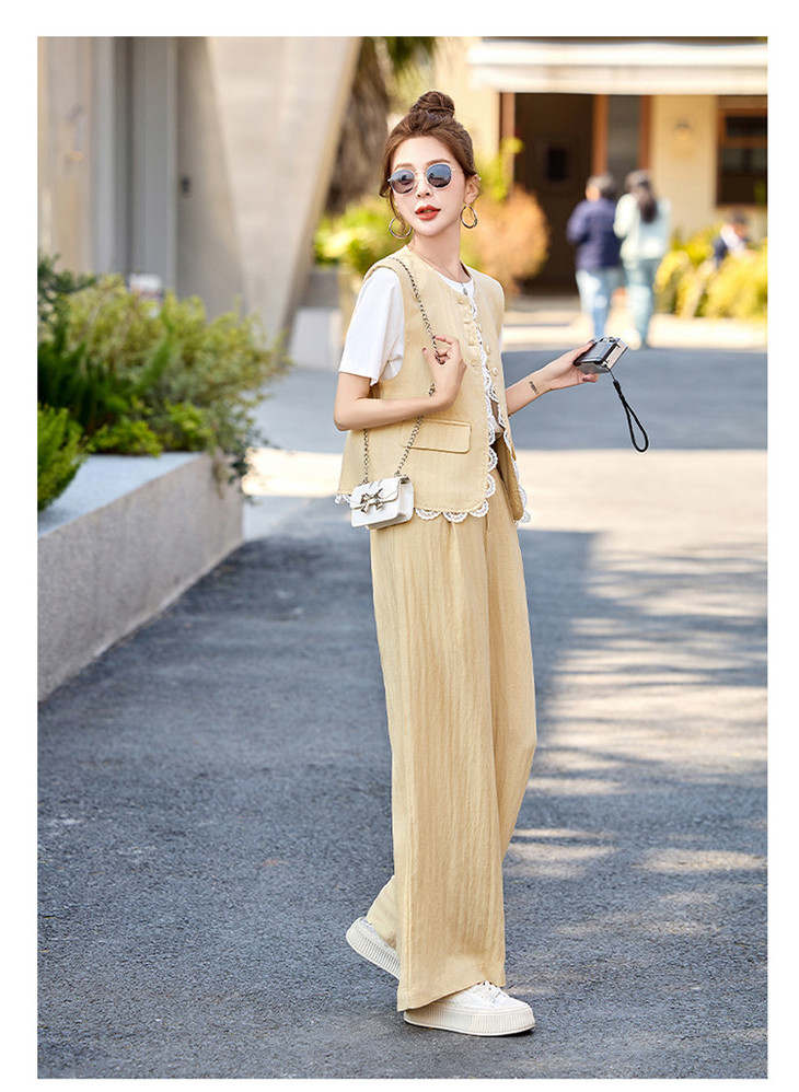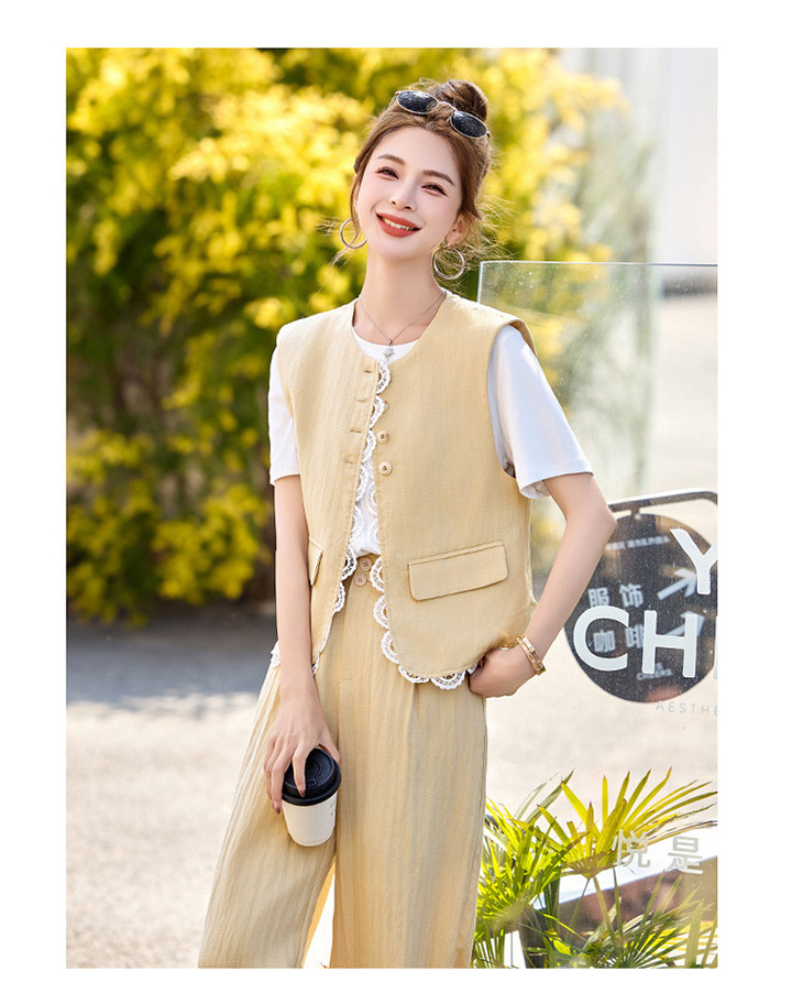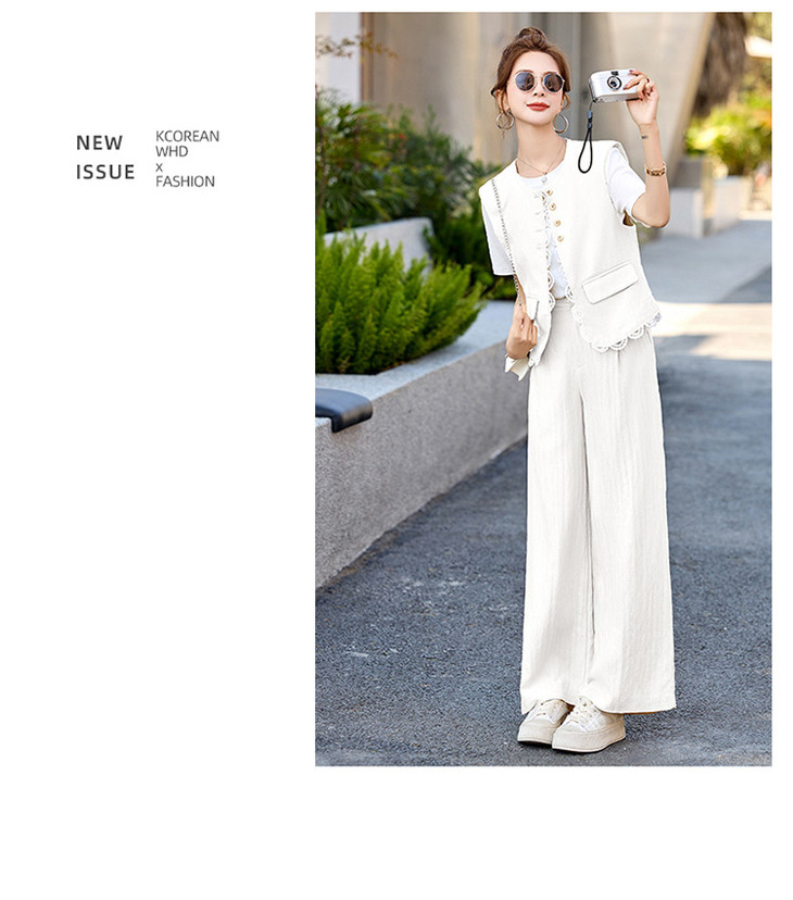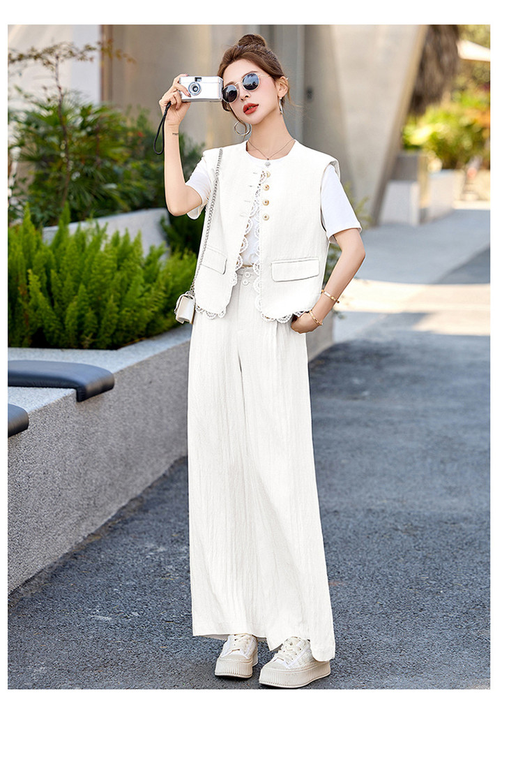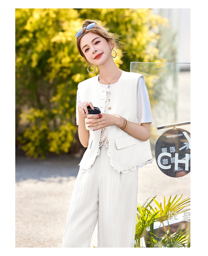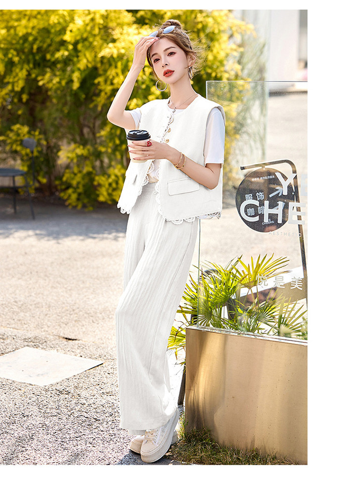 小香风老钱风蕾丝亚麻西装,马甲阔腿裤穿搭一整套HR-YRX9228