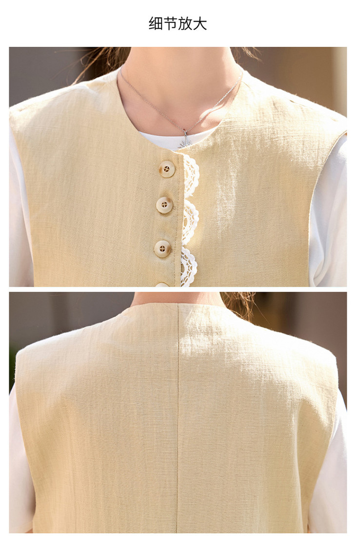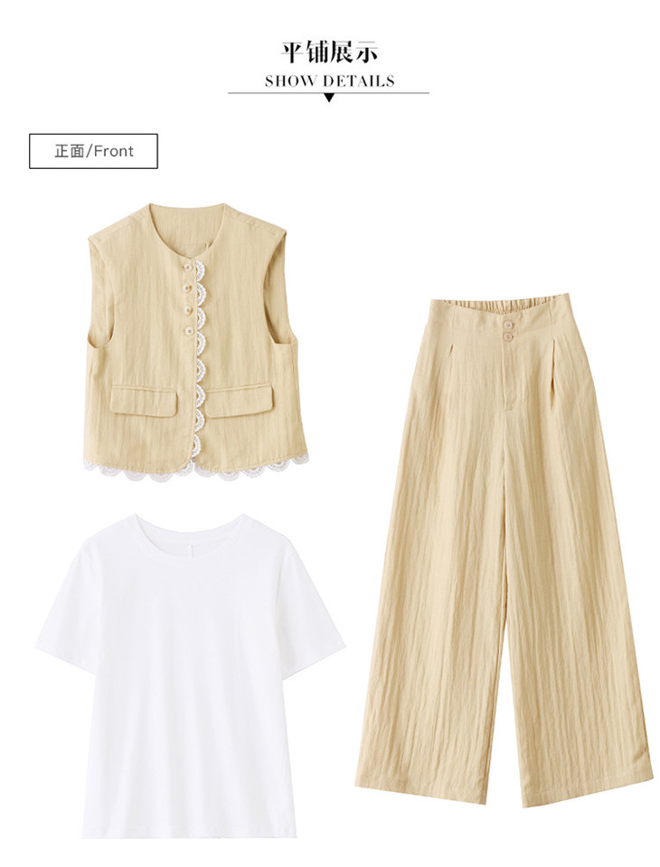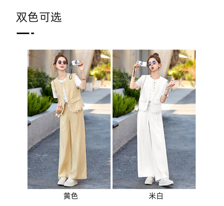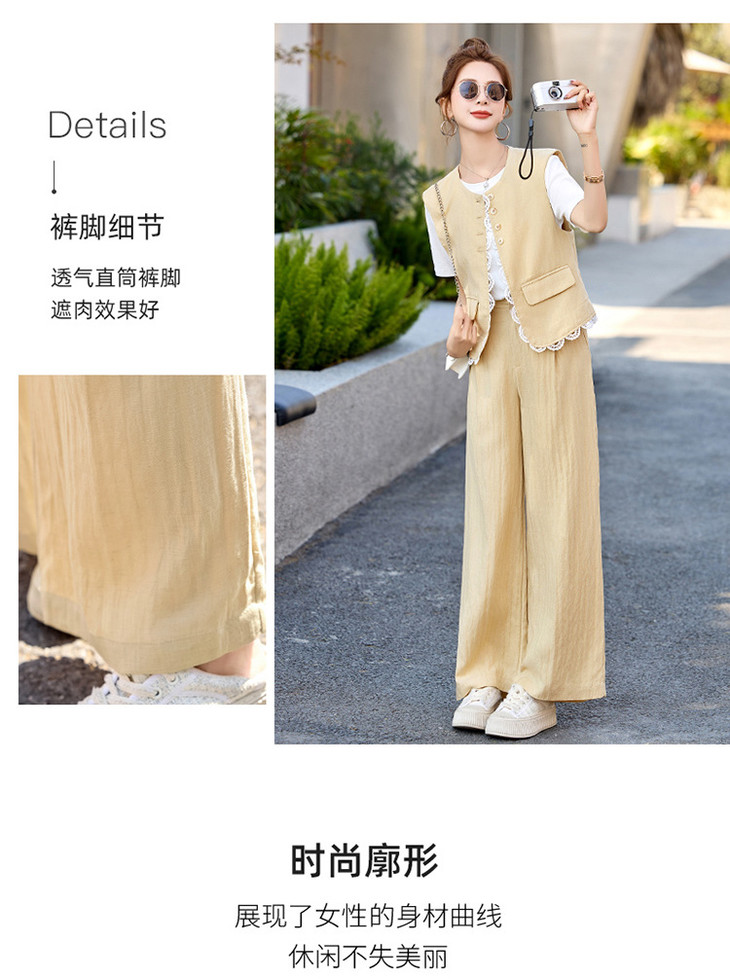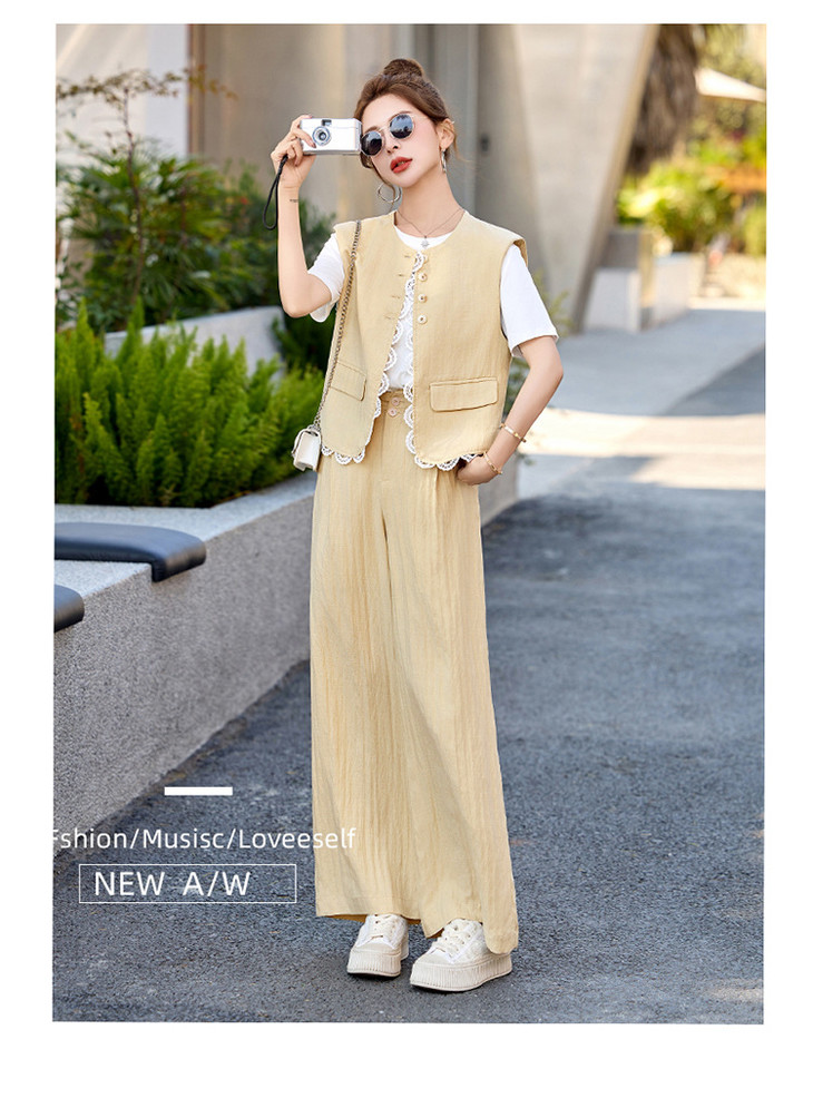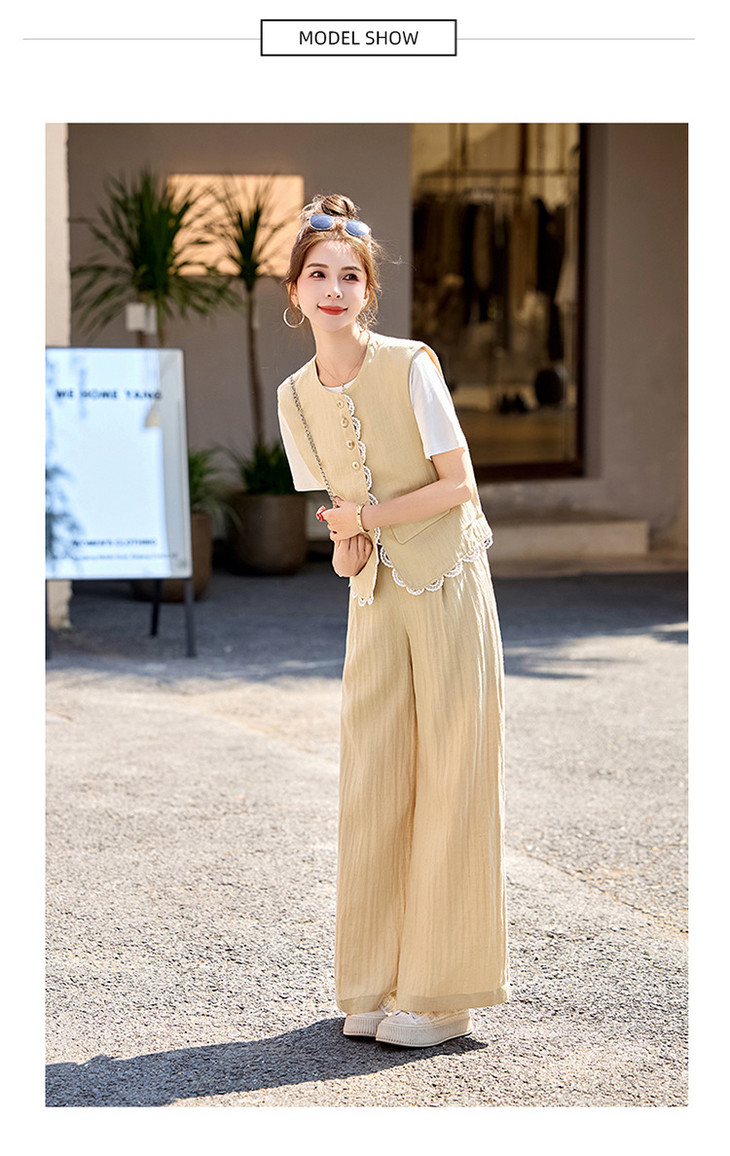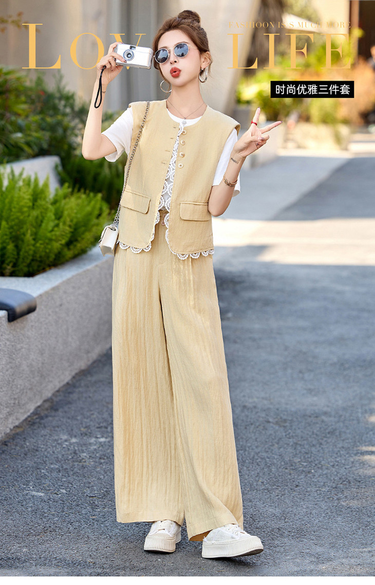 小香风老钱风蕾丝亚麻西装,马甲阔腿裤穿搭一整套HR-YRX9228