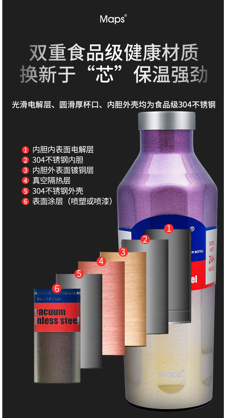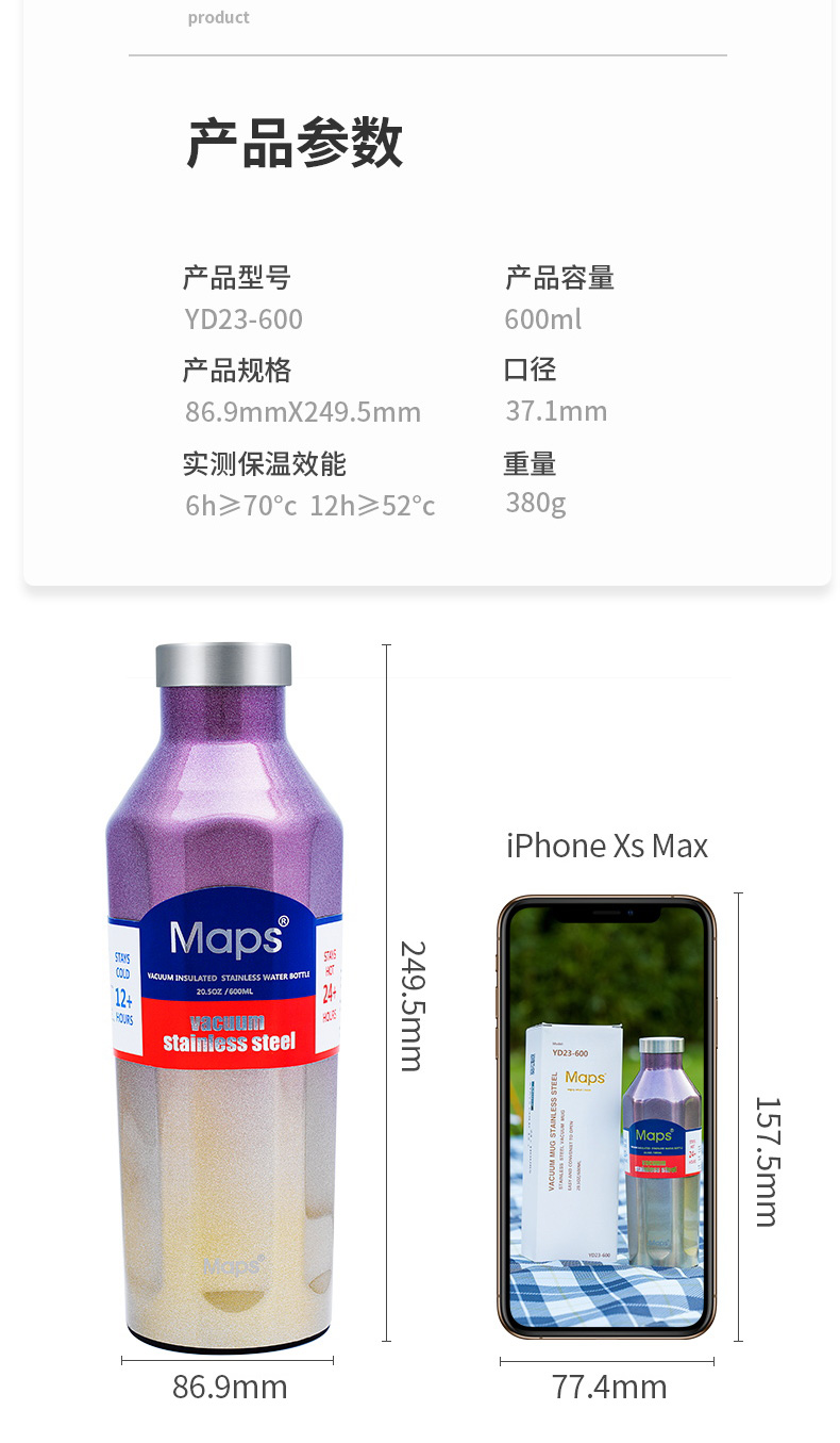 MPS(美派斯)六边形保温杯YD23-600 时尚运动型保温杯600ml