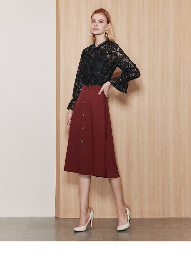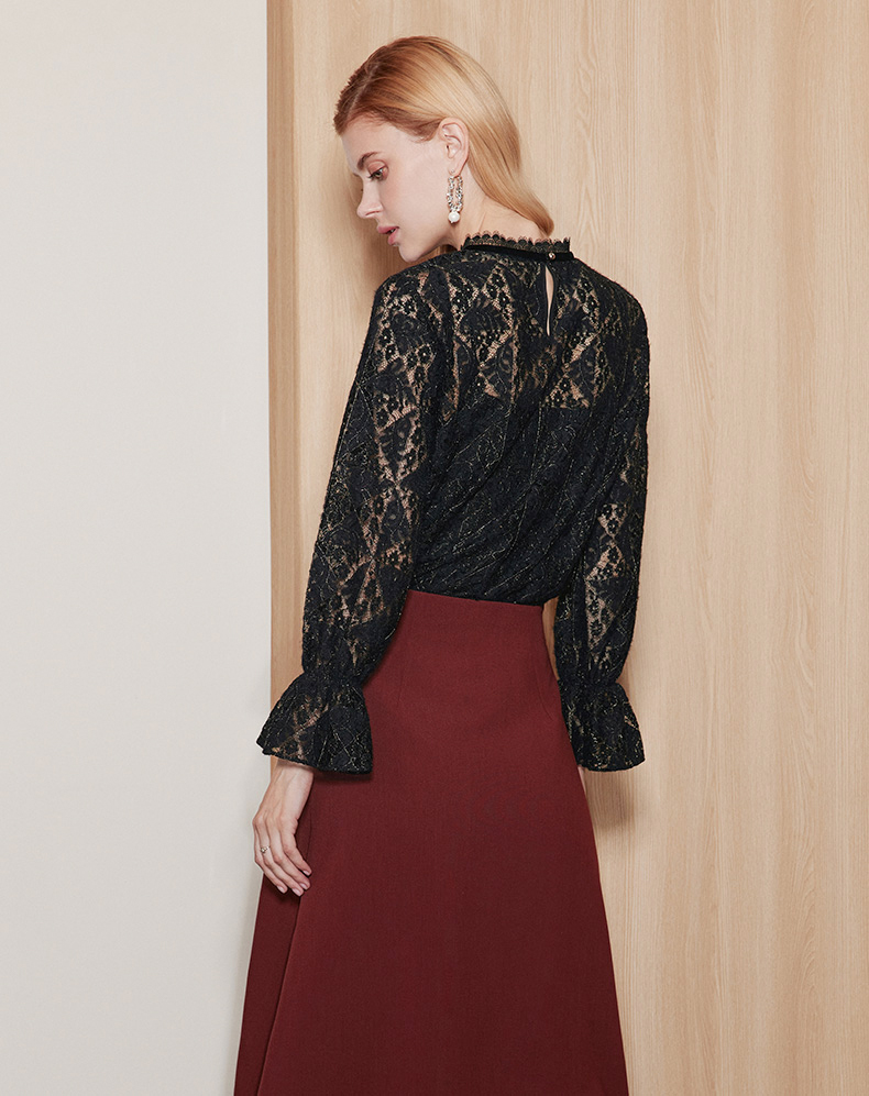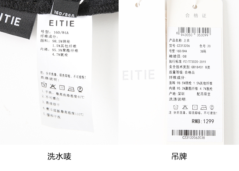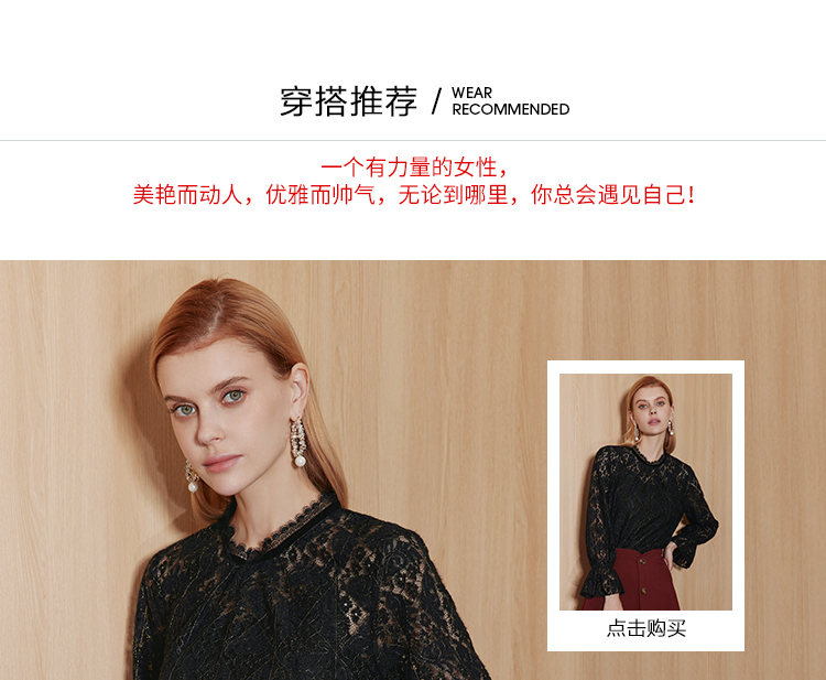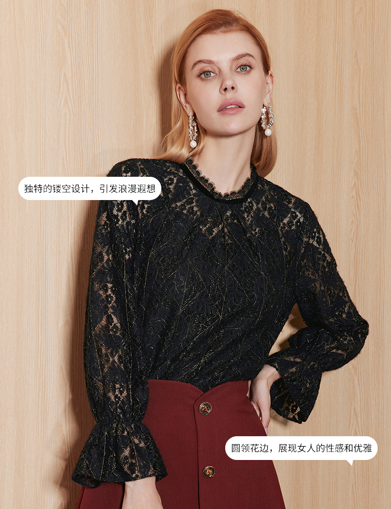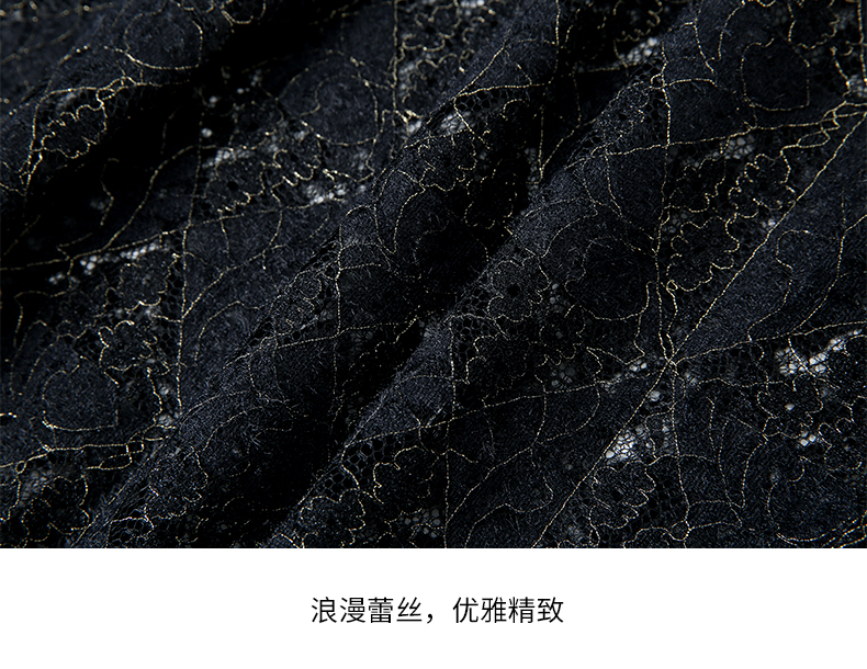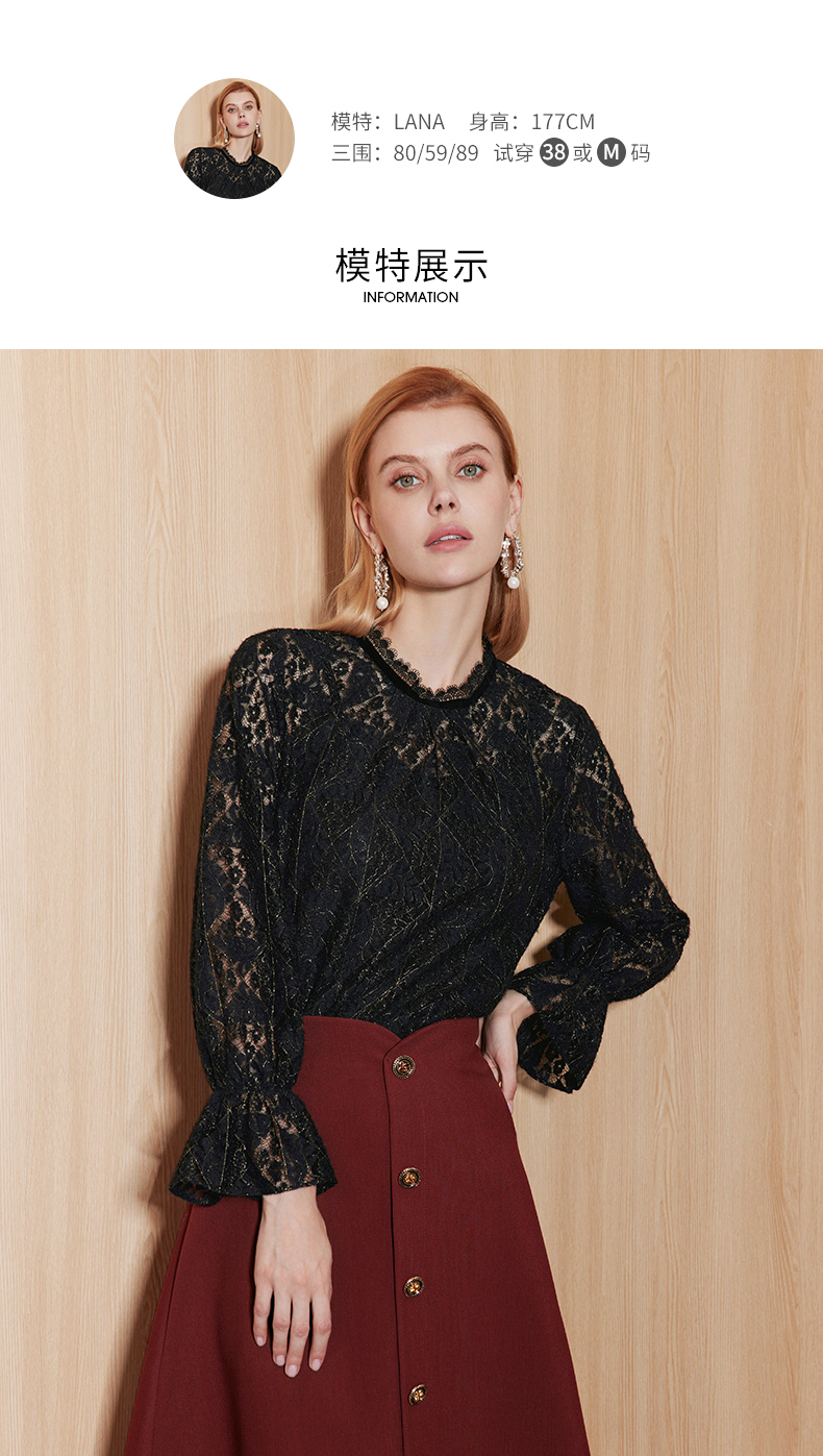 EITIE爱特爱宫廷风立领黑色蕾丝两件套直筒显瘦通勤上衣秋新款C13206