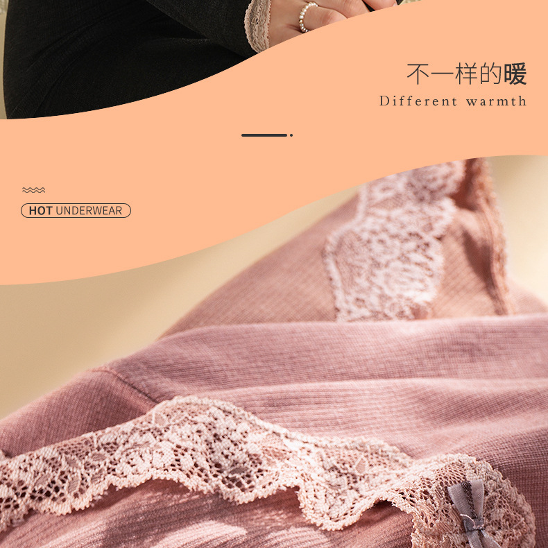 ChuMoo保暖内衣+塑形美体二合一,羊毛+德绒双倍发热,修身显瘦,蕾丝复古,性感优雅保暖内衣套装