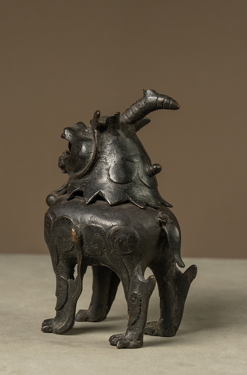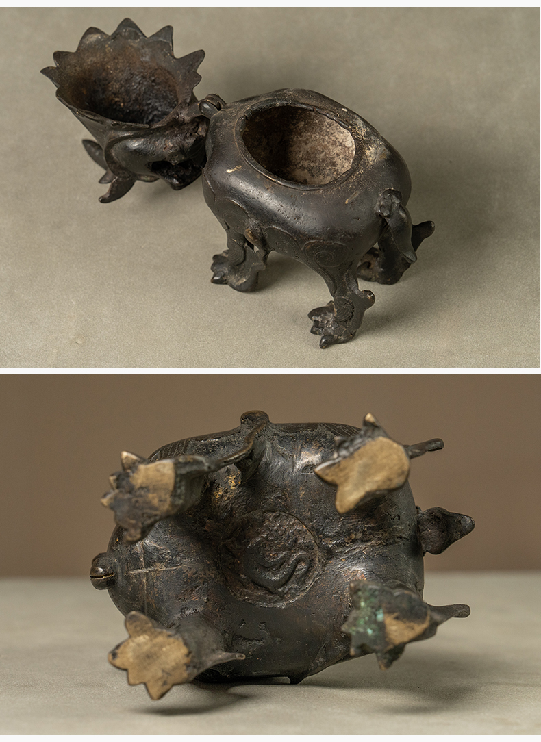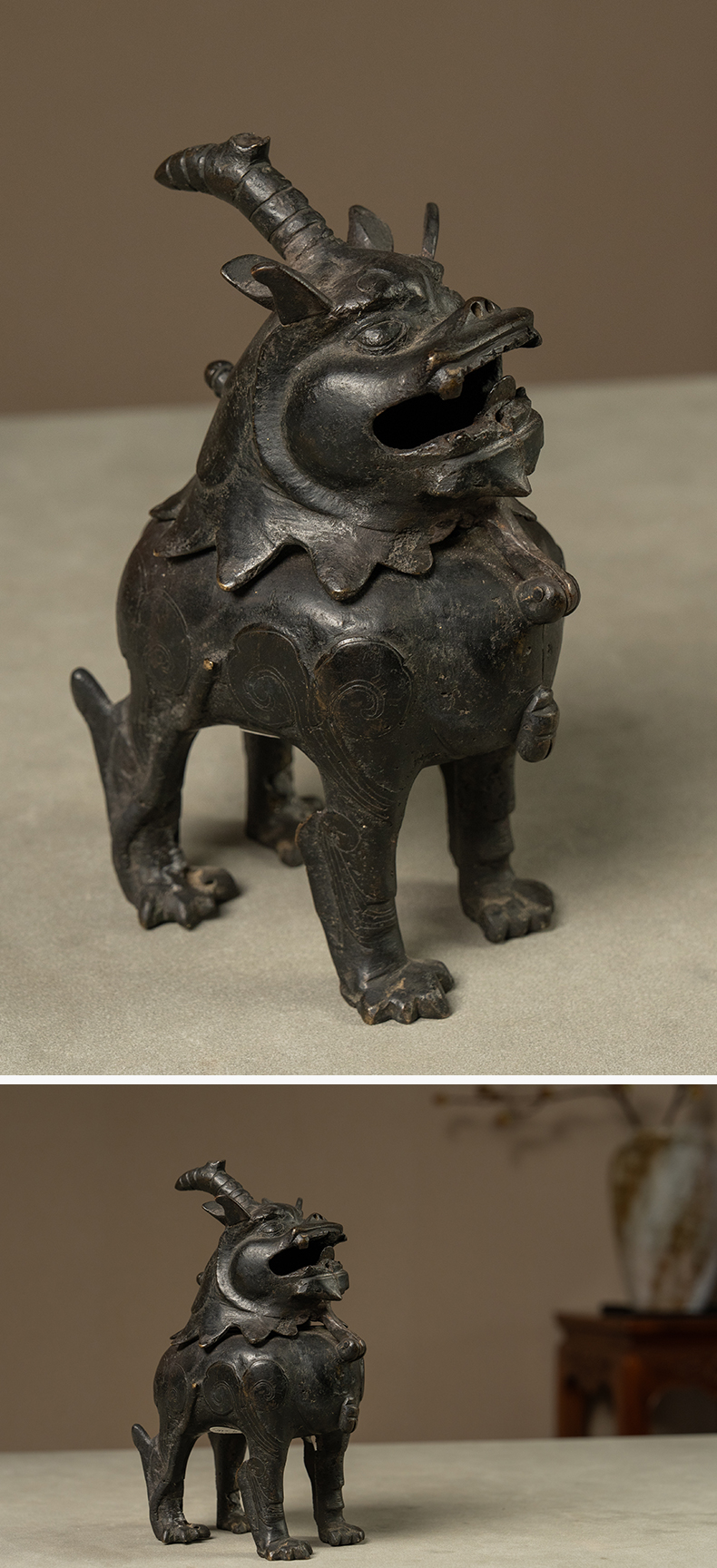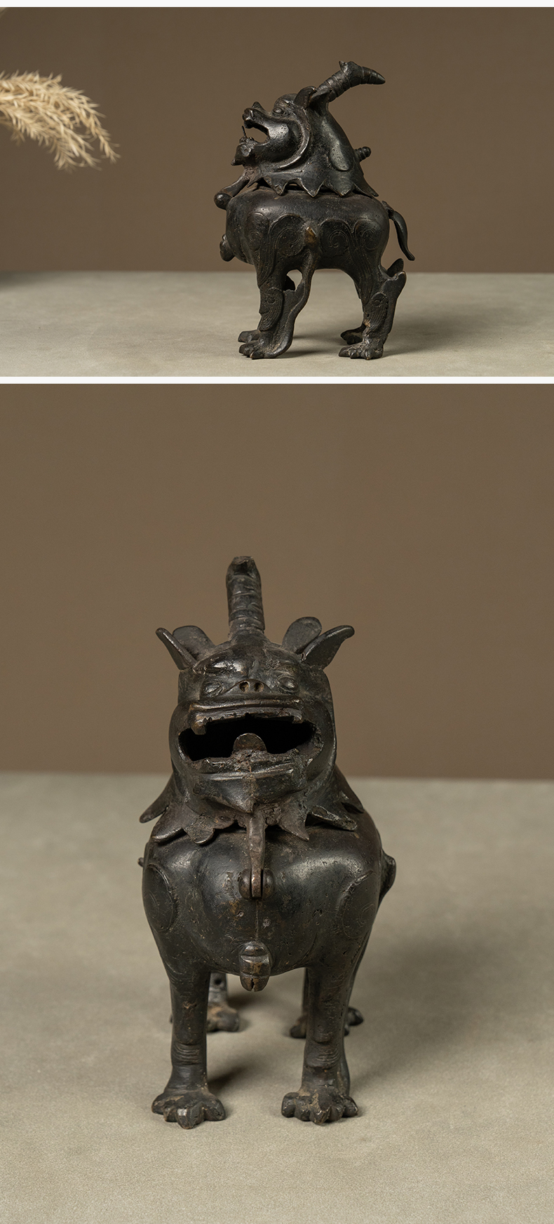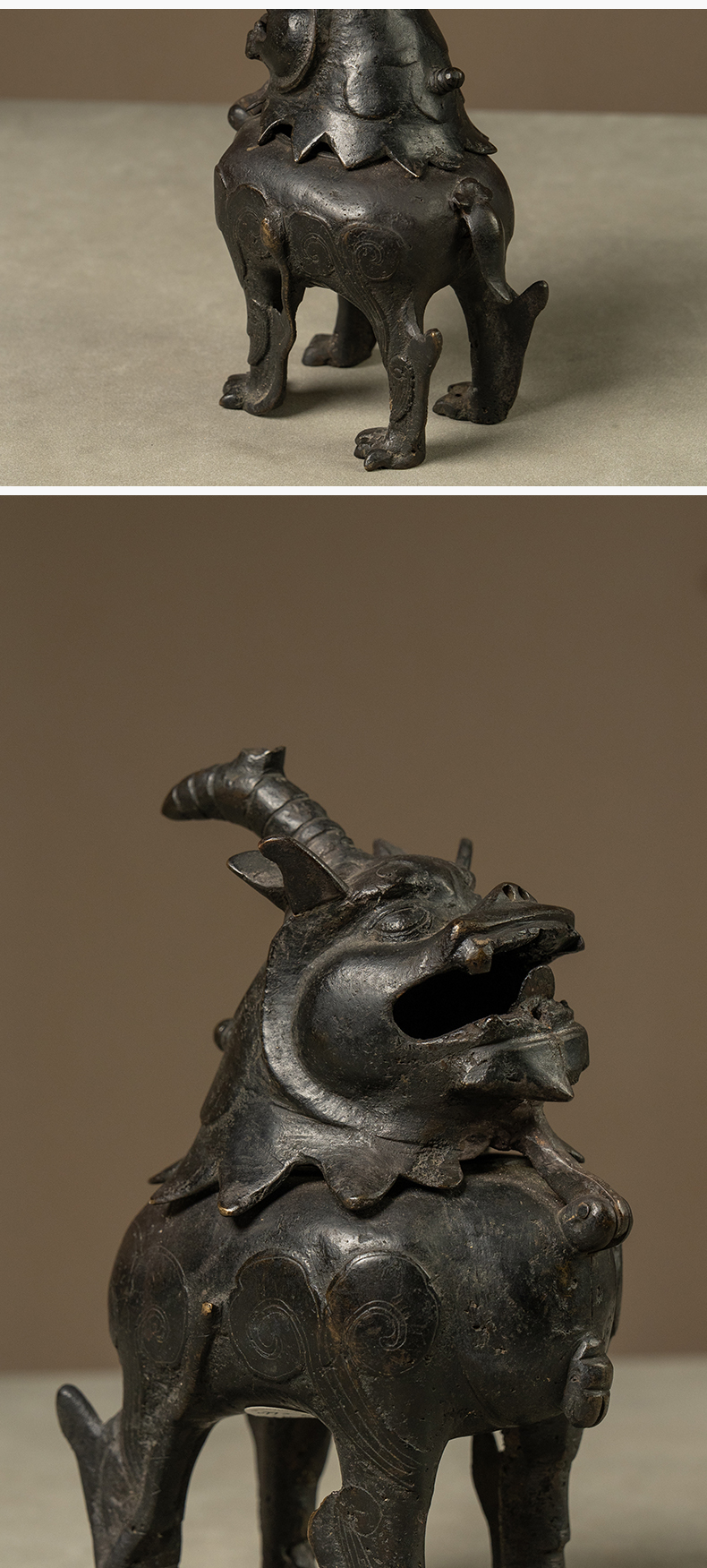 二十世纪 红木嵌云石透雕拐子纹百灵台