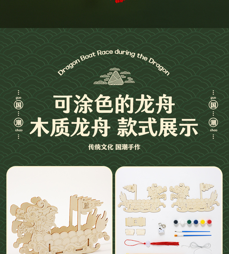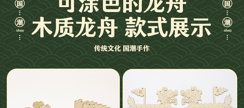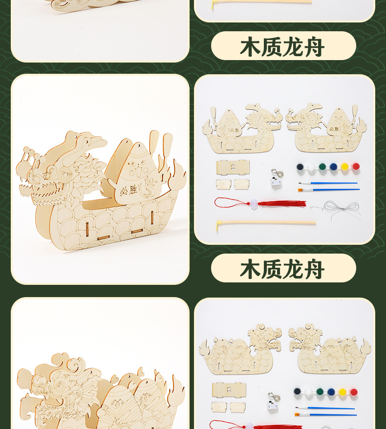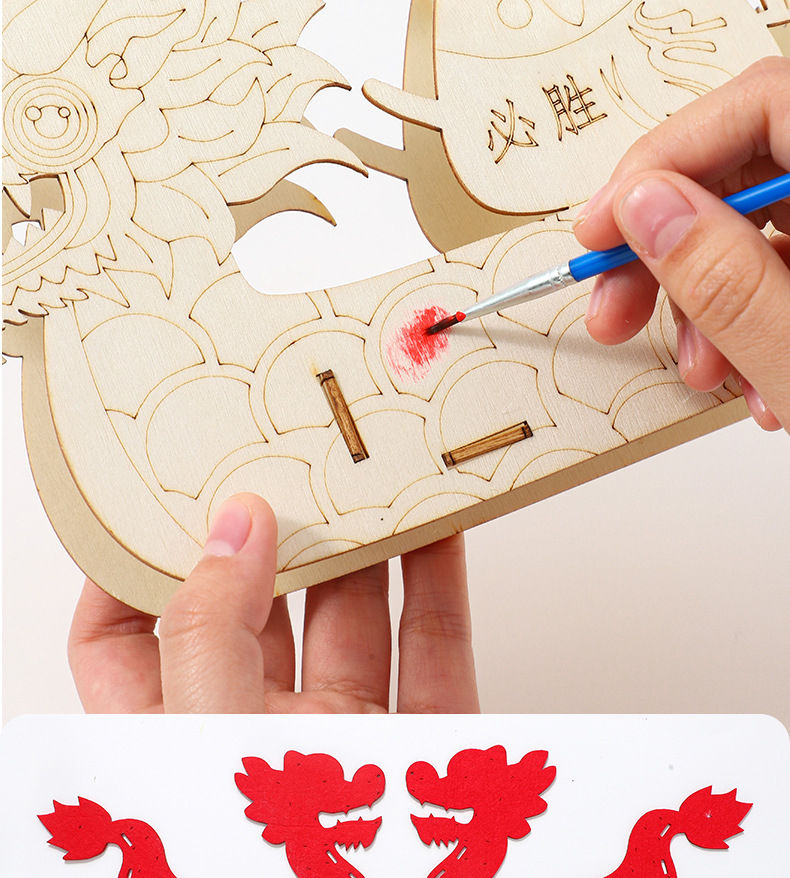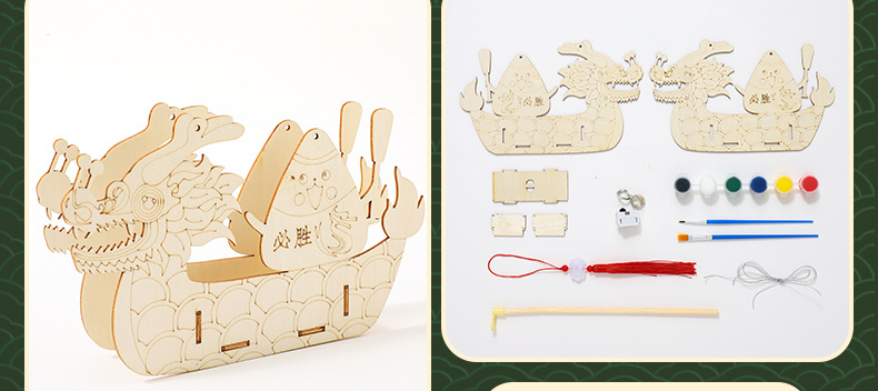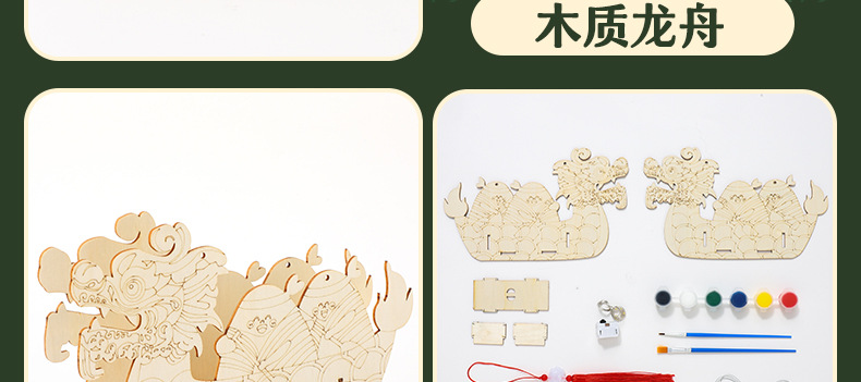 【新款木龙舟diy手工包,创意礼物儿童装饰!】端午木龙舟 diy手工制作材料包 幼儿园儿童礼物 涂鸦画学校装饰摆件-QQ