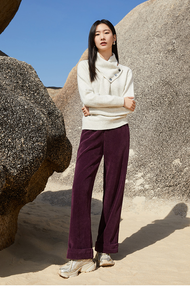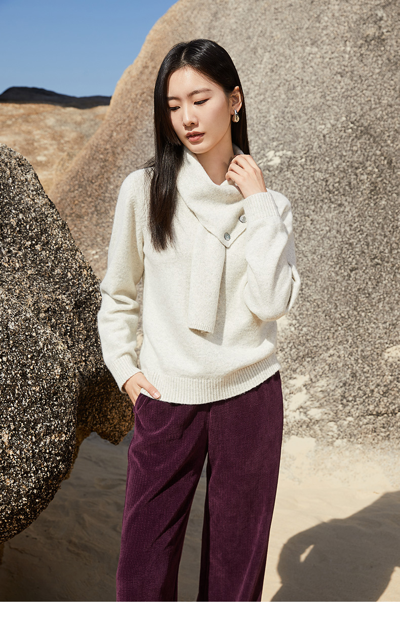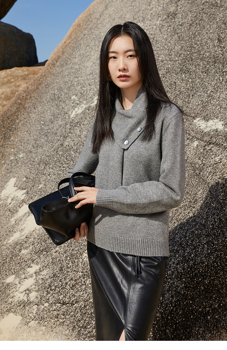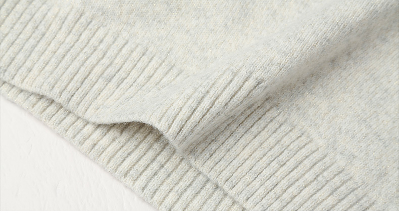 浅灰色 V 领不对称纽扣装饰针织衫 秋冬温柔风宽松显瘦长袖套头毛衣上衣