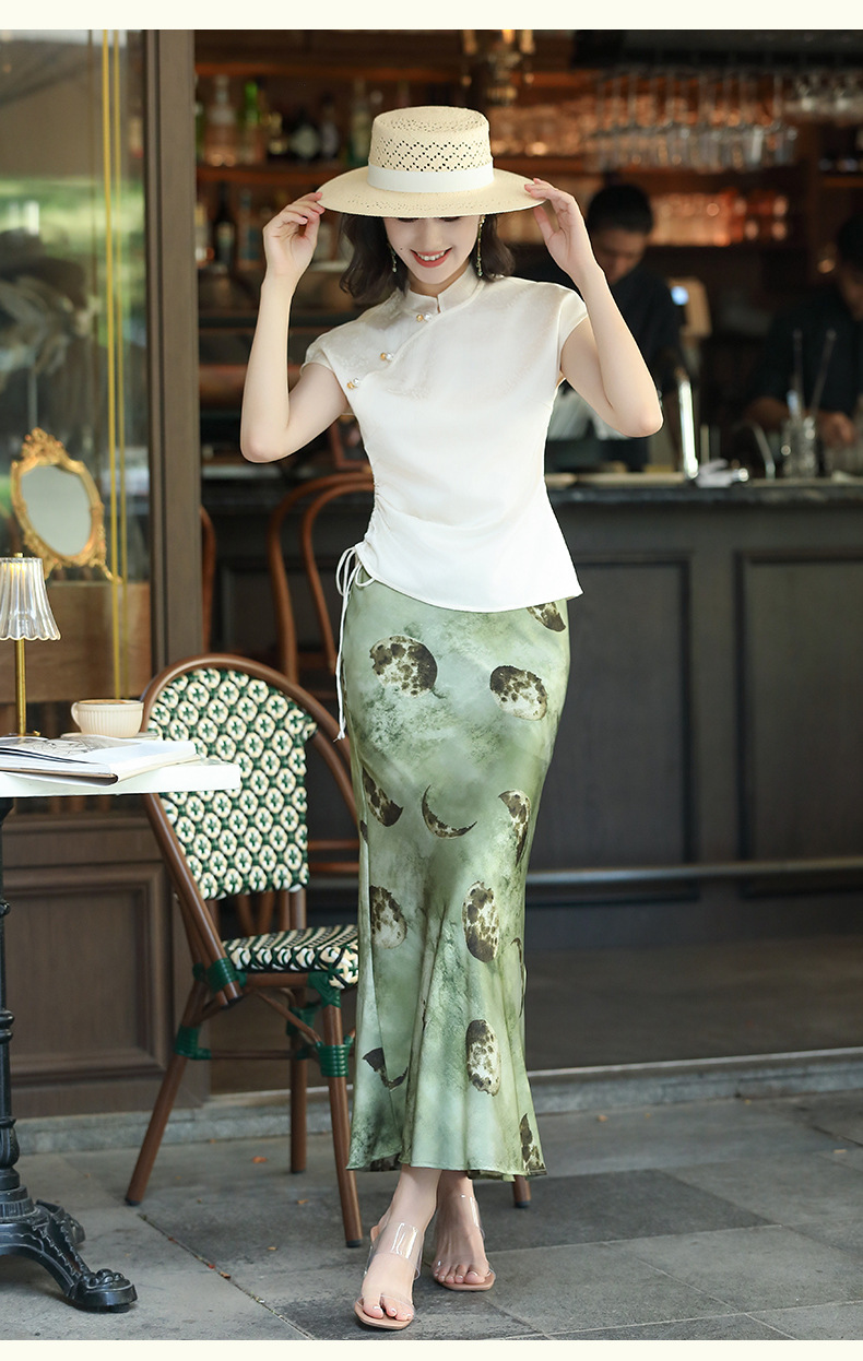 OY-24526气质半身裙女装夏季新款百搭缎面女人味鱼尾裙子长裙24526