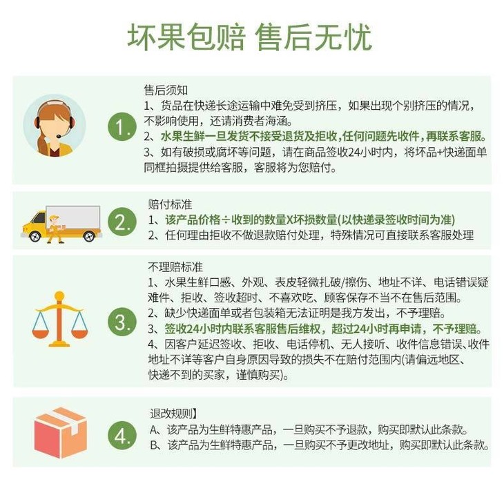 品名:云南瑞雪苹果 规格1:4斤中果装(果径约60~69mm;以重量为准) 规格2:4斤大果装(果径约70~79mm;以重量为准) 规格3:4斤特大果装(果径约80~89mm;以重量为准);拍几份发几个包裹,不一定能同时到达,请耐心等待; 发货地/产地:云南 包装方式:箱装 物流信息:默认圆通/中通发货,不支持指定快递 发货区域:新疆、西藏、内蒙、甘肃、宁夏、青海、海南不发;黑龙江、吉林、辽宁+1元; 物流详情:周六、周日及节假日除外,正常48小时内发货,到货时间约为2~5天,请耐心等待 售后说明:收到货后有质量问题,在24小时内都可以拍照(坏品+快递单面箱子一起拍)上传,申请按坏品比例理赔或联系客服;生鲜食品性质特殊,不支持7天无理由退换货;因地址错误,手机号联系不上,拒收等造成的损失无法售后,请理解; |