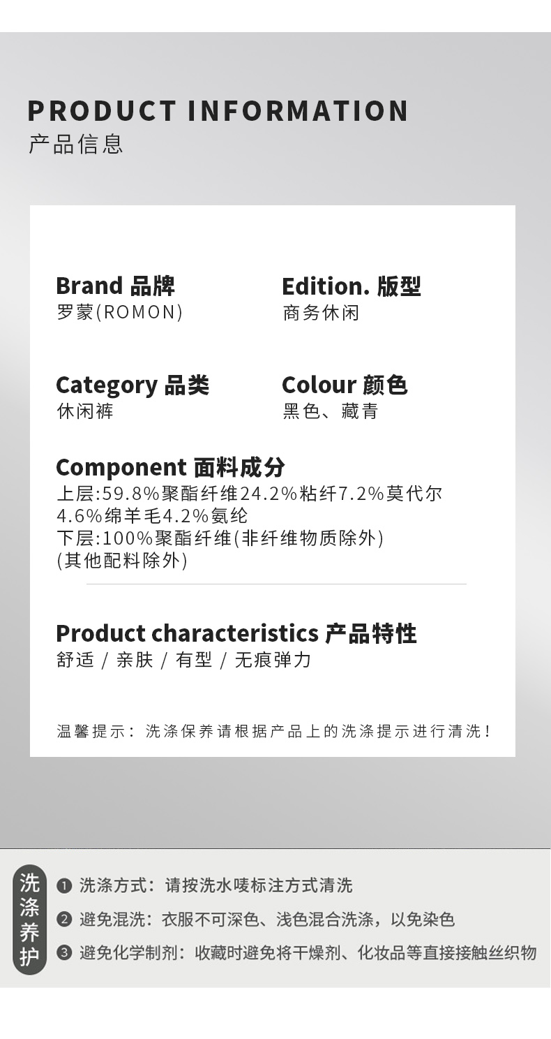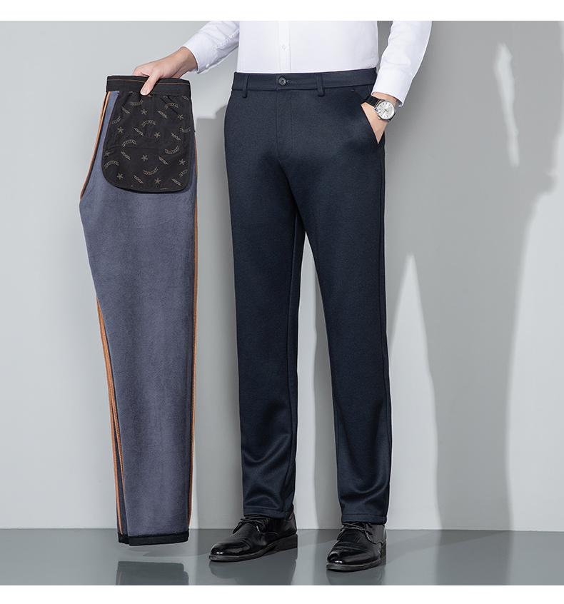 【莫代尔绵羊毛】罗蒙男士休闲裤加绒加厚保暖裤子磨毛内里舒适商务风通勤长裤