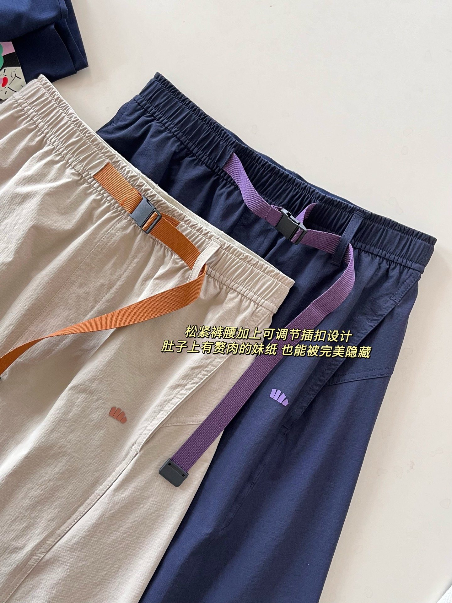 松紧裤腰加上可调节插扣设计