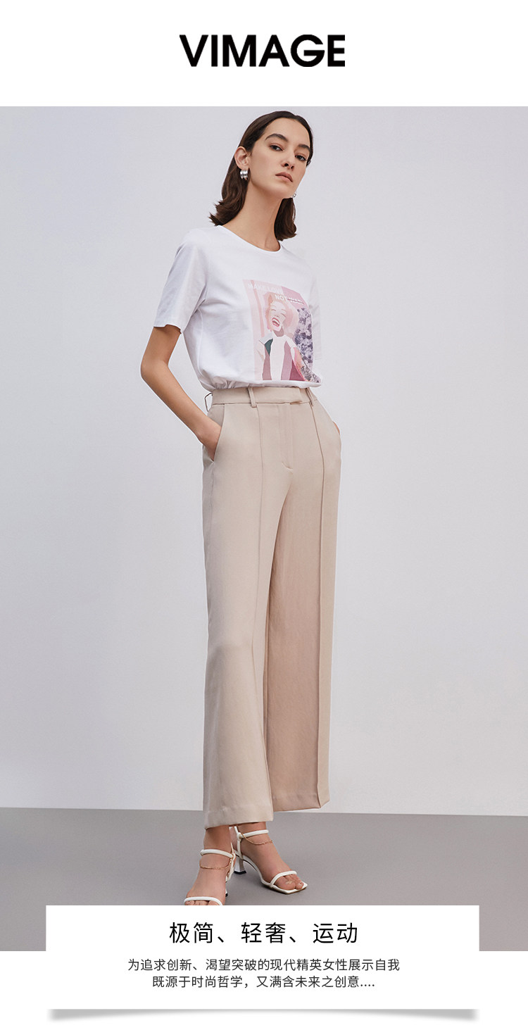 VIMAGE纬漫纪女装春夏款西装休闲裤女宽松裤薄款直筒裤子V1505106D