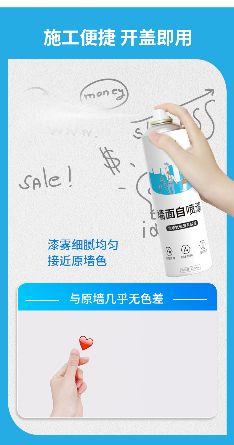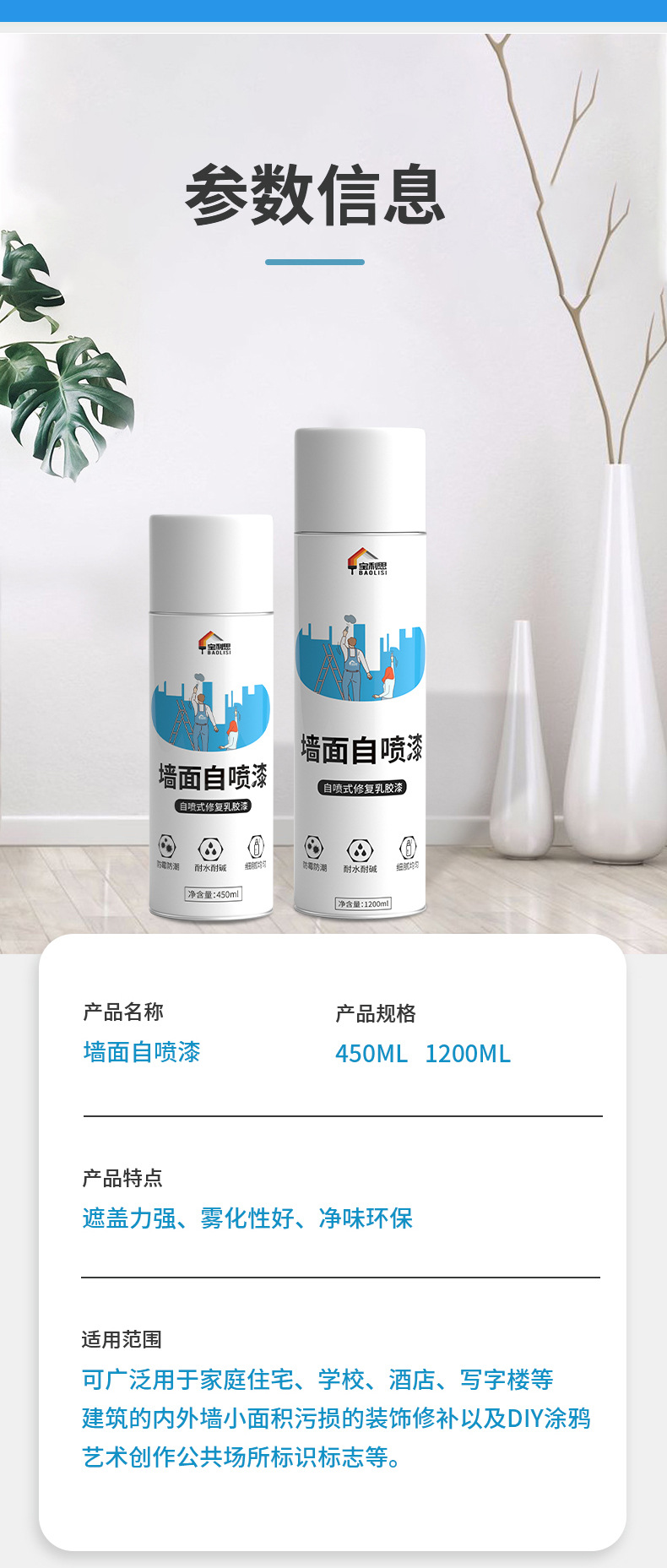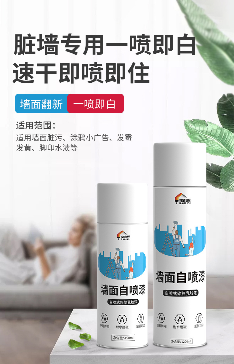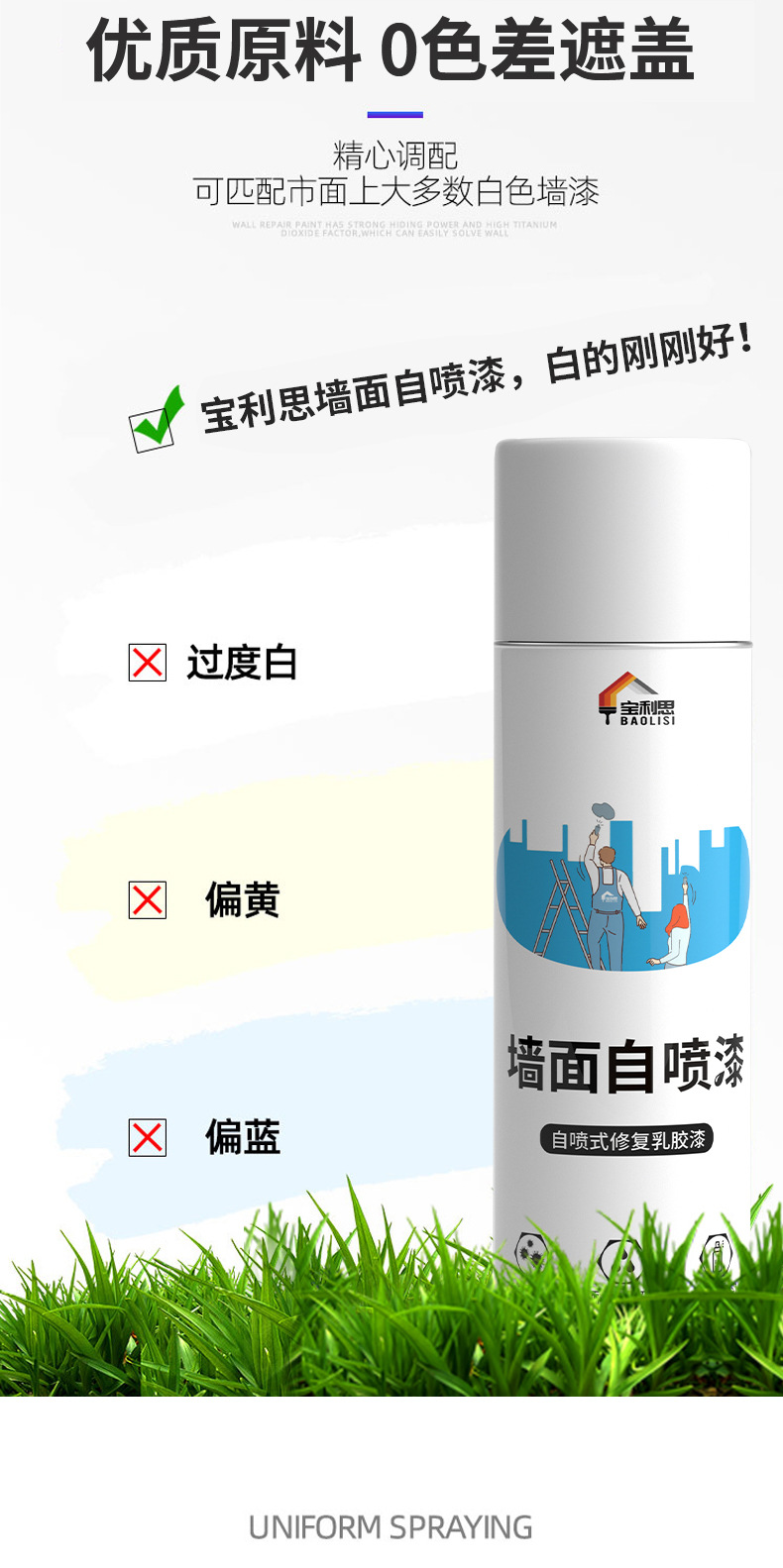 自喷漆宝利思白墙翻新修补乳胶漆遮盖污渍涂鸦水性墙面自喷漆800ML