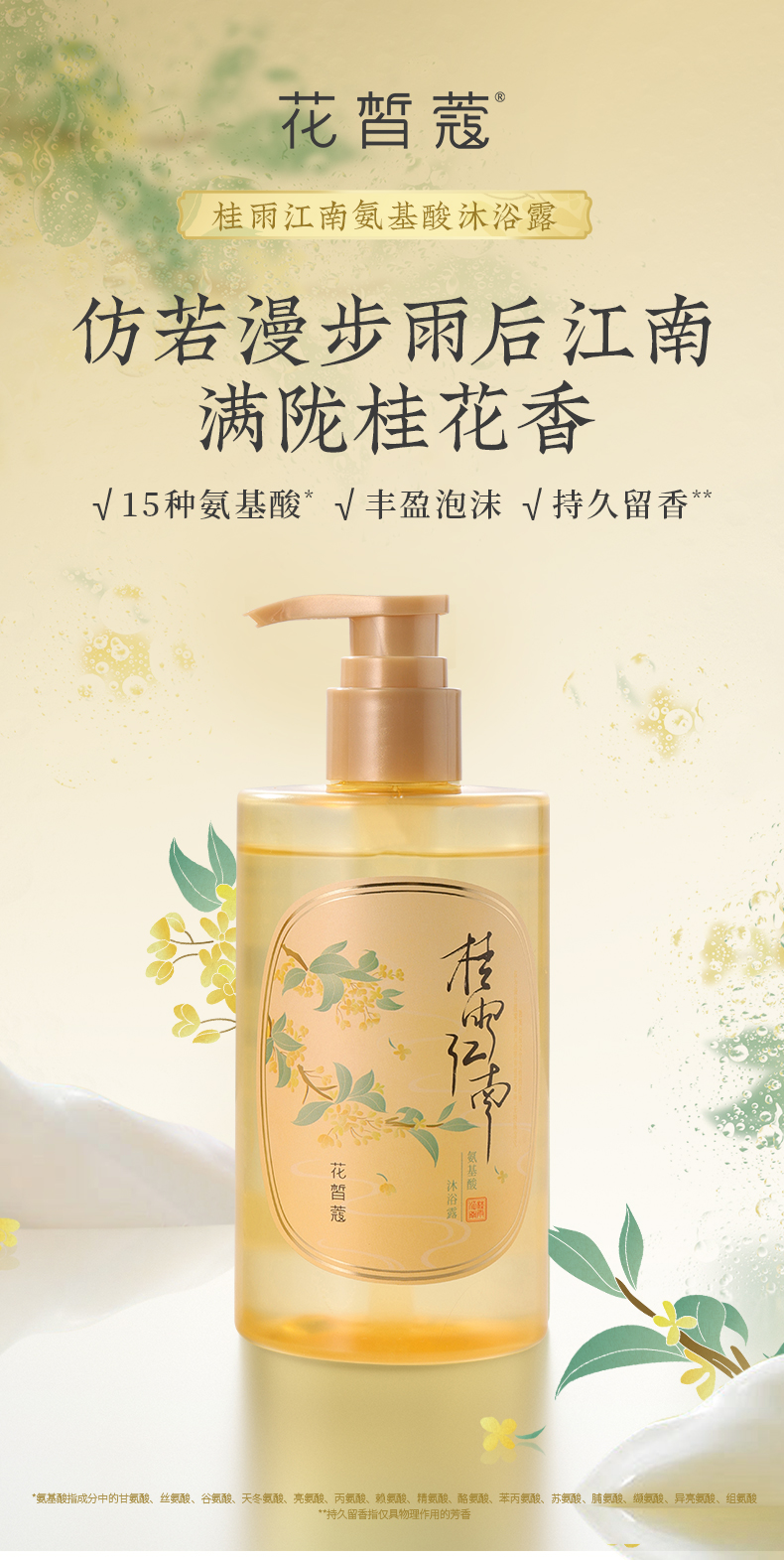 【会员购物送10倍积分】花皙蔻 桂雨江南氨基酸沐浴露300ml