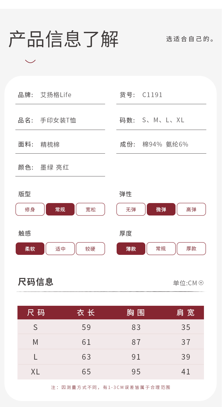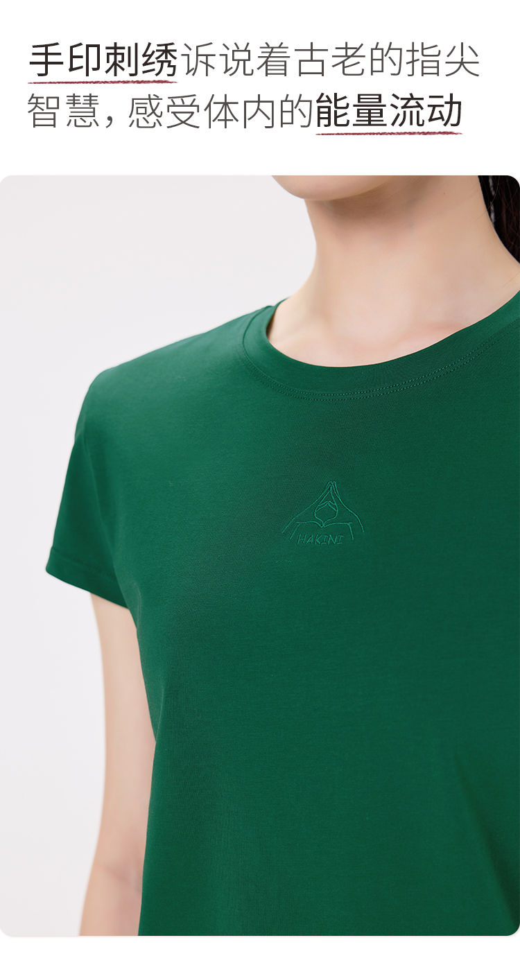 C1191艾扬格 life 手印女装瑜伽短袖T恤基础版型胖瘦都HOLD住 手印刺绣指尖智慧感受体内的能量流动