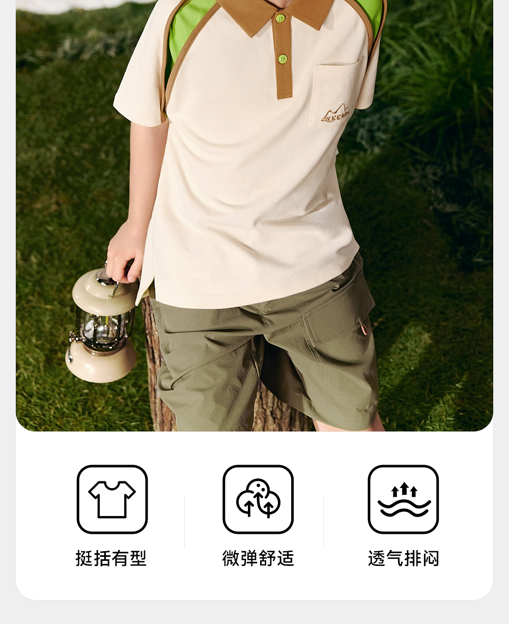 英氏儿童T恤夏季透气凉感上衣POLO衫短袖男童女童休闲T恤2025新款