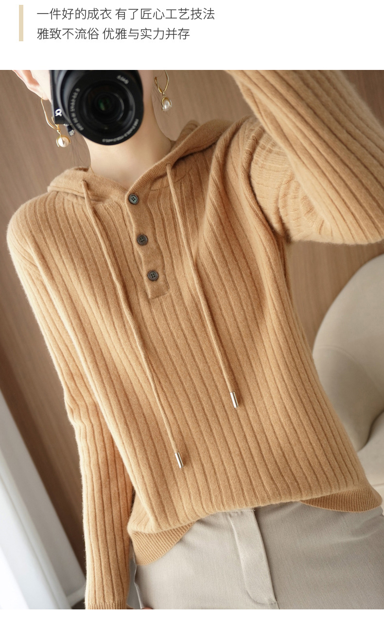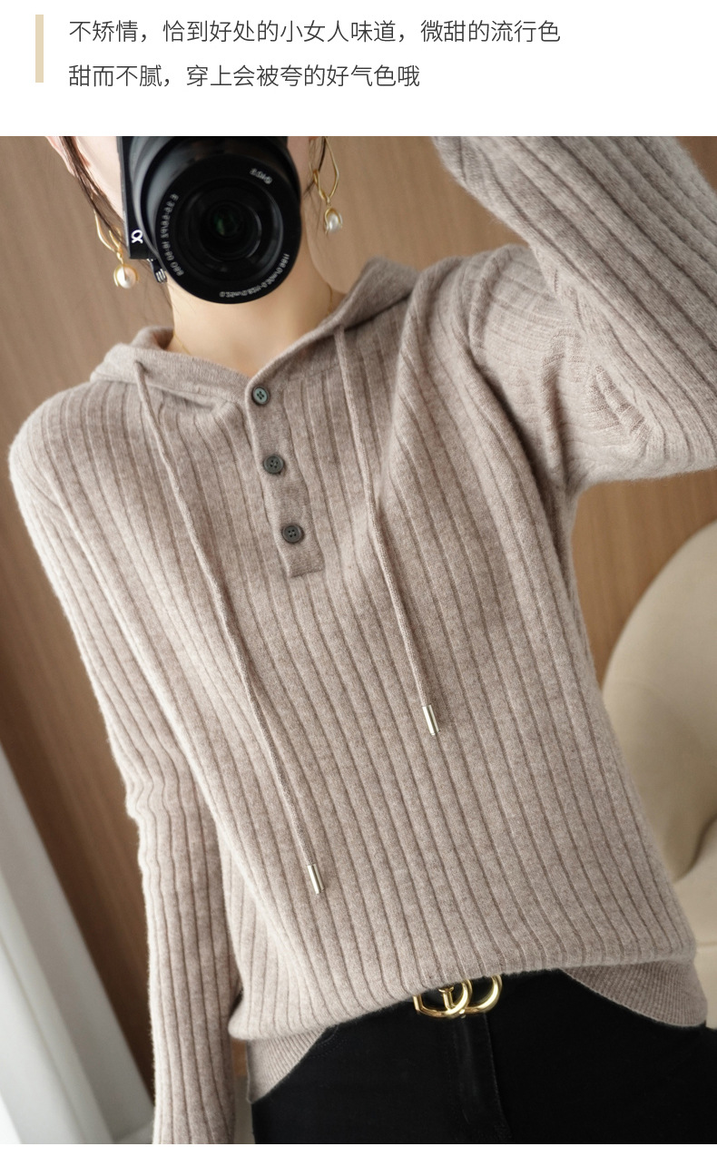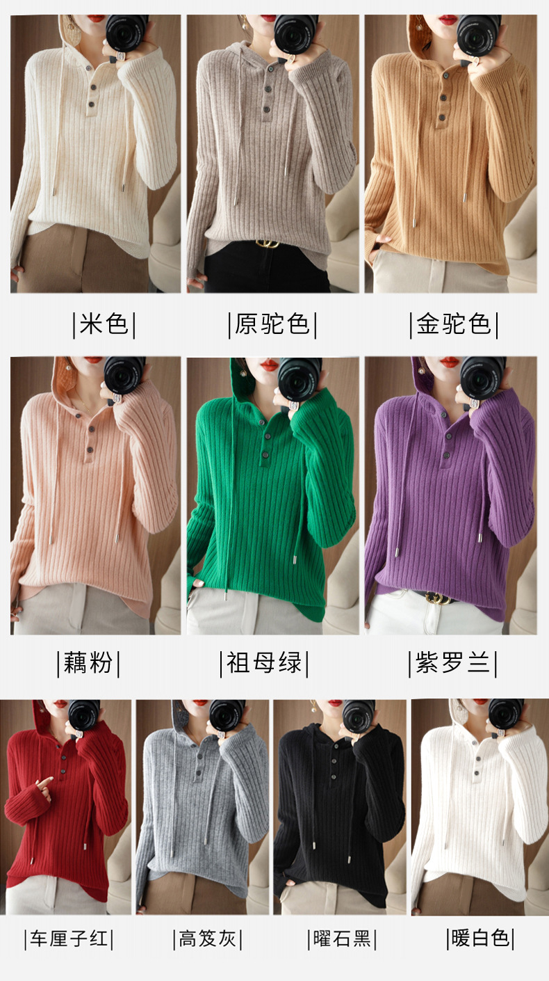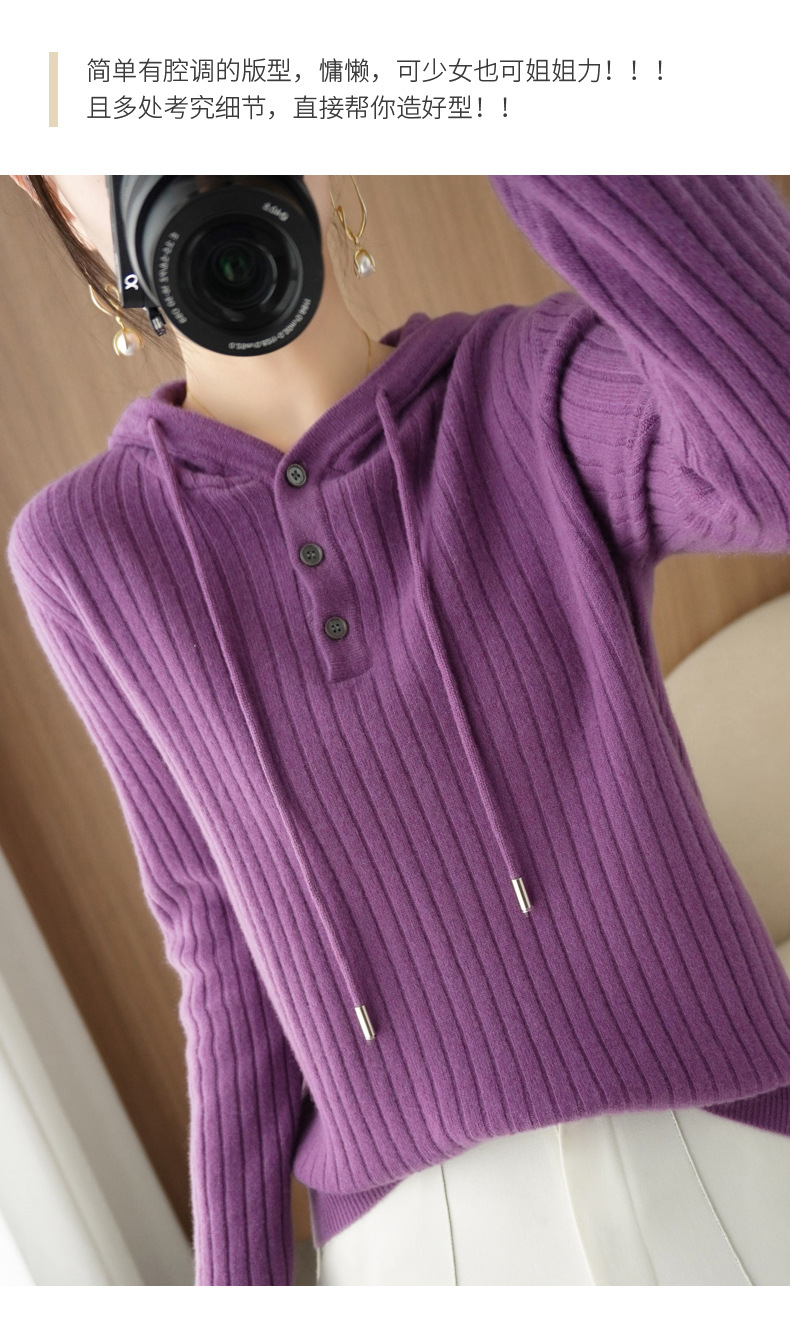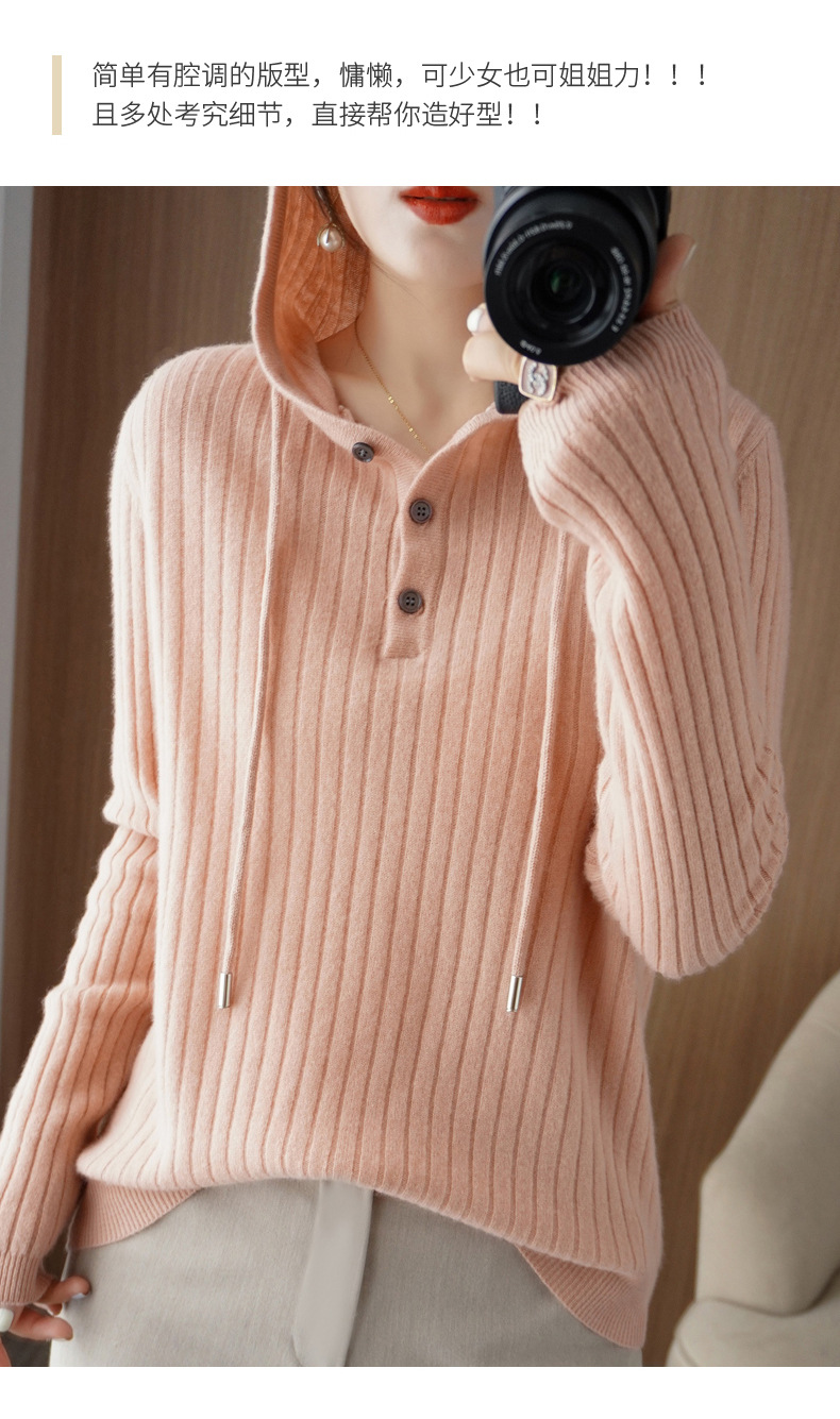 QHJY-JYMS22810秋冬季新款女式连帽针织卫衣外套长袖加厚坑条上衣毛衣帽衫女