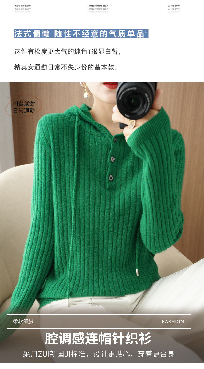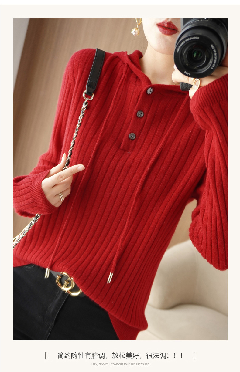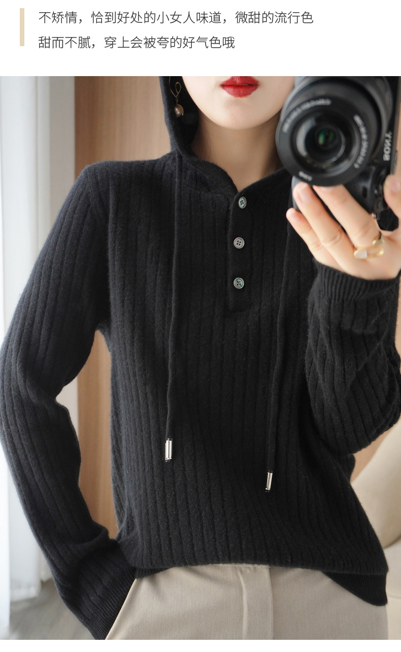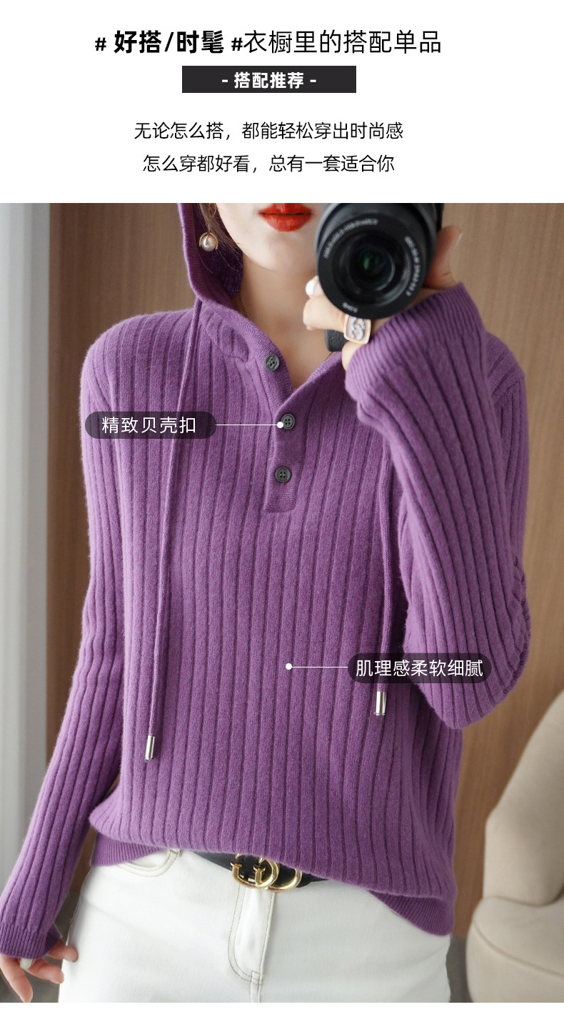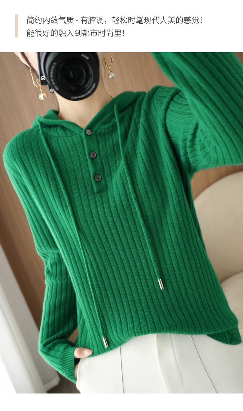 QHJY-JYMS22810秋冬季新款女式连帽针织卫衣外套长袖加厚坑条上衣毛衣帽衫女