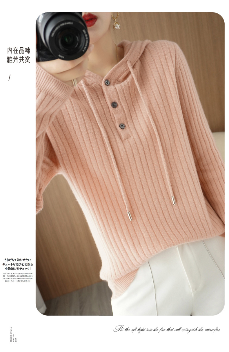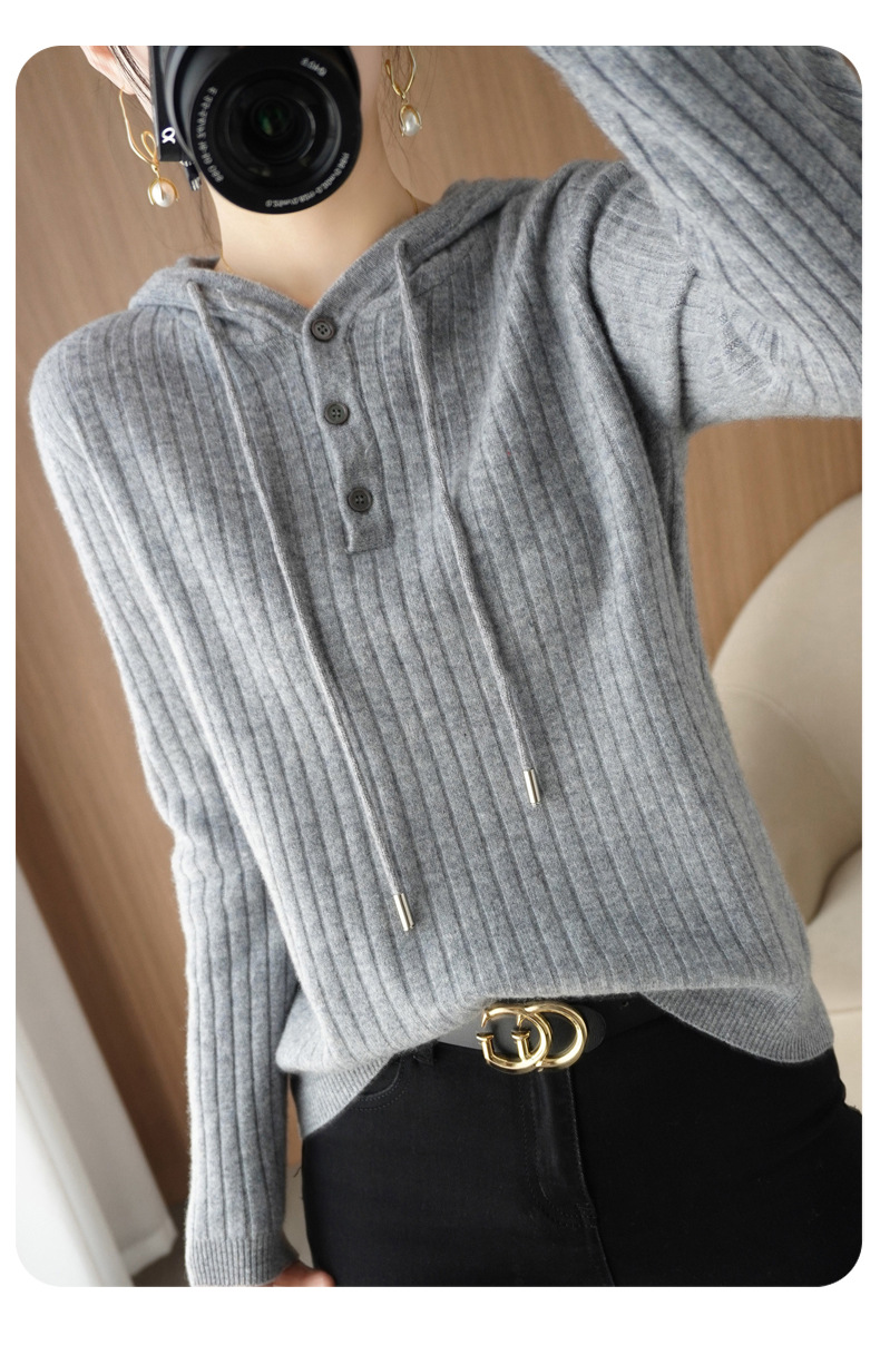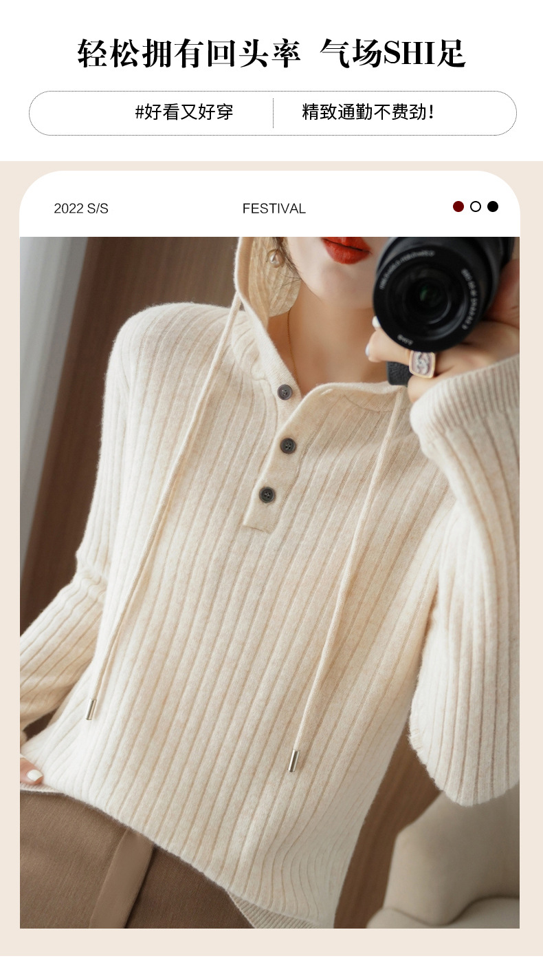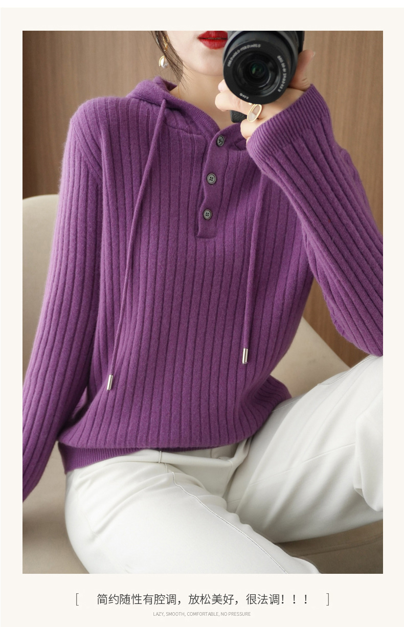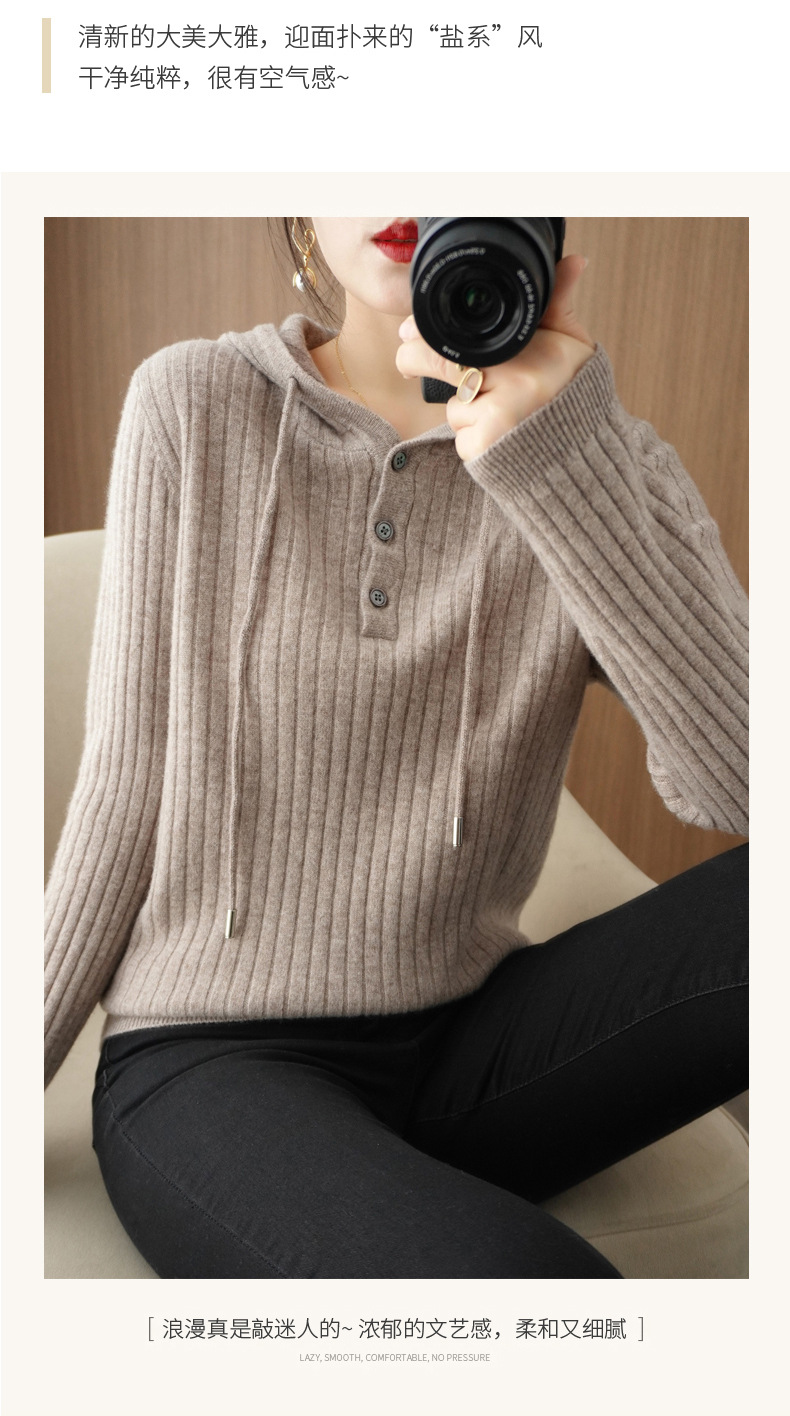 QHJY-JYMS22810秋冬季新款女式连帽针织卫衣外套长袖加厚坑条上衣毛衣帽衫女
