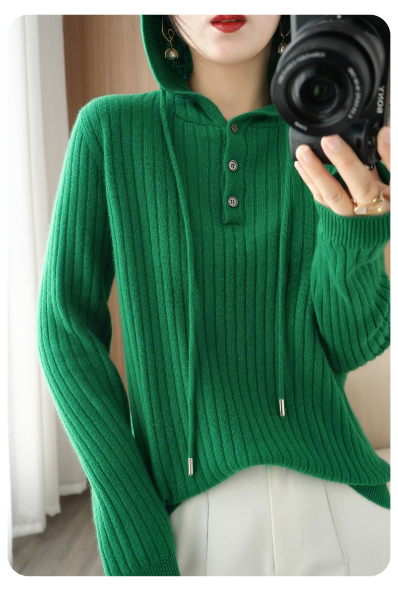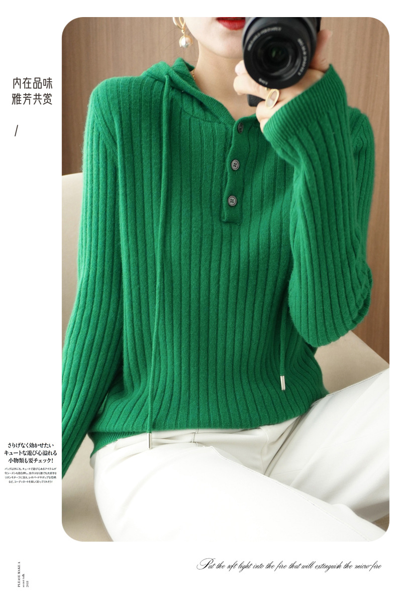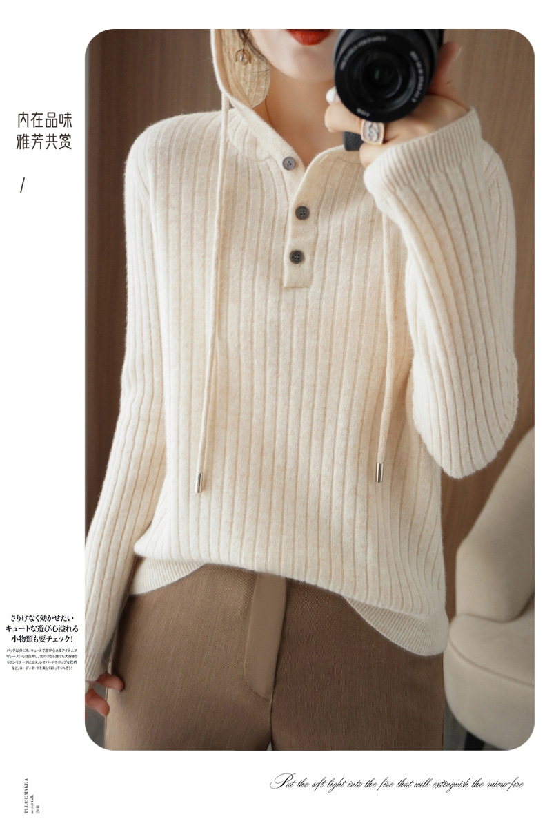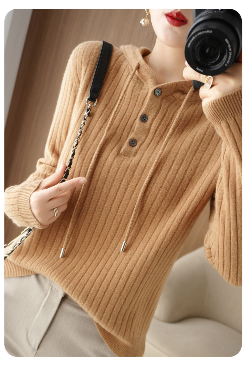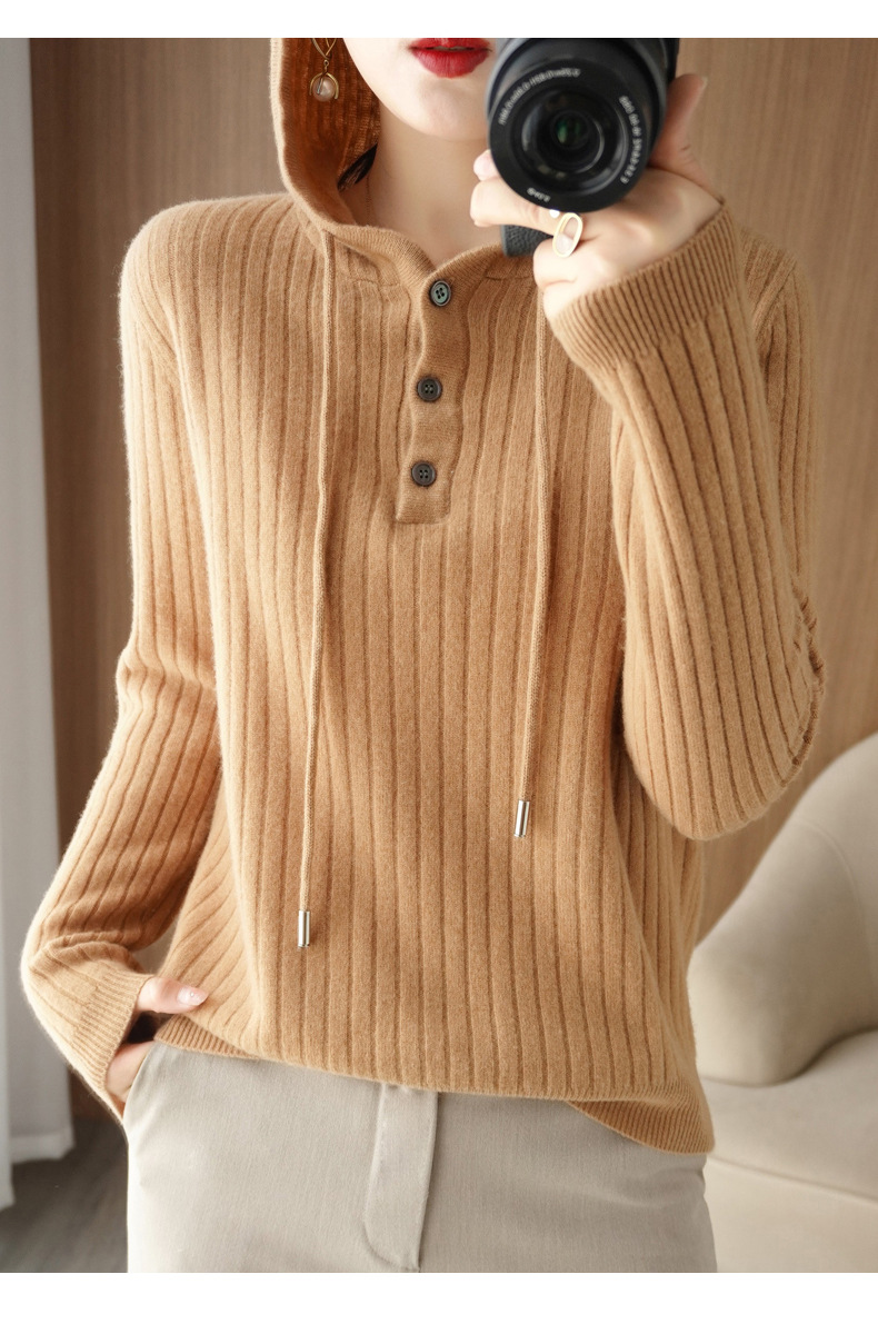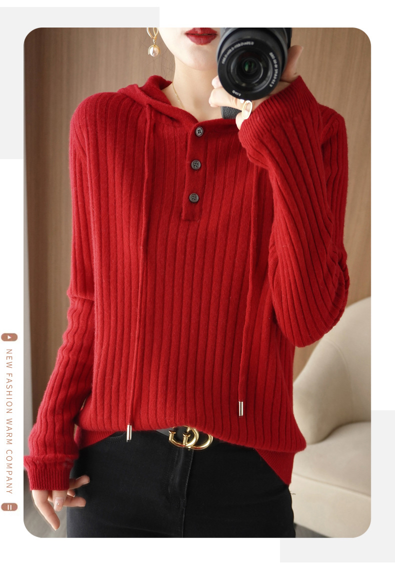 QHJY-JYMS22810秋冬季新款女式连帽针织卫衣外套长袖加厚坑条上衣毛衣帽衫女