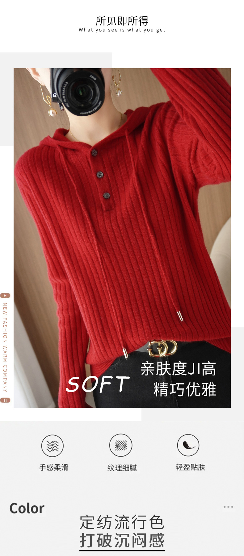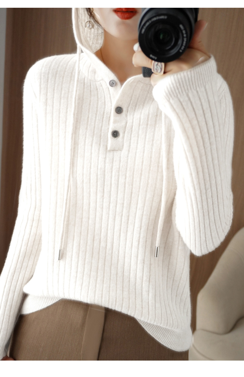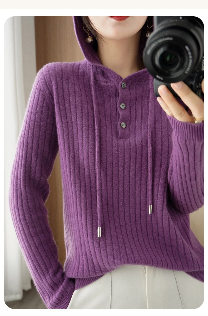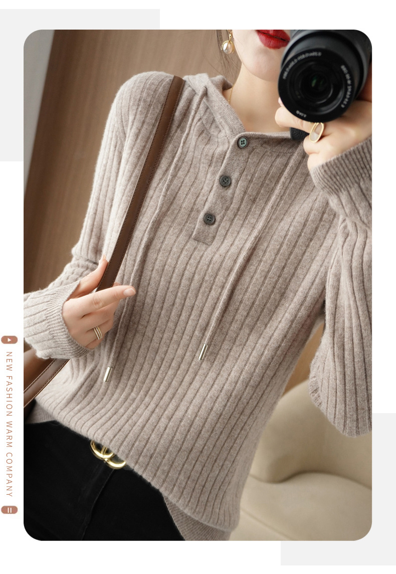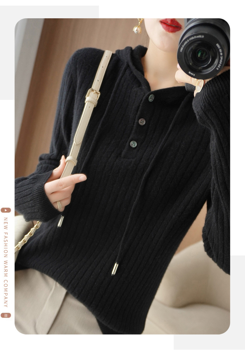 QHJY-JYMS22810秋冬季新款女式连帽针织卫衣外套长袖加厚坑条上衣毛衣帽衫女