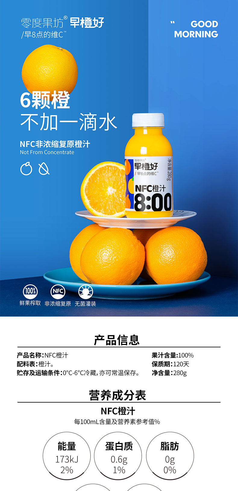 【预售 不加一滴水】零度果坊早橙好橙汁 NFC纯果汁 橙汁/白桃芭乐汁菠萝苹果/葡萄汁 早餐鲜榨饮品 280ml*8瓶装