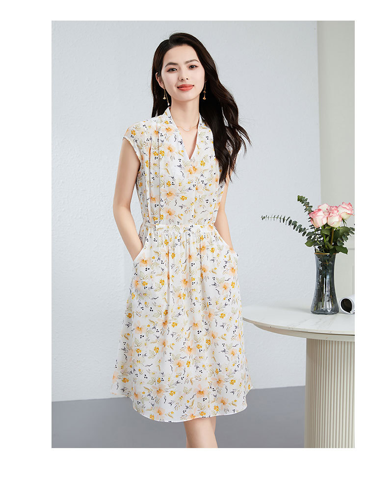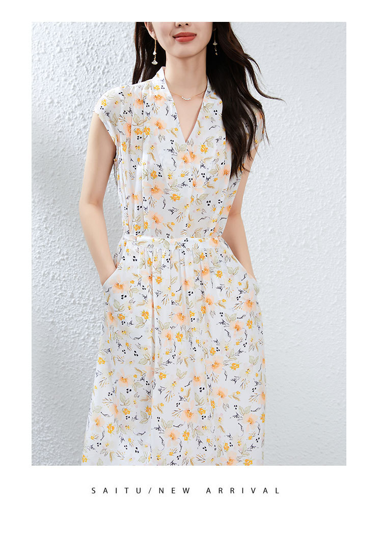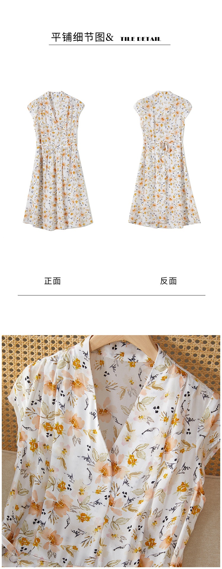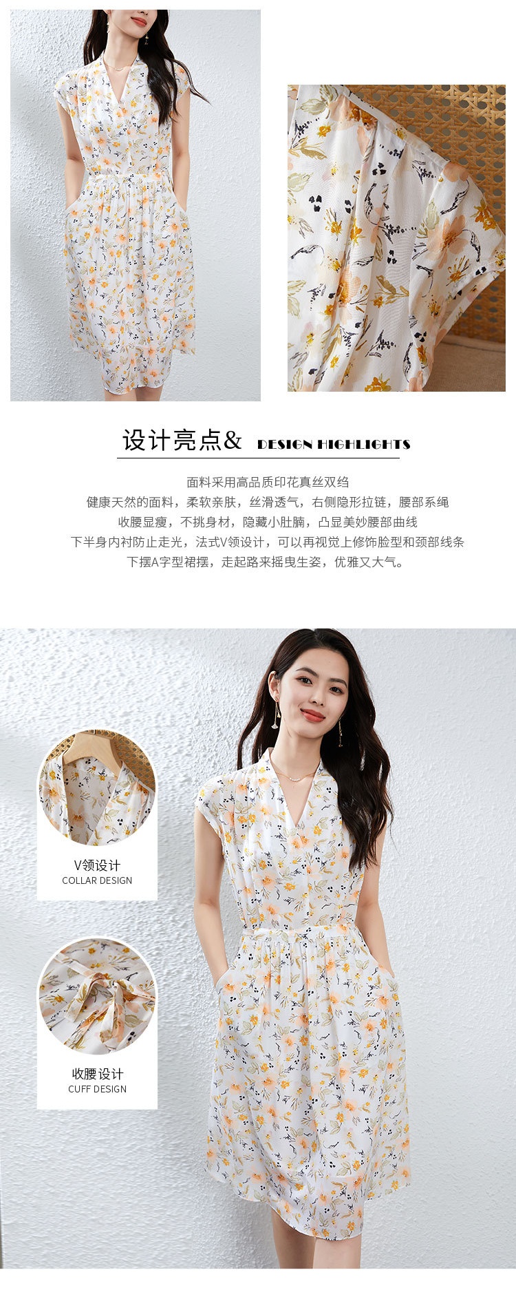 「高货kbnq」全新升级【铂金会员514/天猫699/差价185】(41142)洛诗琳法式真丝印花连衣裙2025夏季V领收腰系带连衣裙