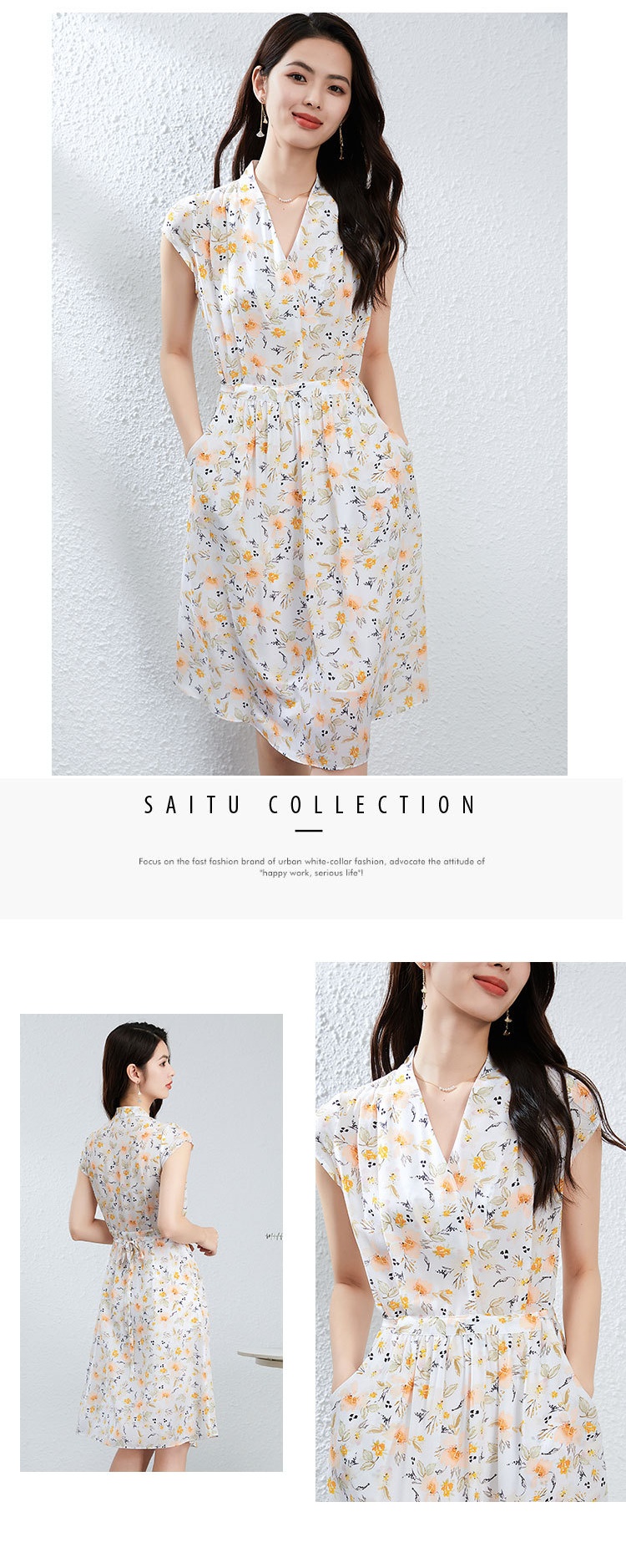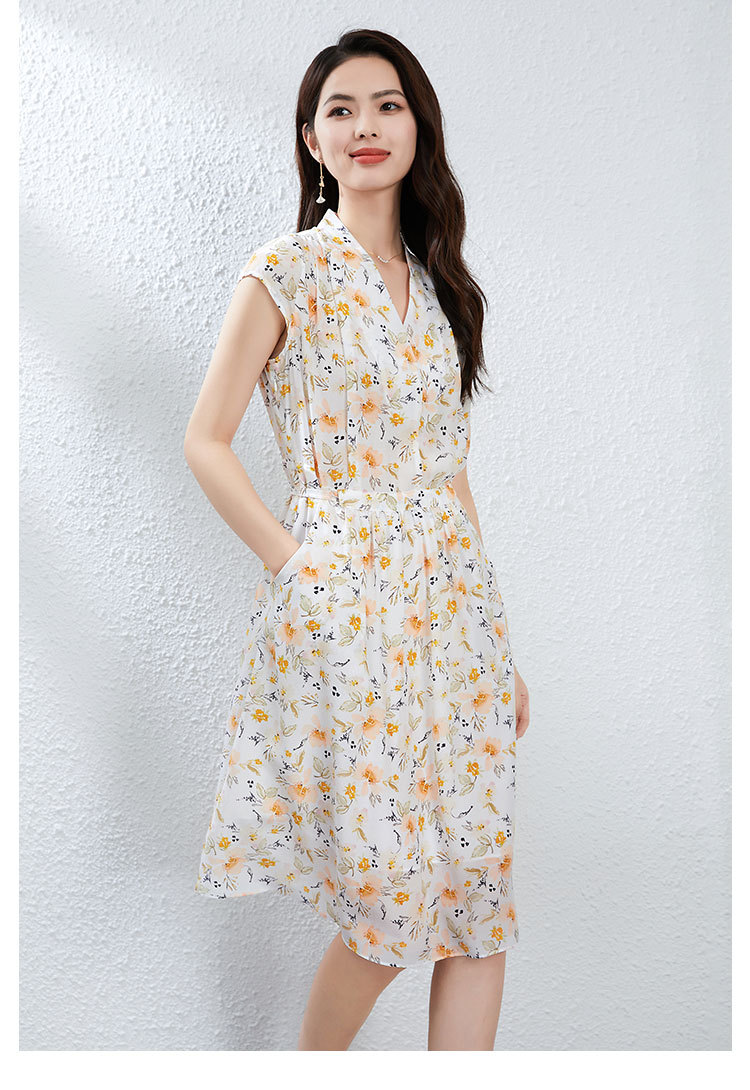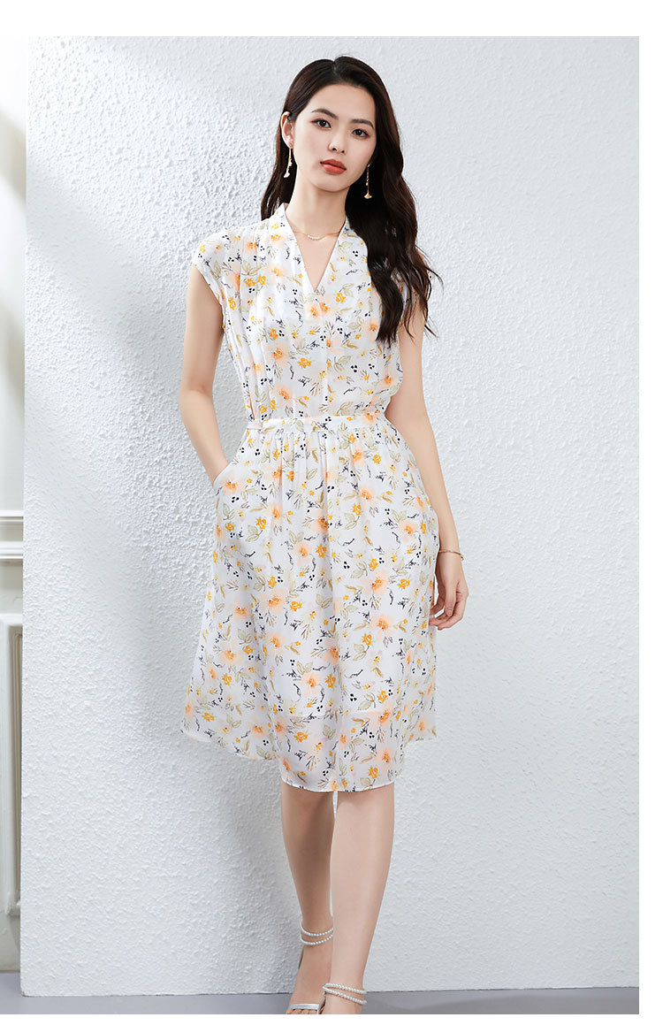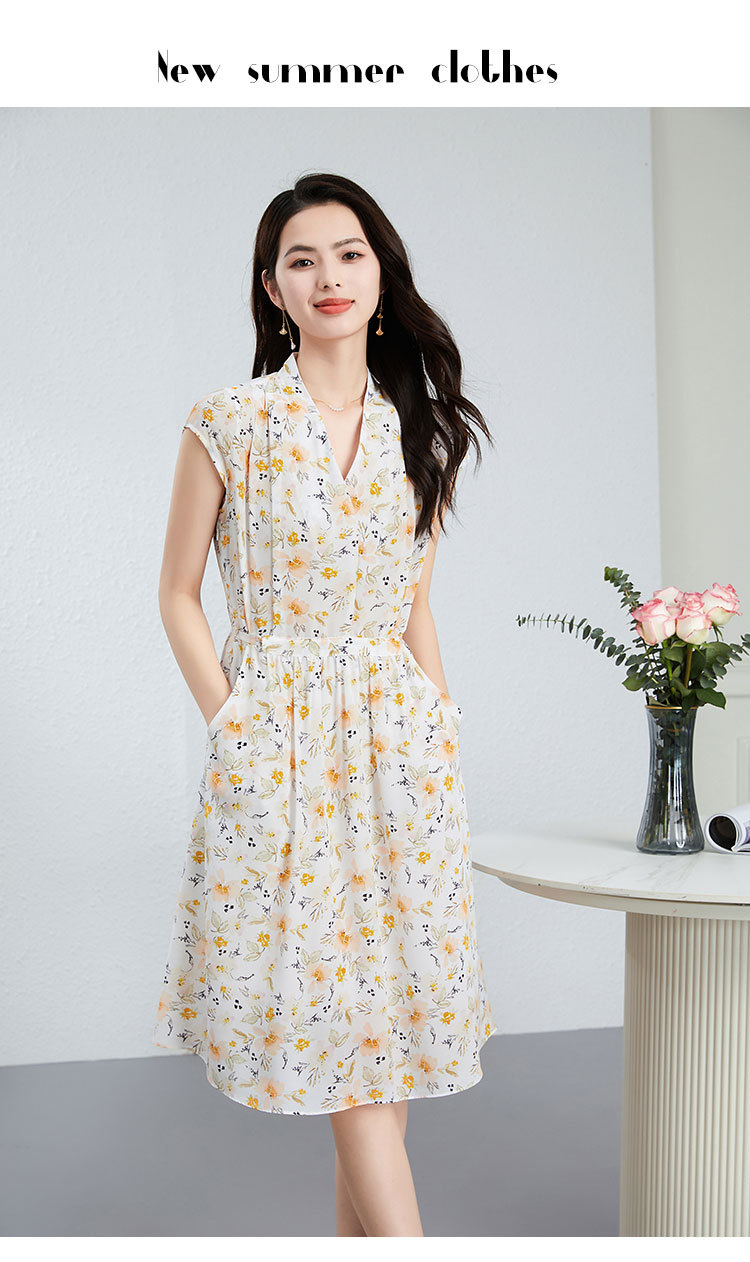 「高货kbnq」全新升级【铂金会员514/天猫699/差价185】(41142)洛诗琳法式真丝印花连衣裙2025夏季V领收腰系带连衣裙