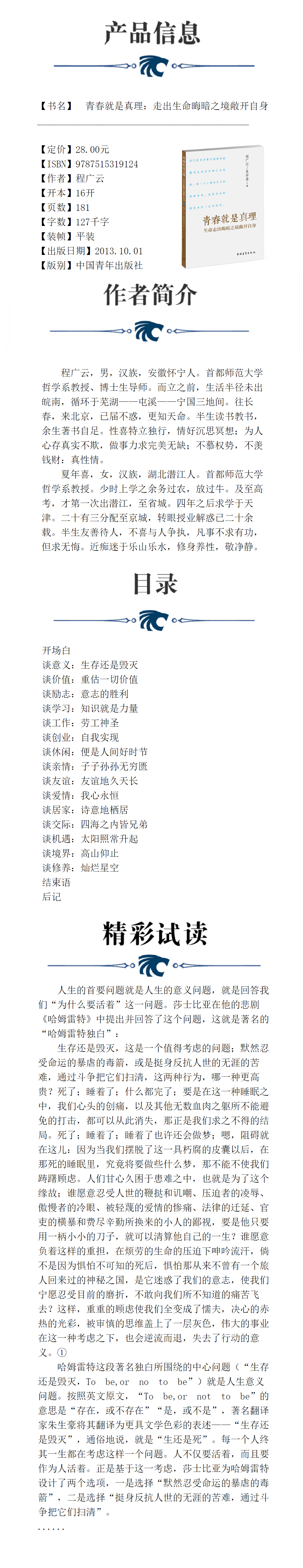 青春就是真理:走出生命晦暗之境敞开自身 程广云著 中国青年出版社