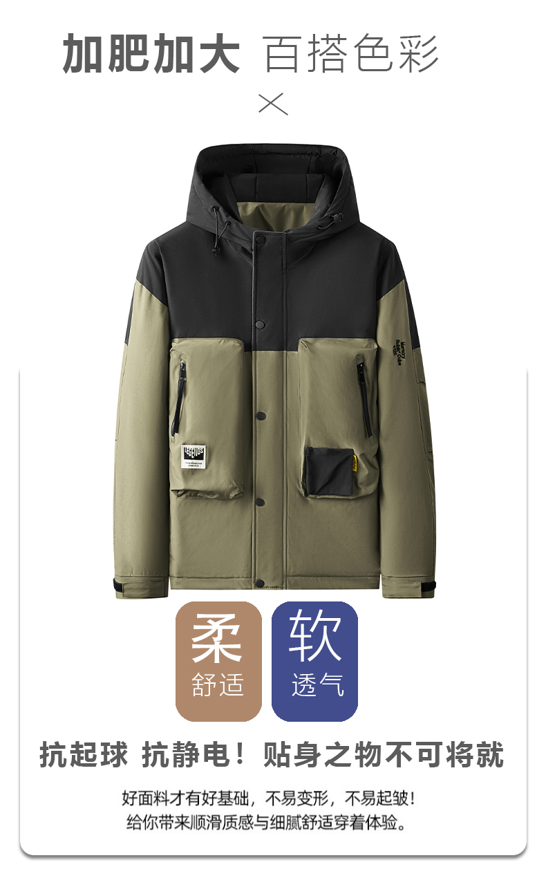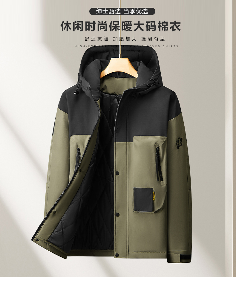 【新款DX】大依优型大码连帽棉服棉衣保暖加厚加肥加大上衣男士外套胖子