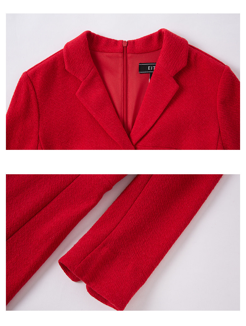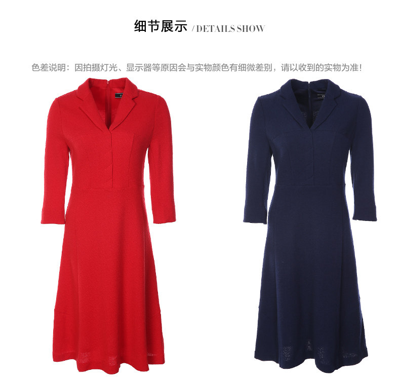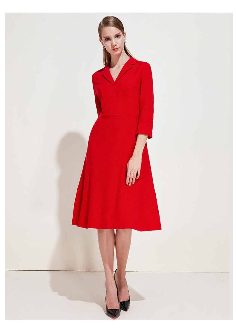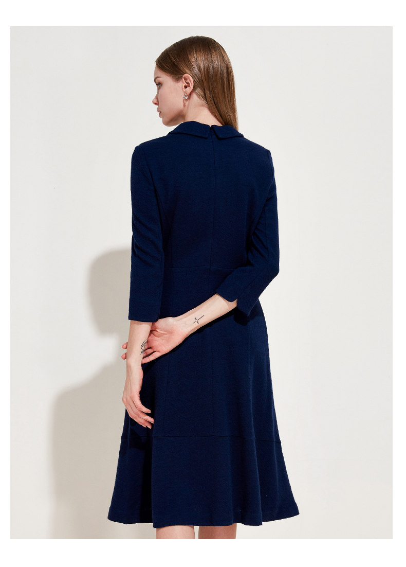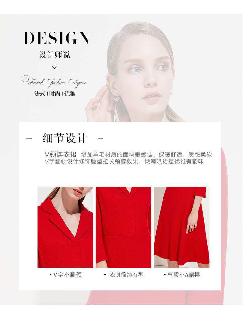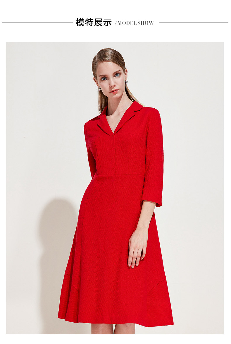 EITIE爱特爱品牌女装春季新款时尚气质V领中腰羊毛连衣裙中裙5707407