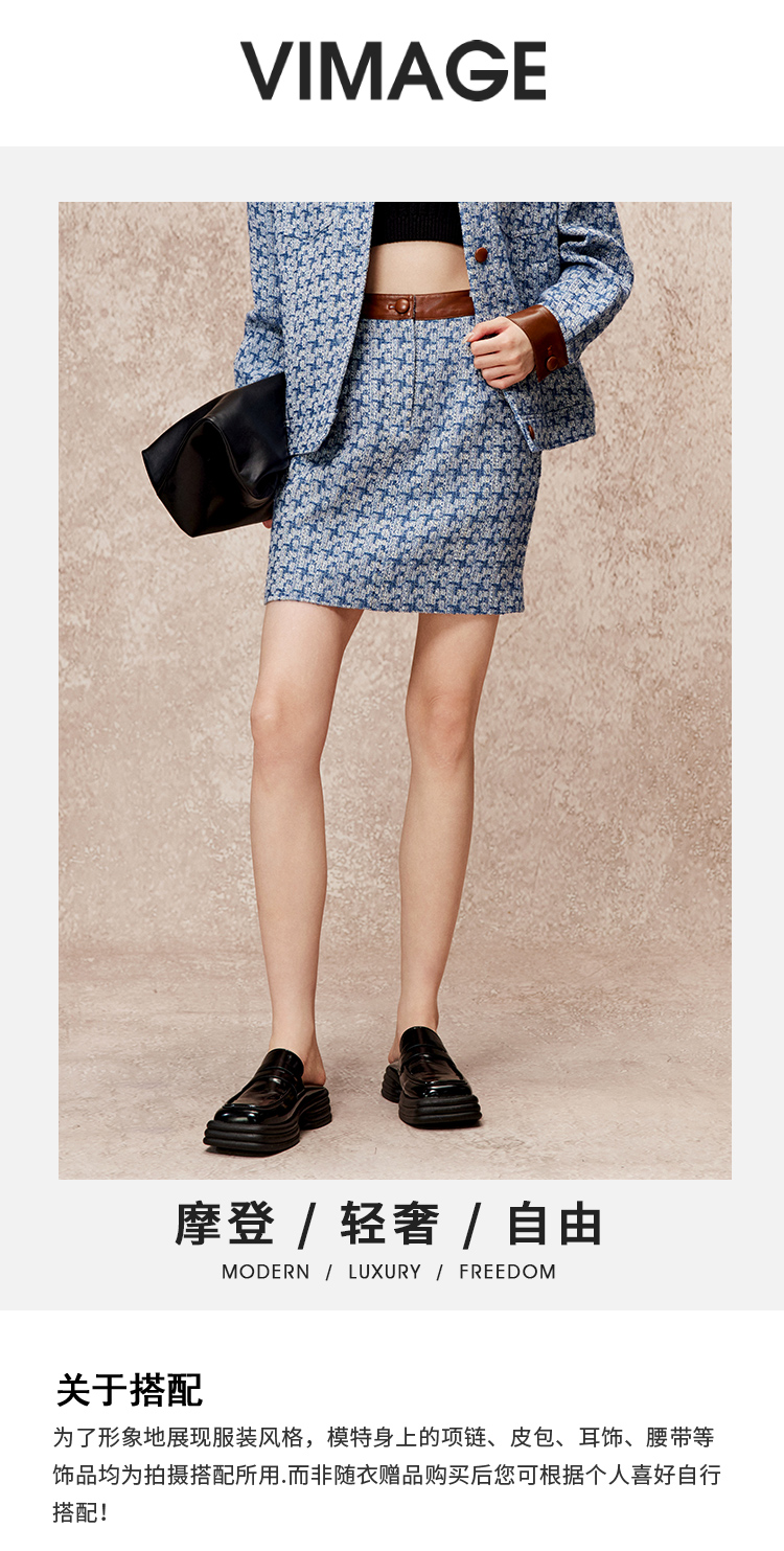 VIMAGE纬漫纪秋季新款高腰显瘦时尚复古印花短裙半身裙V2206815