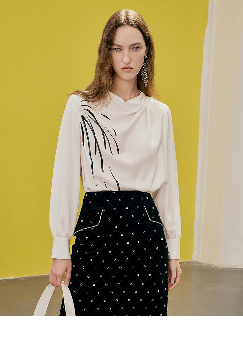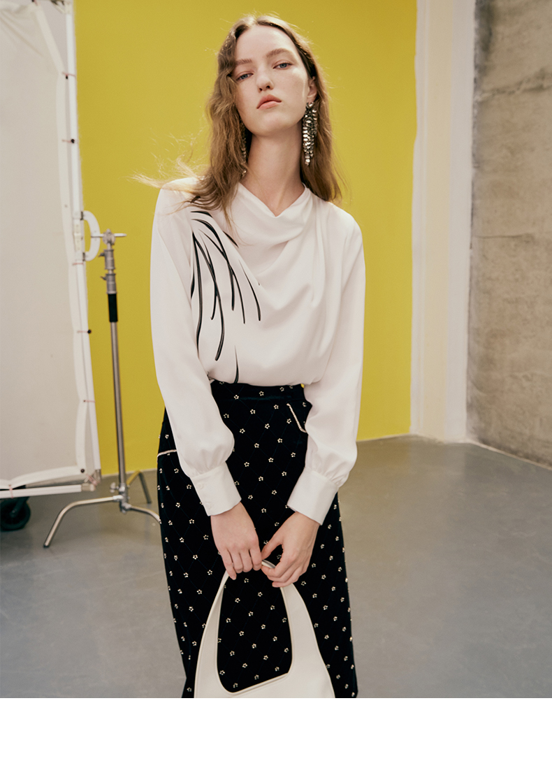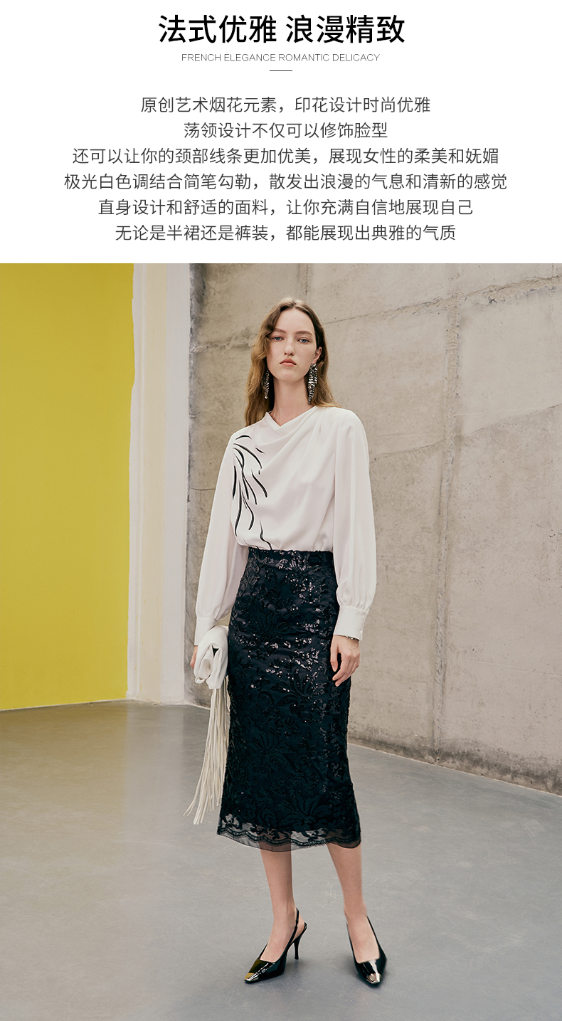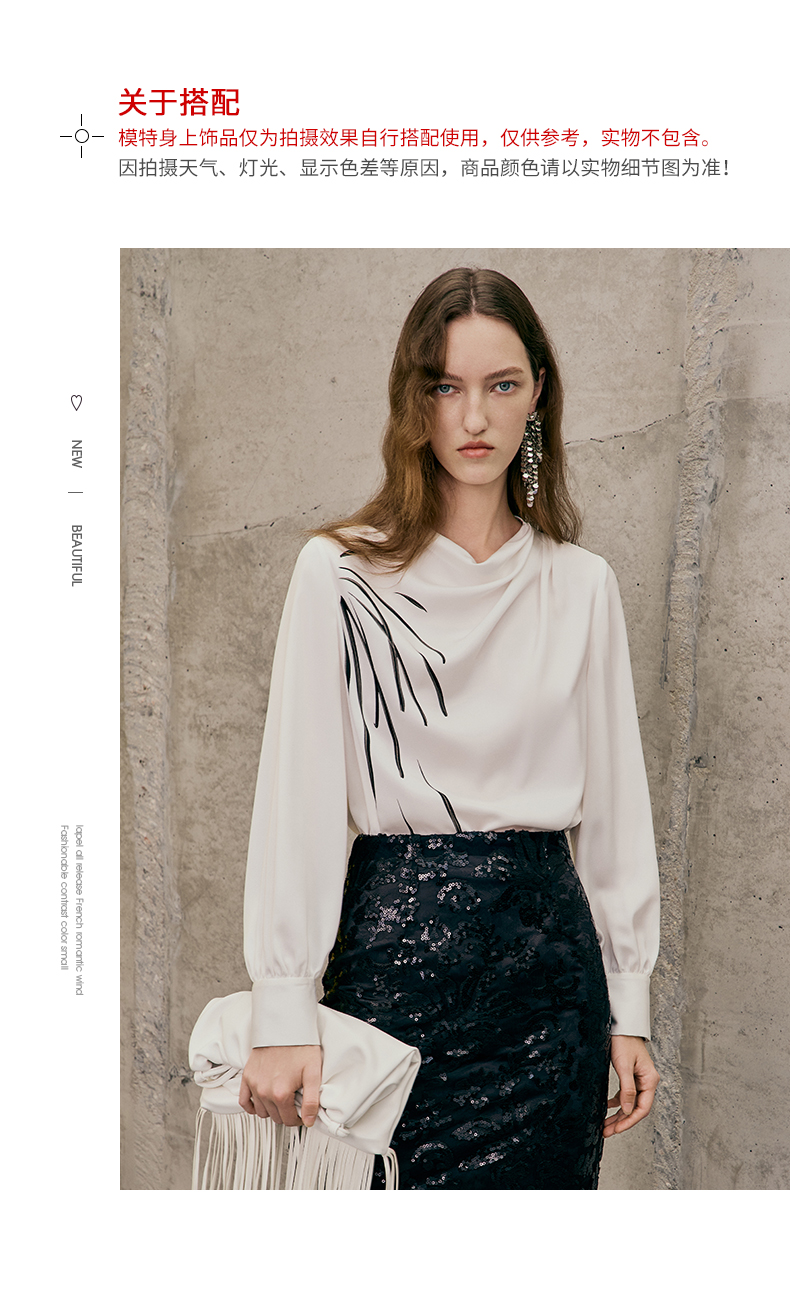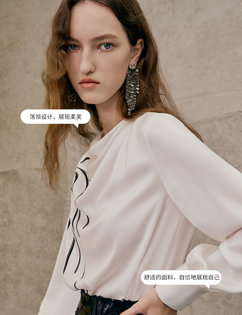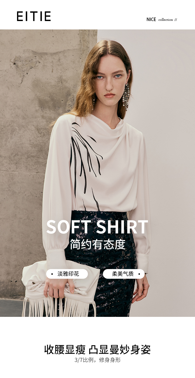 EITIE爱特爱女装早秋雪纺长袖套套系带上衣T恤雪纺衫女5713411
