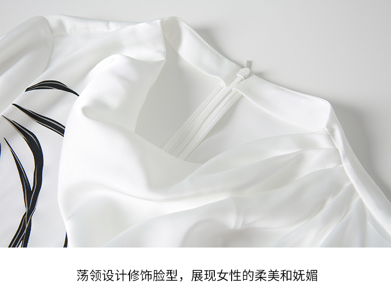 EITIE爱特爱女装夏季新品V领荷叶边短袖长款印花连衣裙薄5707491