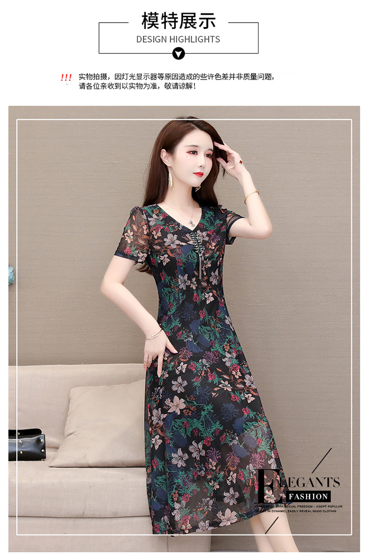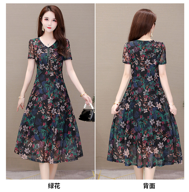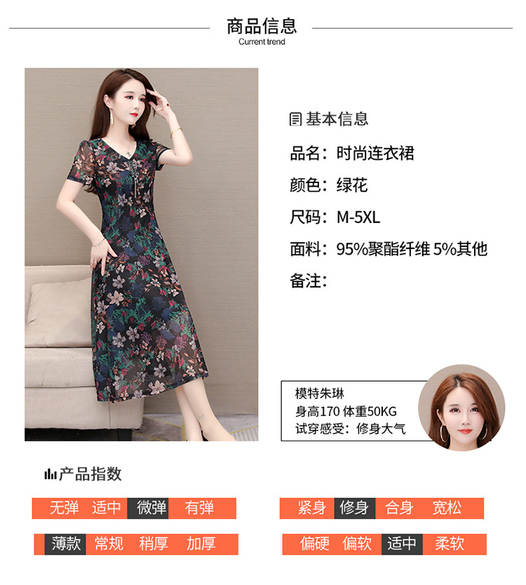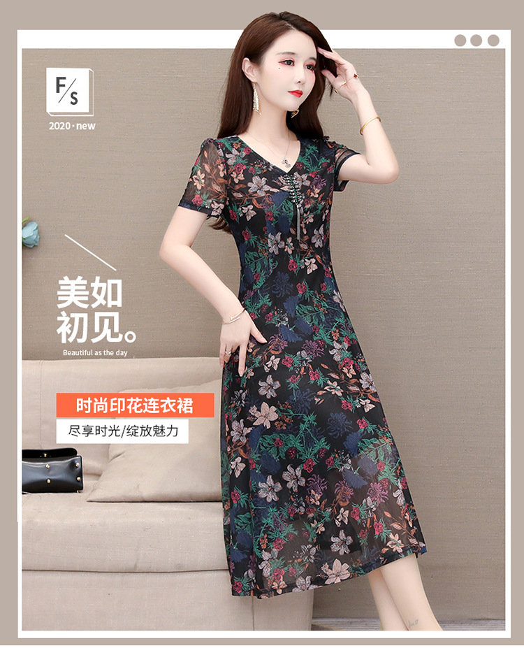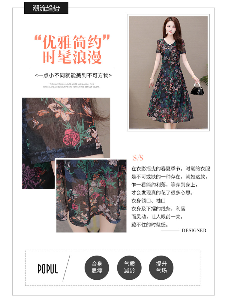QYM-2060新款洋气修身显瘦中年妈妈时尚过膝v领a字连衣裙