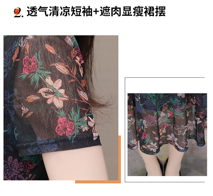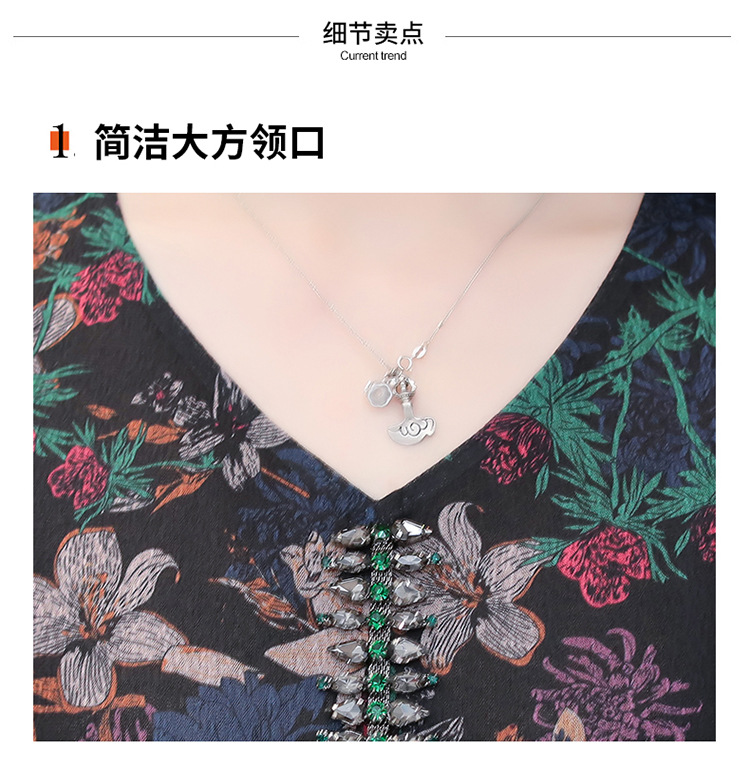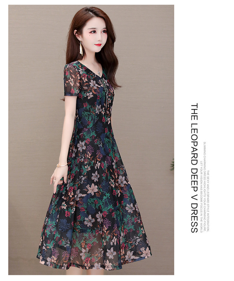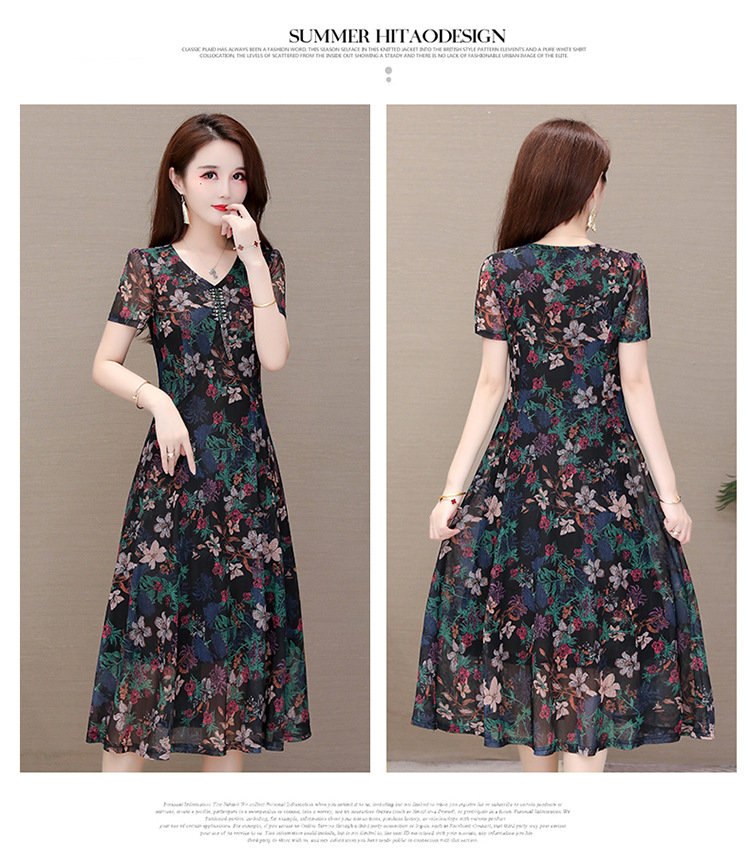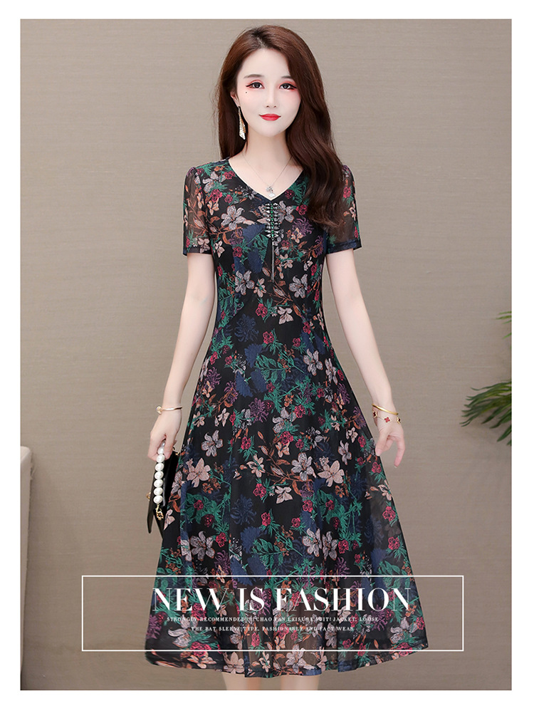 QYM-2060新款洋气修身显瘦中年妈妈时尚过膝v领a字连衣裙