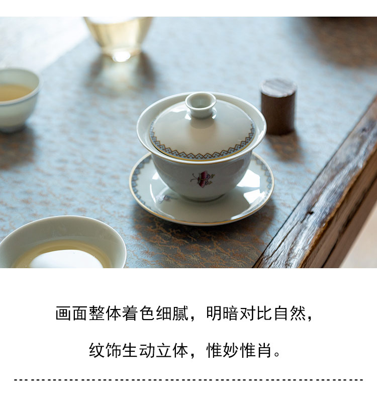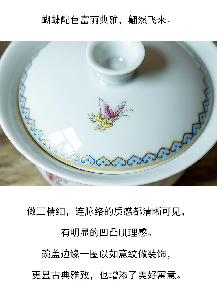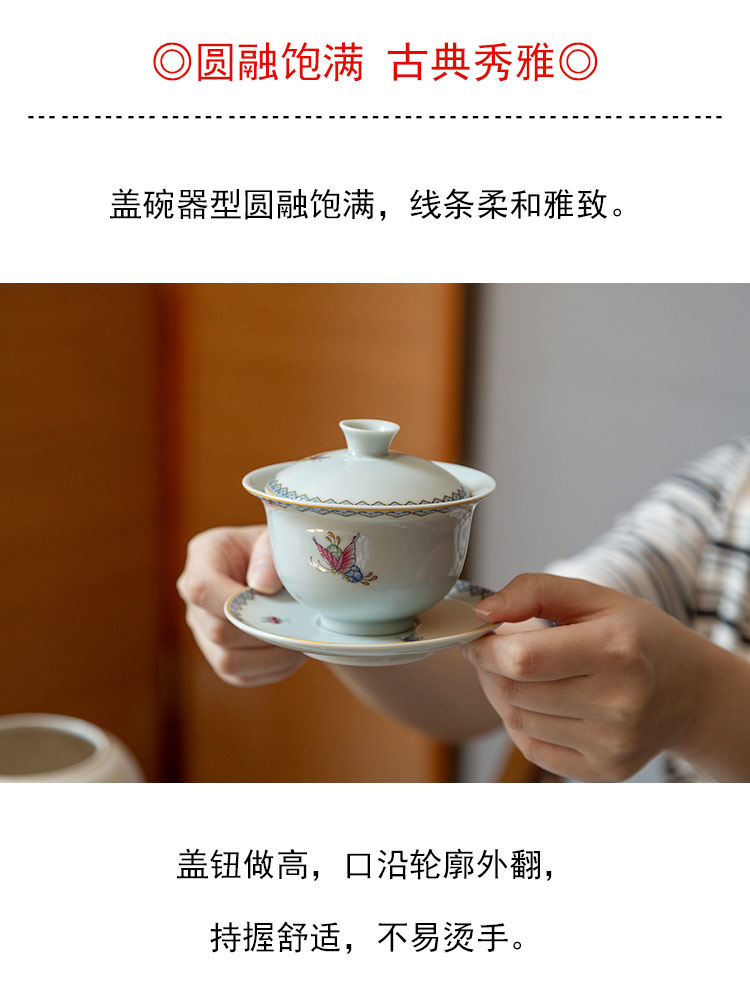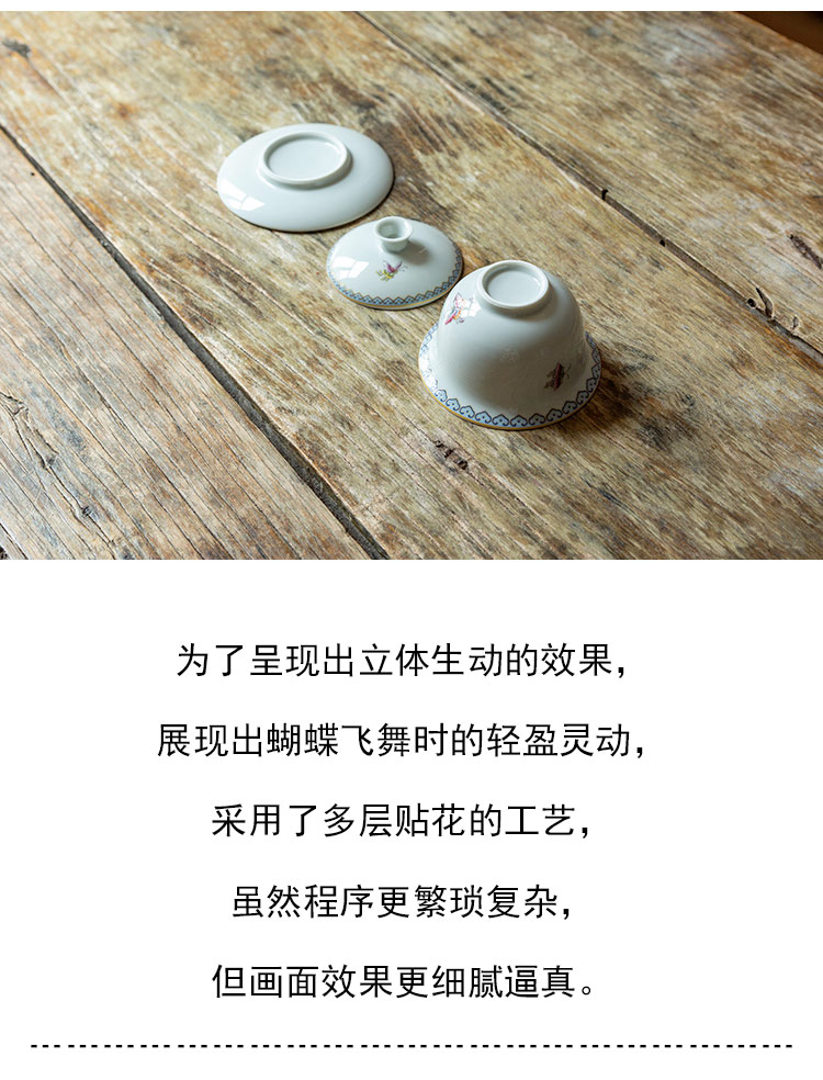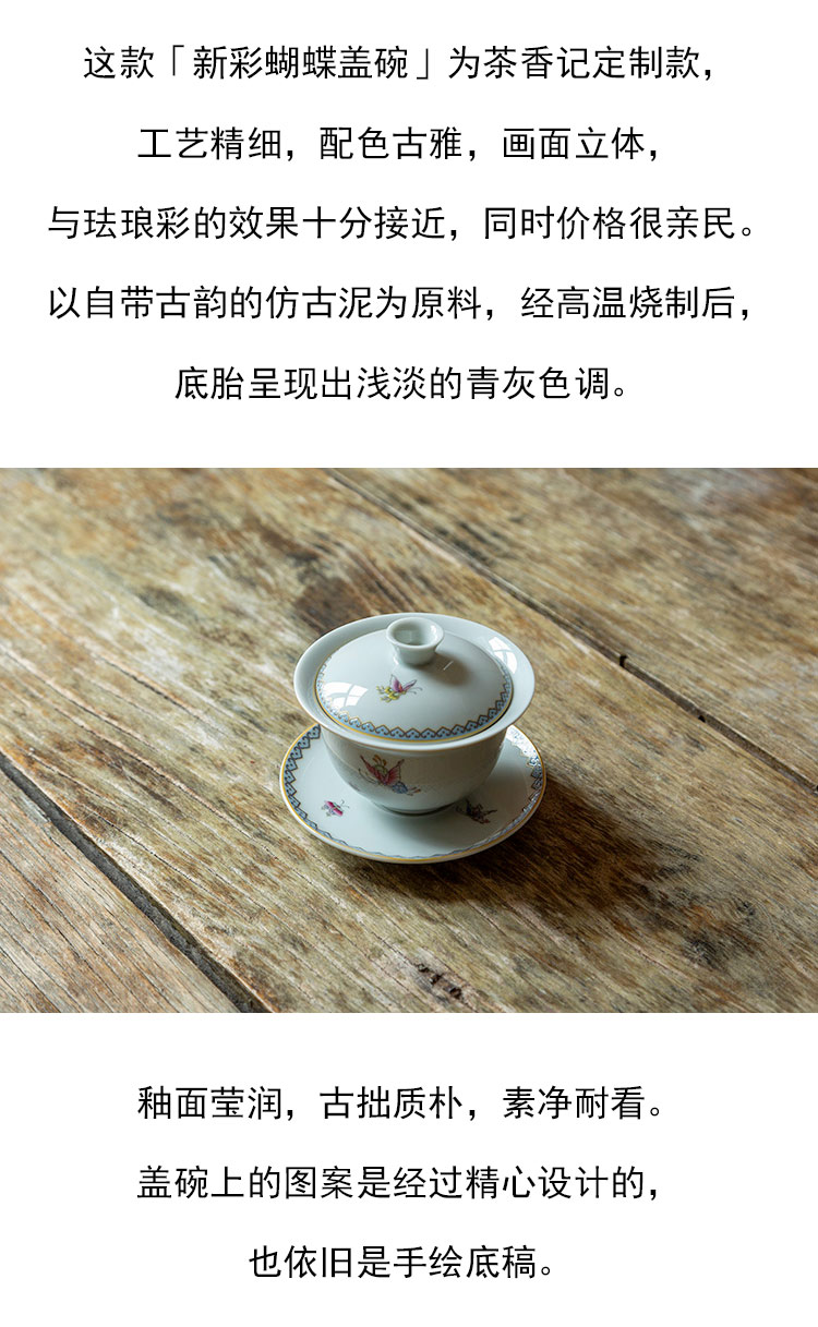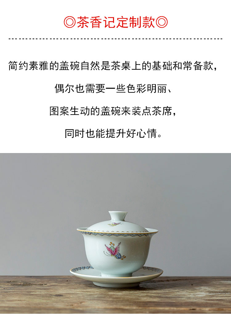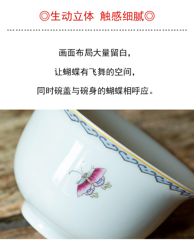 茶香记 新彩蝴蝶盖碗130ml仿珐琅彩定制款秀雅灵动古典端庄陶瓷