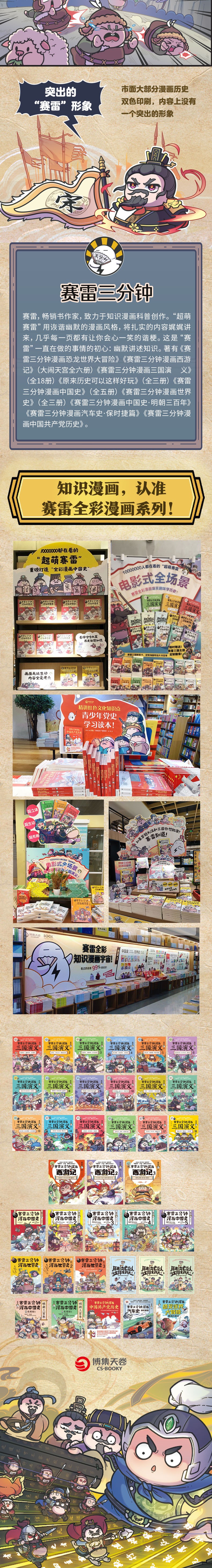 赛雷,畅销书作家,致力于知识漫画科普创作。“超萌赛雷”用诙谐幽默的漫画风格,将扎实的内容娓娓讲来,几乎每一页都有让你会心一笑的谐梗。这是“赛雷”一直在做的事情的初心:幽默讲述知识。著有《赛雷三分钟漫画恐龙世界大冒险》《赛雷三分钟漫画西游记》(大闹天宫全六册)《赛雷三分钟漫画三国演义》(全18册)《原来历史可以这样好玩》(全三册)《赛雷三分钟漫画中国史》(全五册)《赛雷三分钟漫画世界史》(全三册)《赛雷三分钟漫画中国史·明朝三百年》《赛雷三分钟漫画汽车史·保时捷篇》《赛雷三分钟漫画中国共产党历史》。